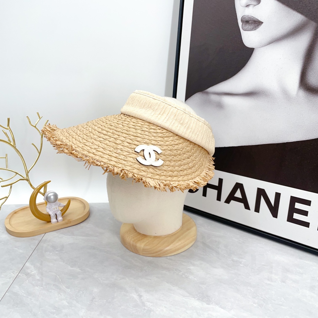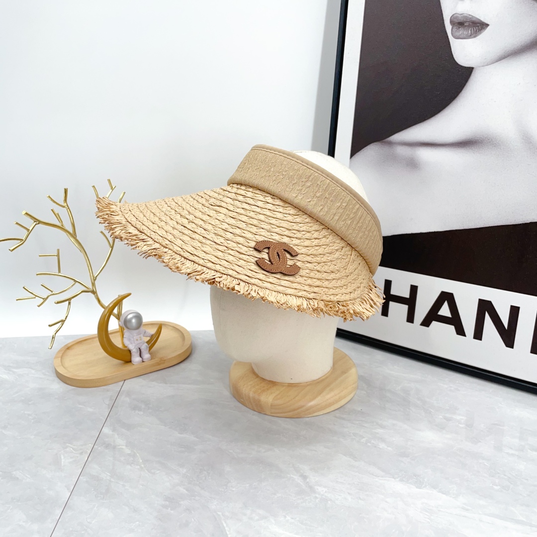 【New】CHANEL Open-Top Straw Visor Hat Khaki