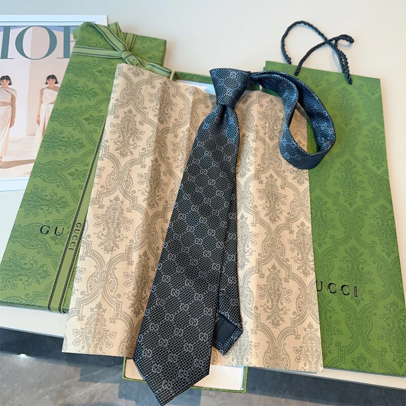 【New】Gucci Men's GG Sign Printing Silk Necktie