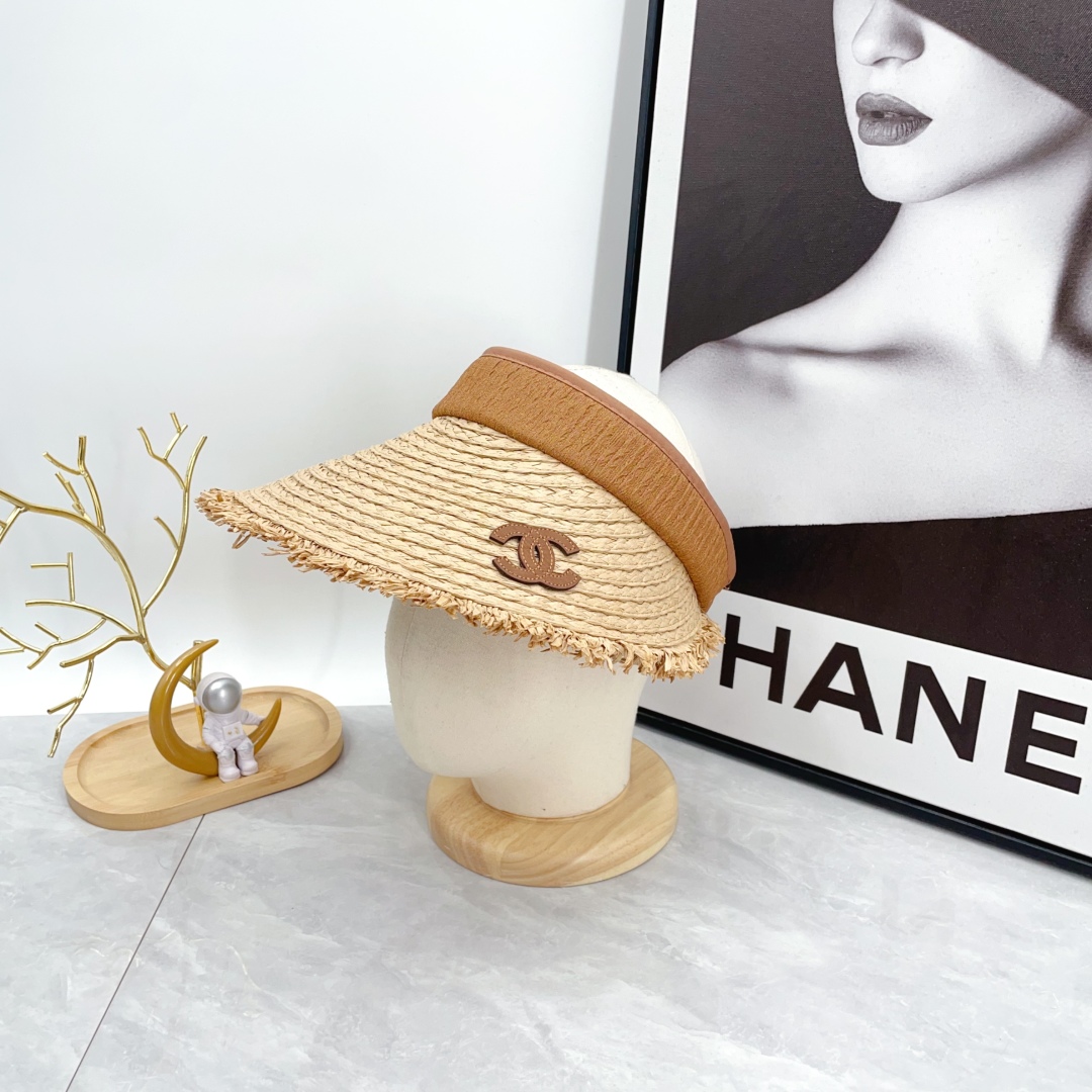 【New】CHANEL Open-Top Straw Visor Hat Brown
