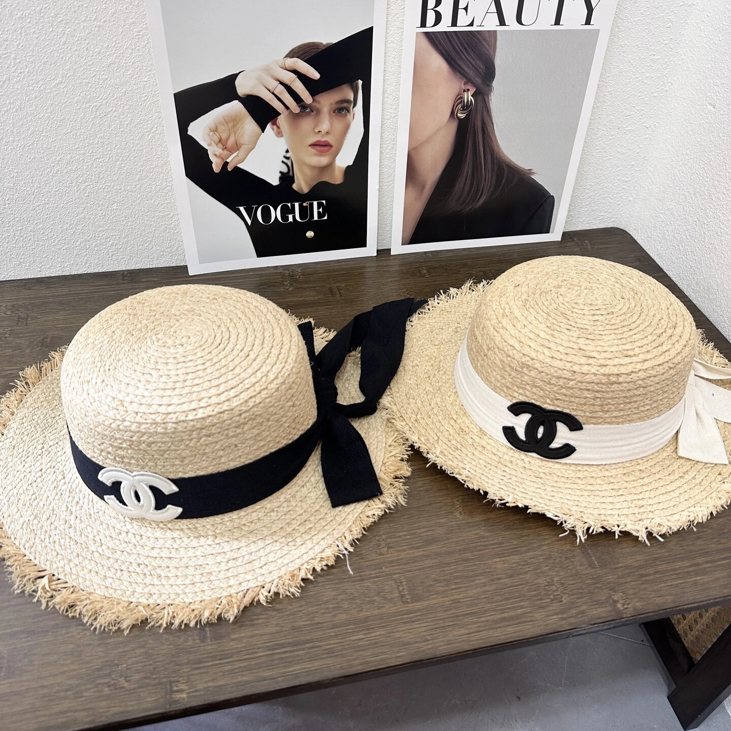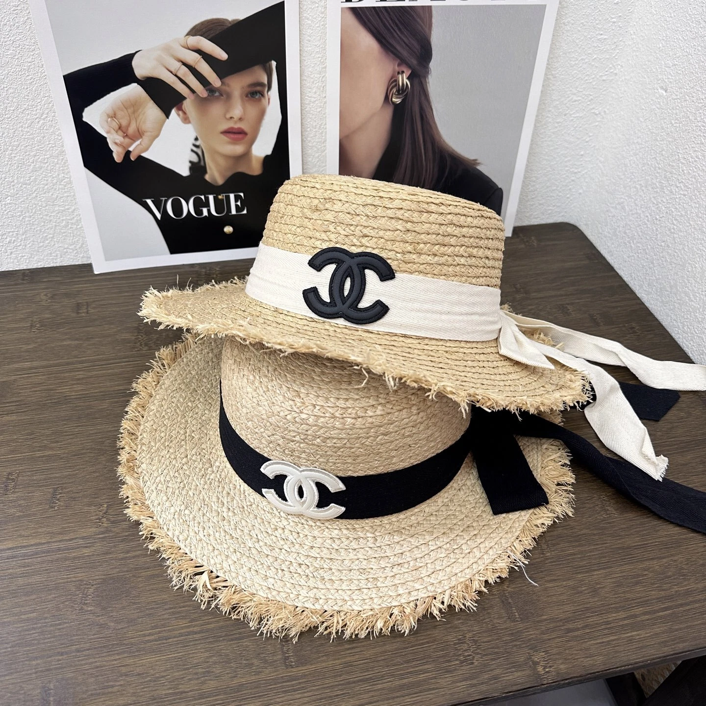【New】CHANEL Open-Top Straw Visor Hat Black