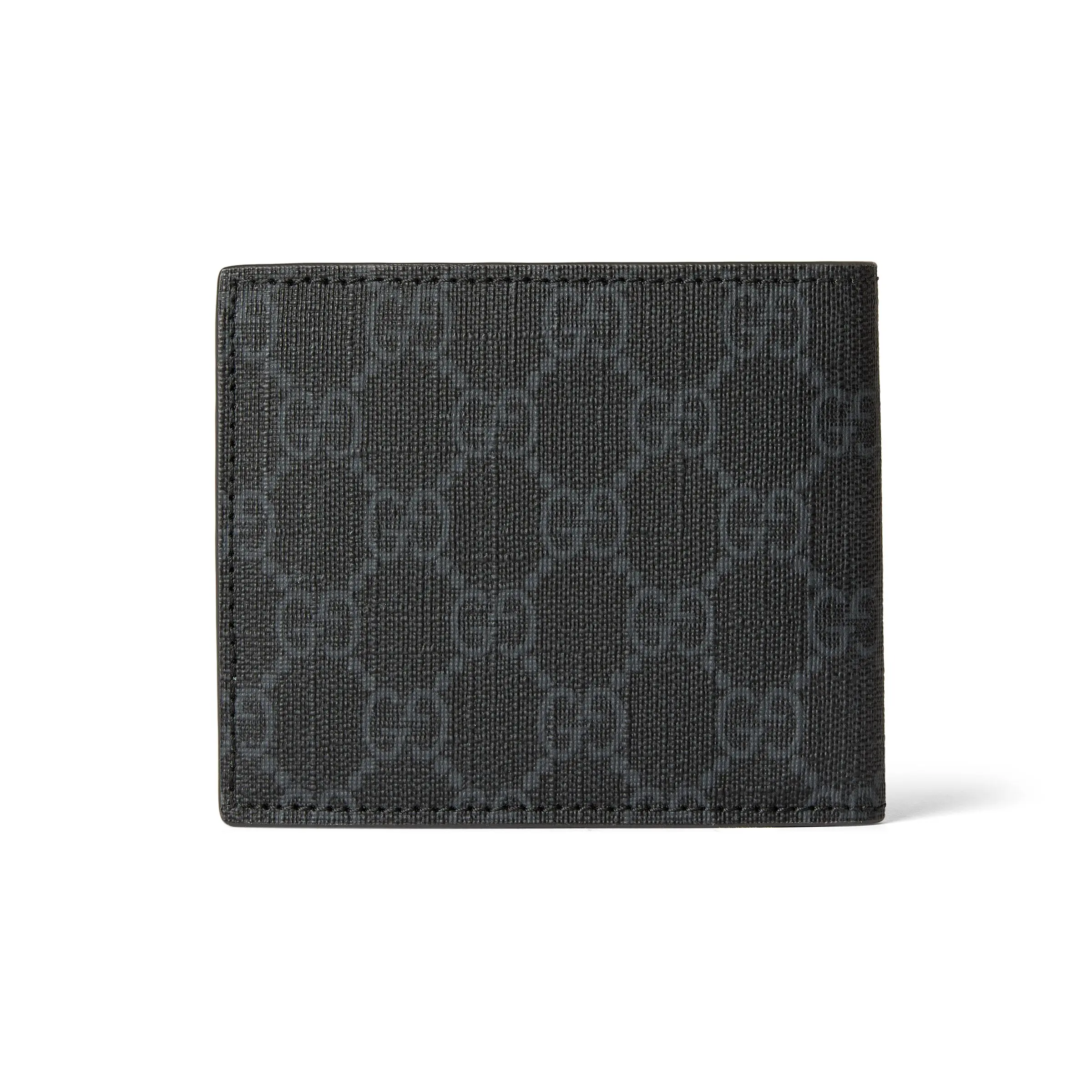 The new collection features slim and compact small leather goods in a variety of bright colors, with a contrasting two-tone design that highlights the GG logo on the body. Crafted in black GG Supreme canvas, this wallet has eight card slots and a gray smooth leather interior.