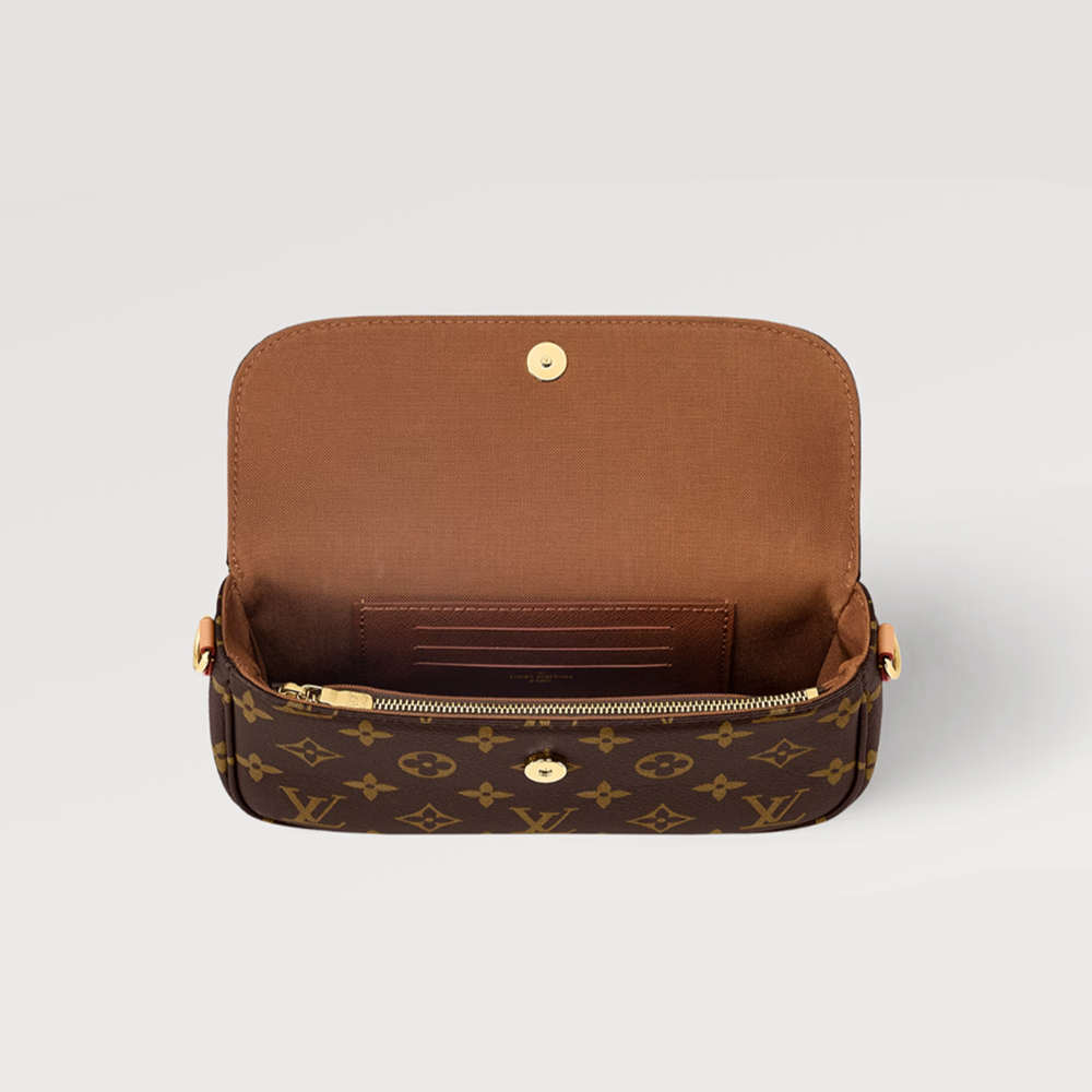 The Wallet On Chain Ivy handbag is made of Monogram canvas and is inspired by the Sac Recoleta handbags of the 2000s. The card slot and zippered inner pocket can hold daily necessities, and the chain and adjustable leather shoulder strap are both detachable, allowing for long or short shoulder and crossbody options.