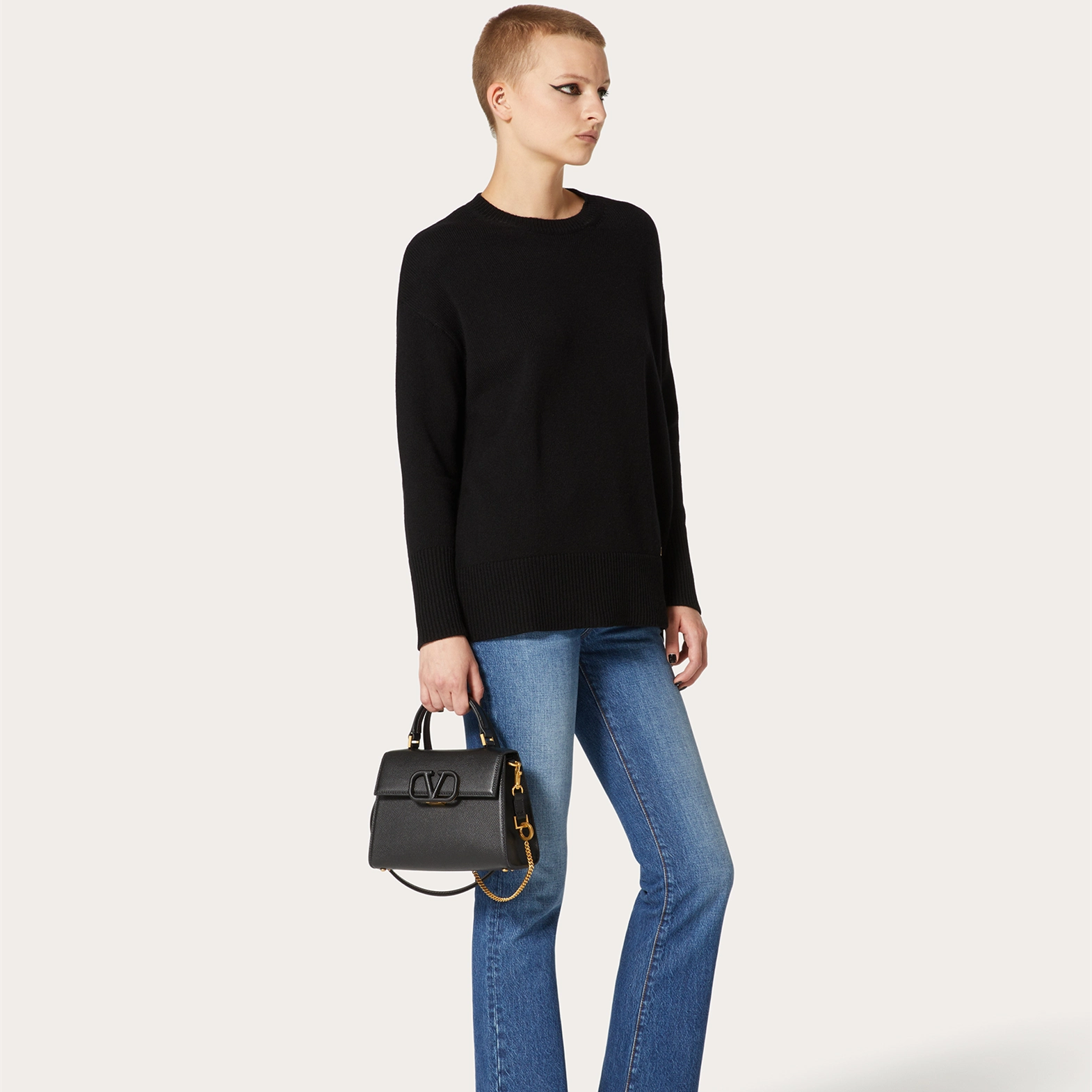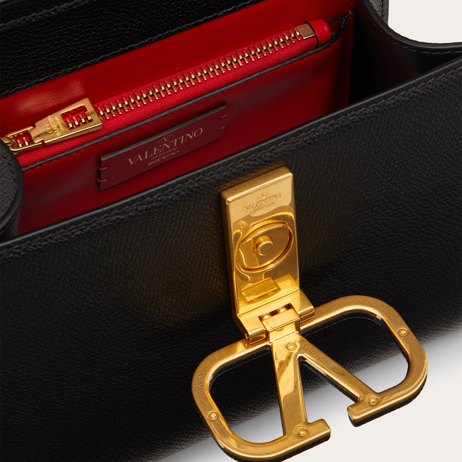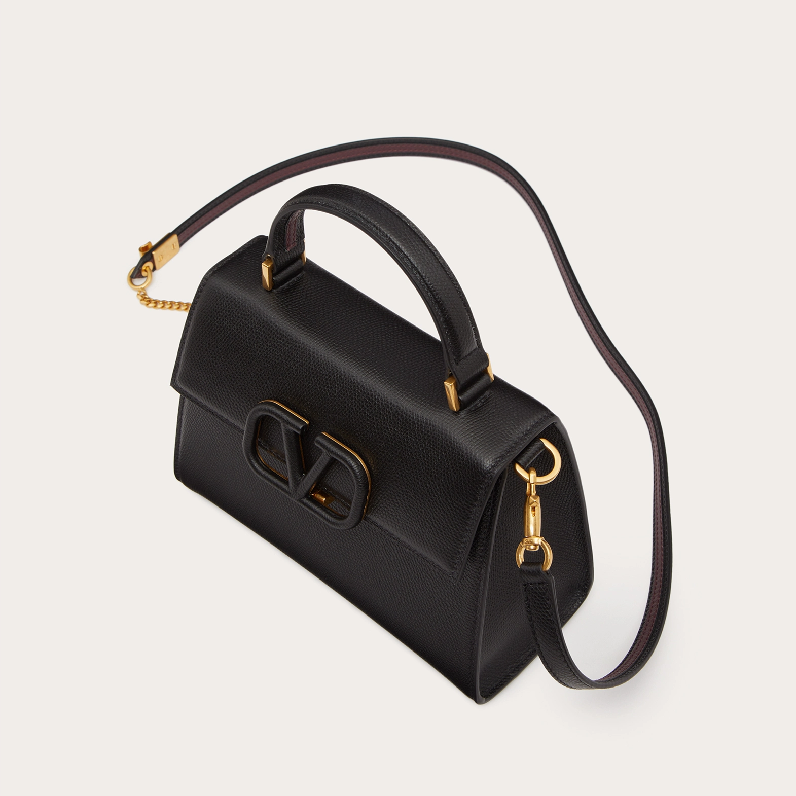 VALENTINO GARAVANI VSLING Small Grained Calfskin Handbag, VLOGO SIGNATURE Closure, with an extendable shoulder strap, can be carried crossbody, on the shoulder or by hand