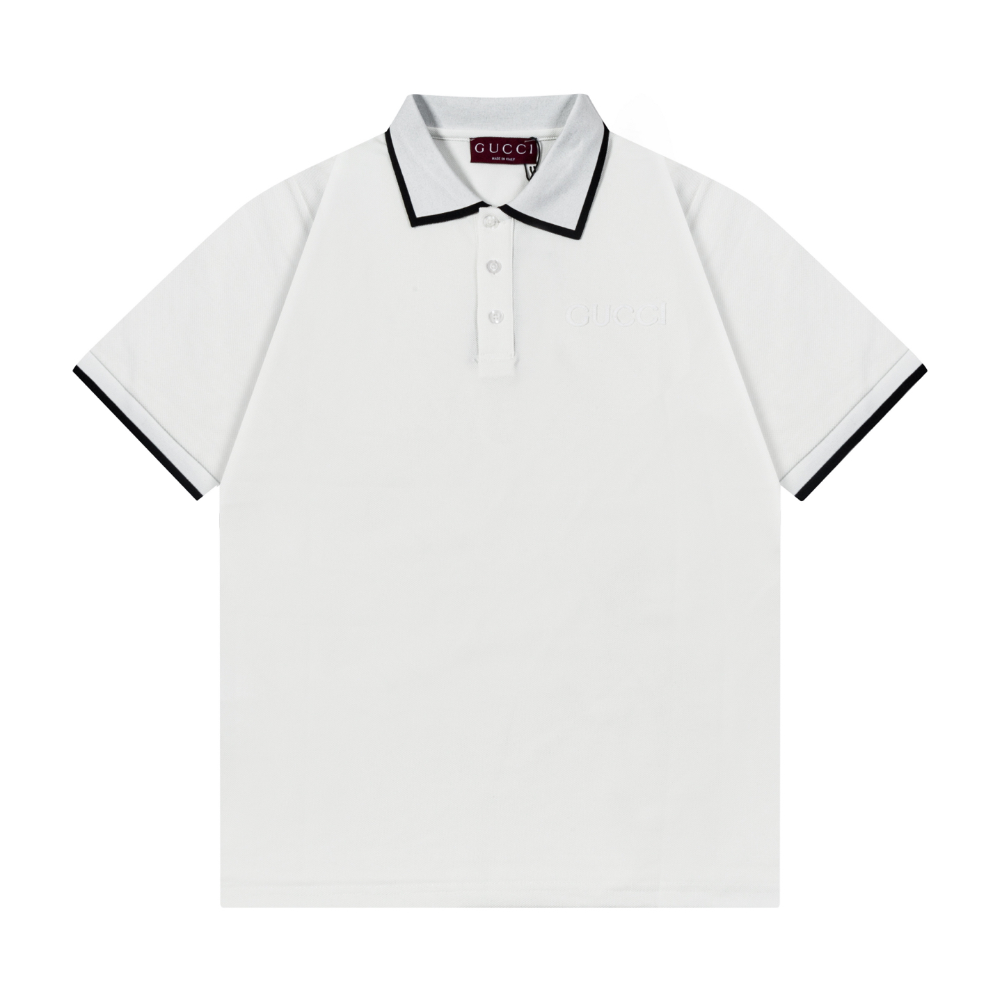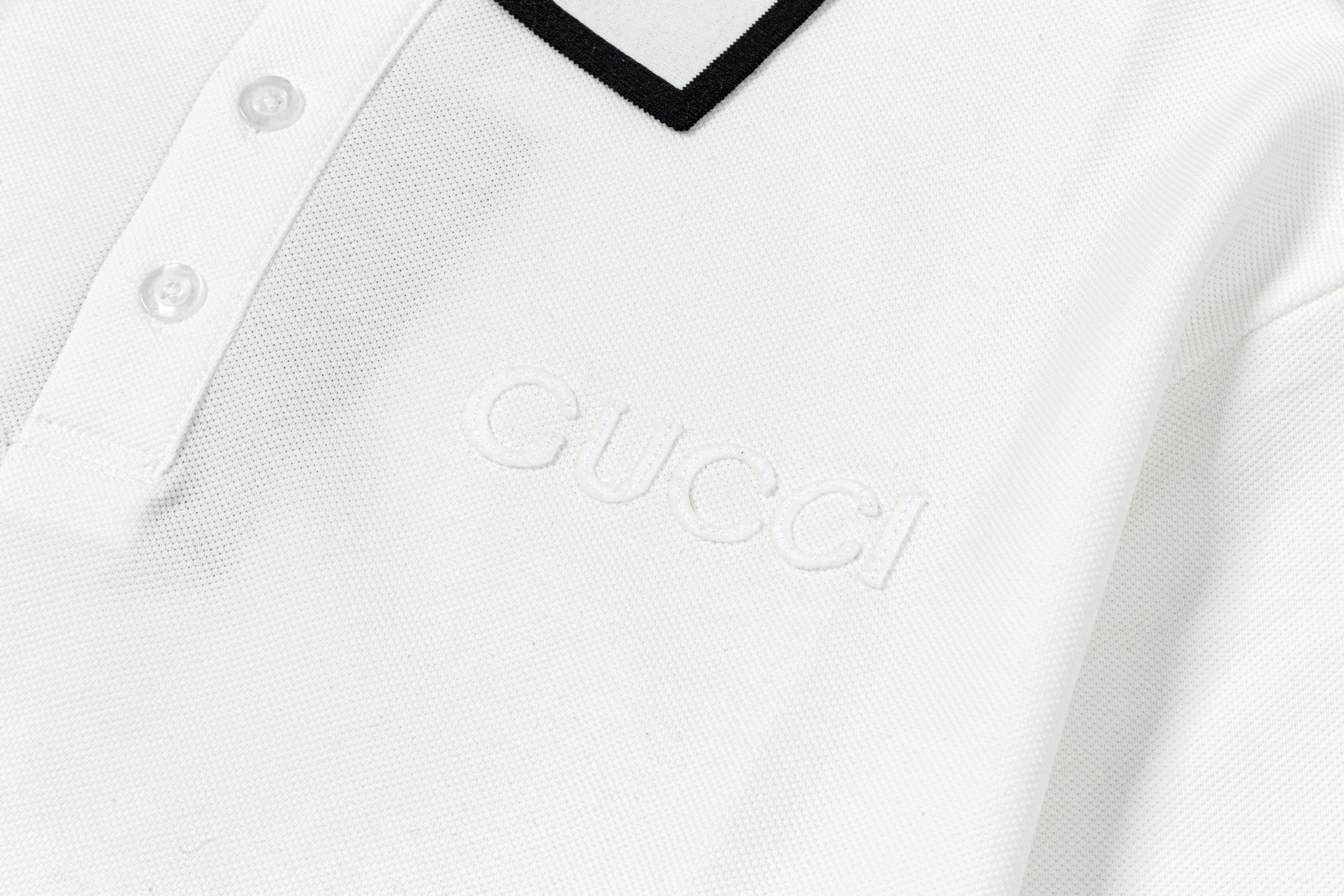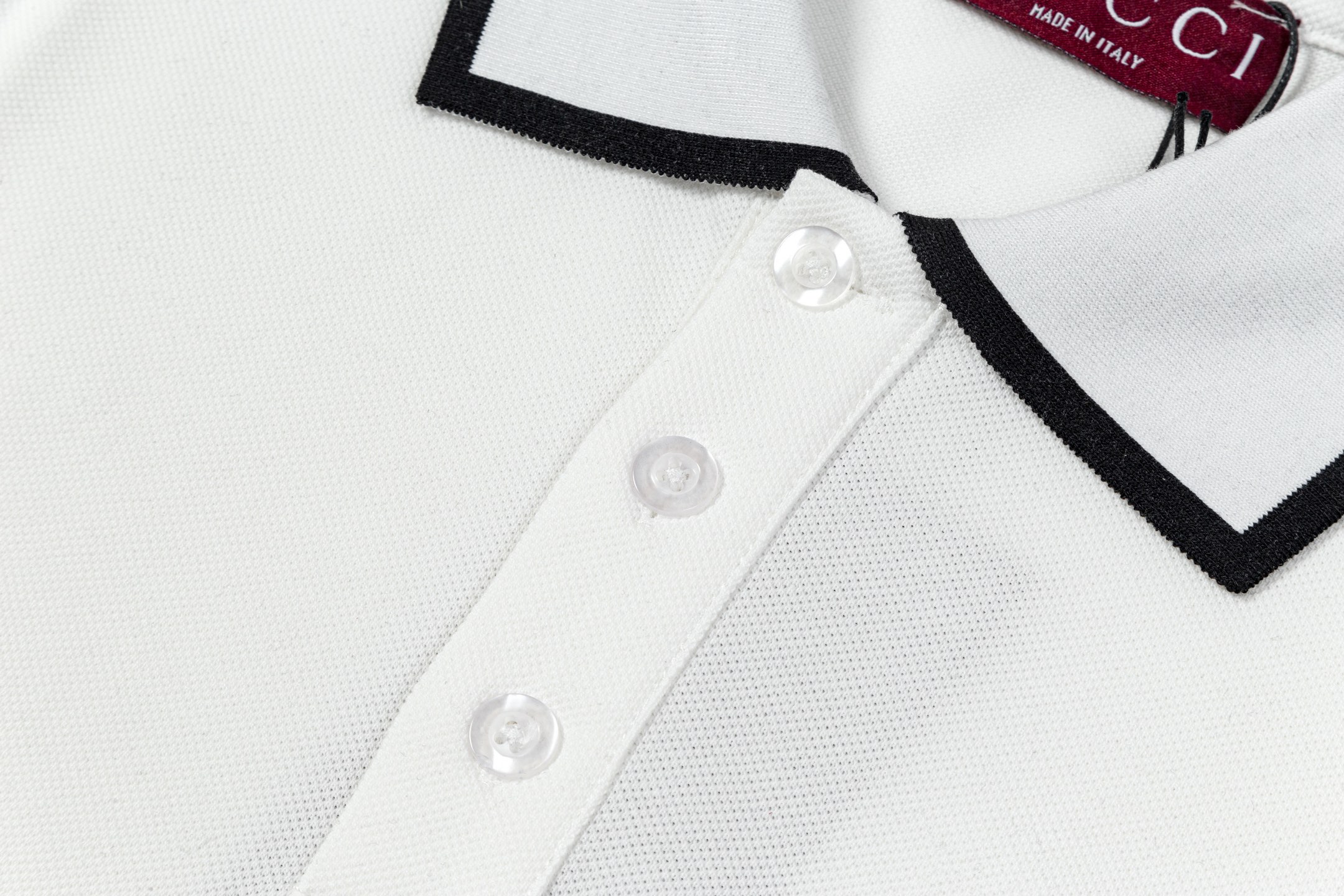 【Product Overview】 This 2025 new casual polo shirt from Gucci features the iconic Double G logo embroidery on the chest and a stylish black-and-white color-blocked collar. Designed for both men and women, this shirt blends comfort and luxury perfectly.