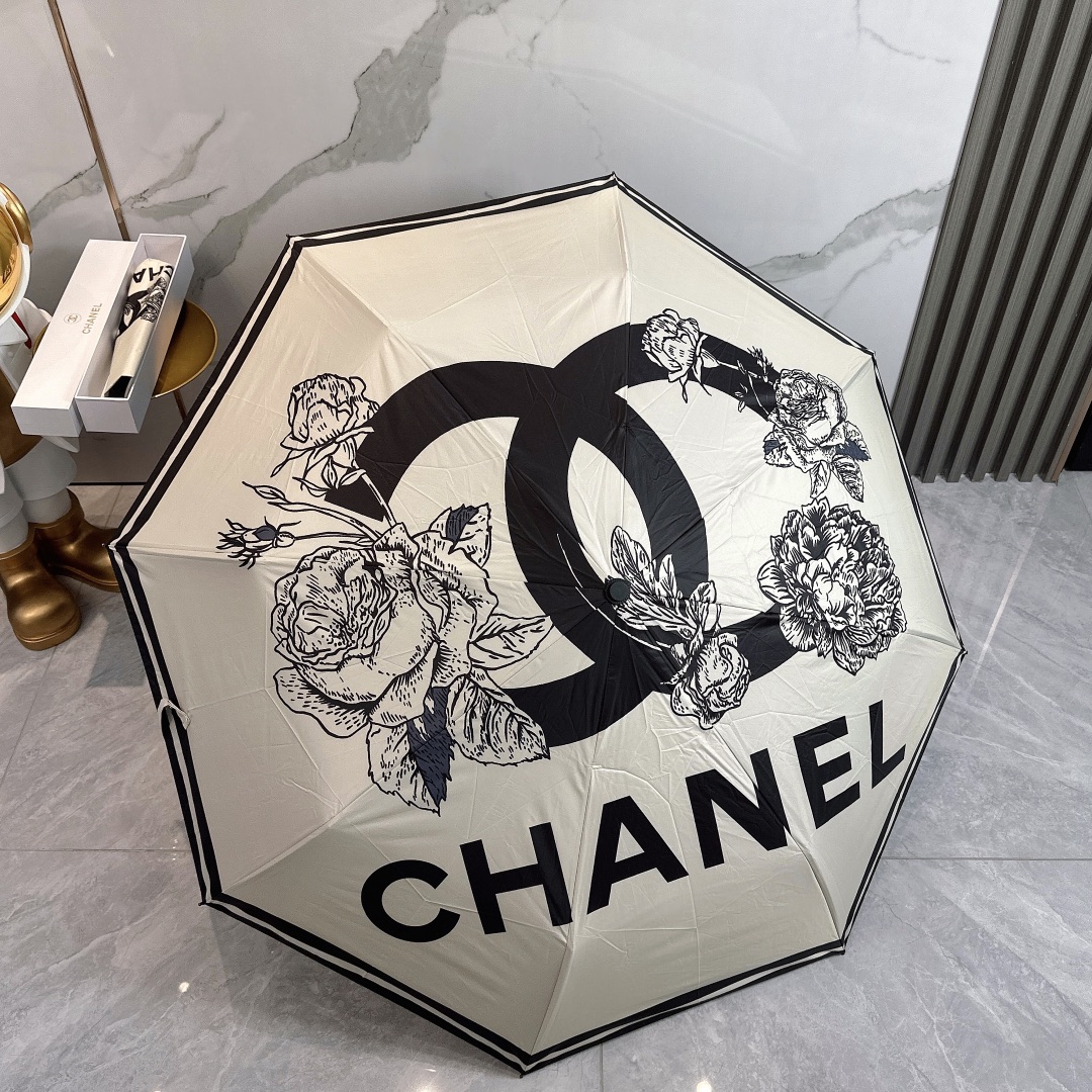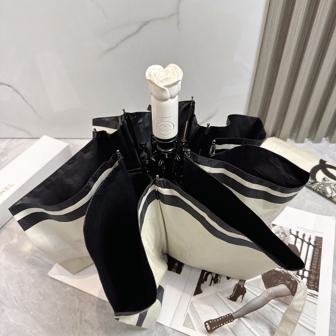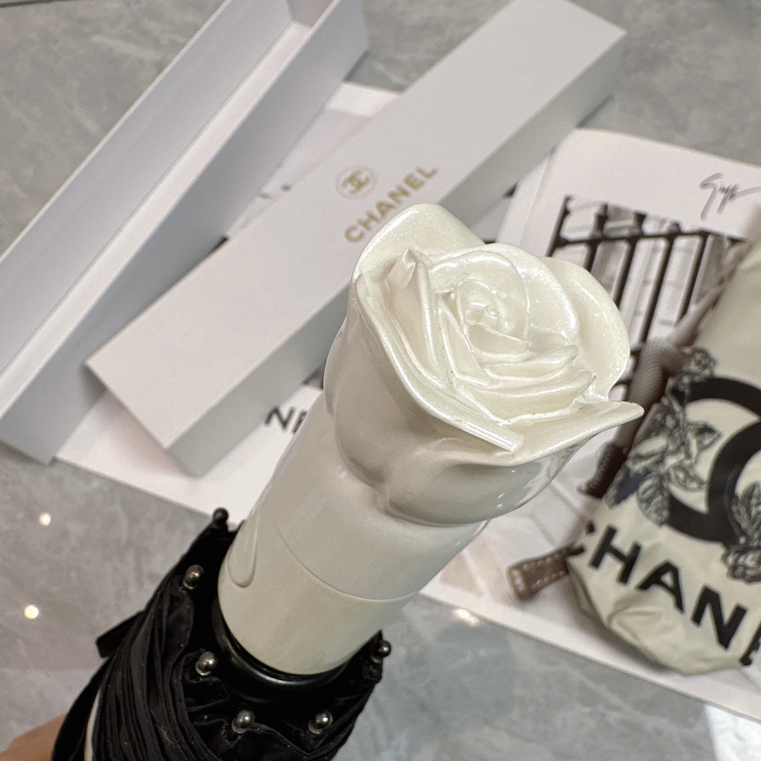 【Elegant & Feminine】 This Chanel Summer 2024 Umbrella features a stunning rose-shaped handle, blending practicality with feminine elegance. A luxurious folding design that suits both sun and rain, perfect for daily use or gifting.