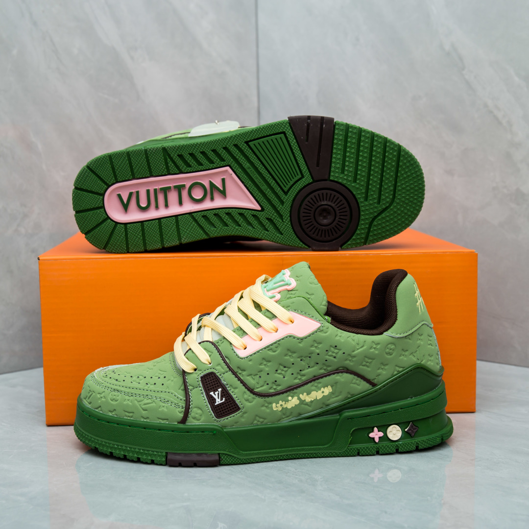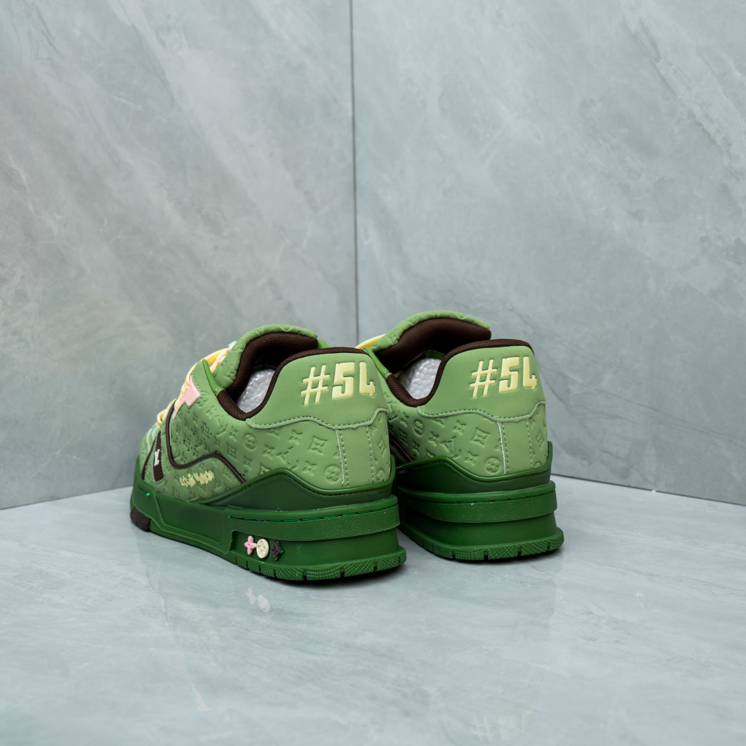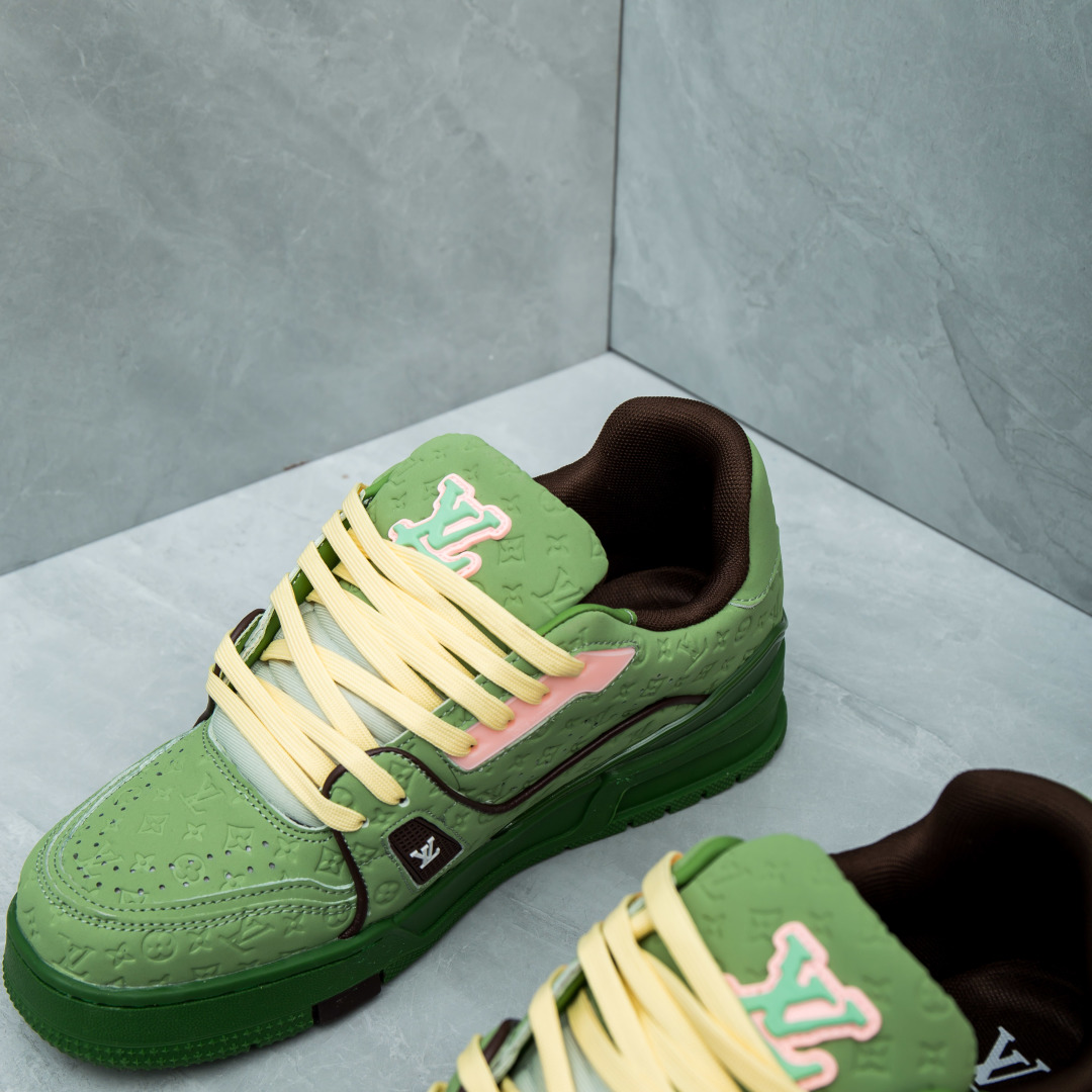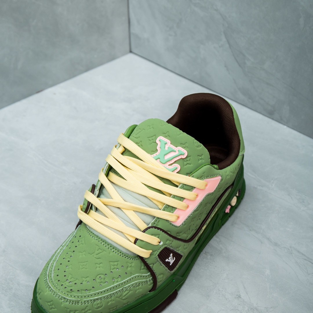 【Exclusive Tyler x LV Collaboration】 The Tyler x Louis Vuitton Trainer Sneaker arrives in a fresh Avocado Green, blending luxury craftsmanship with streetwear culture. Featuring imported full-grain calf leather, a TPR-gloss outsole, and an ultra-soft cushioned insole, this sneaker offers a premium feel with 2024 runway-inspired design.