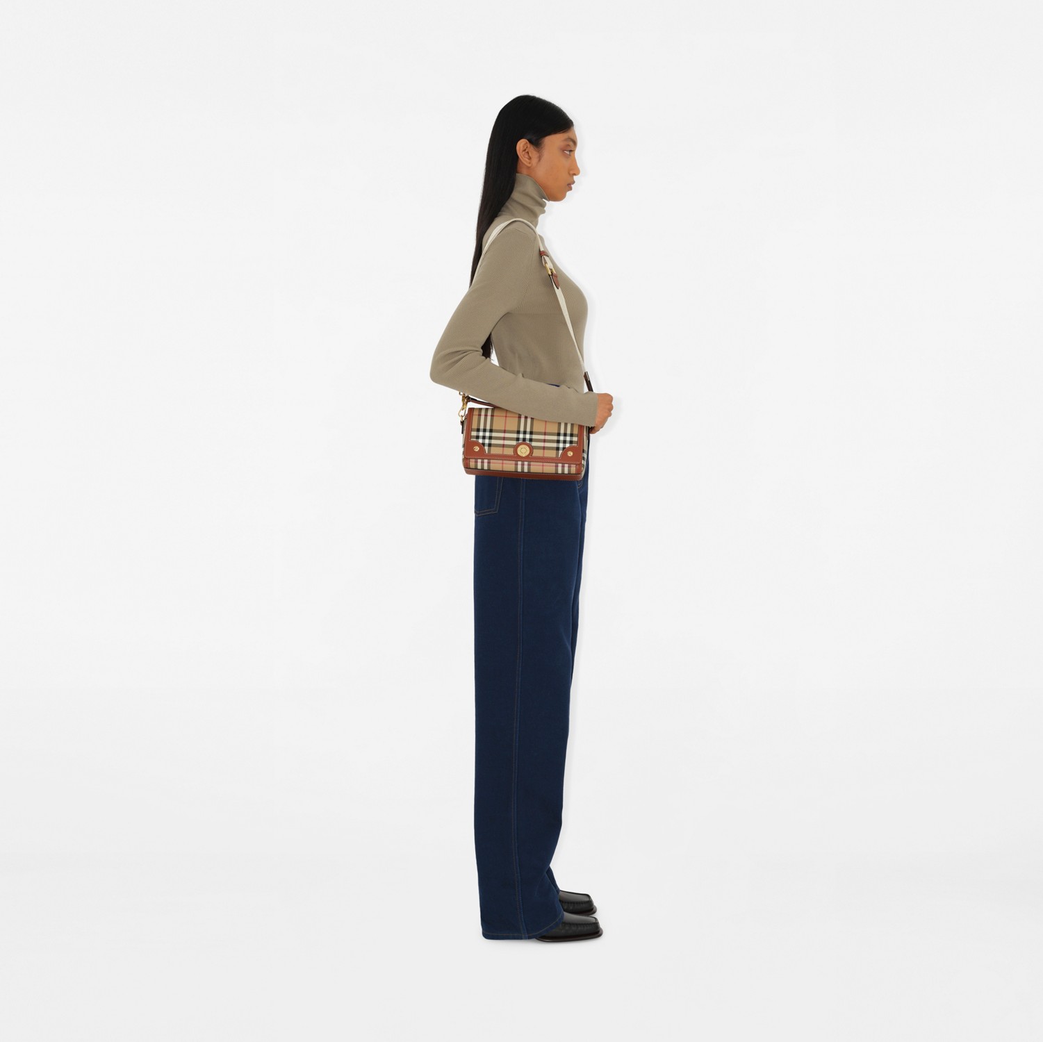 Archive-inspired crossbody bag in Burberry check. Crafted in Italy with cotton blend lining. Carry by the top handle or wear it crossbody or over the shoulder with the detachable shoulder strap.