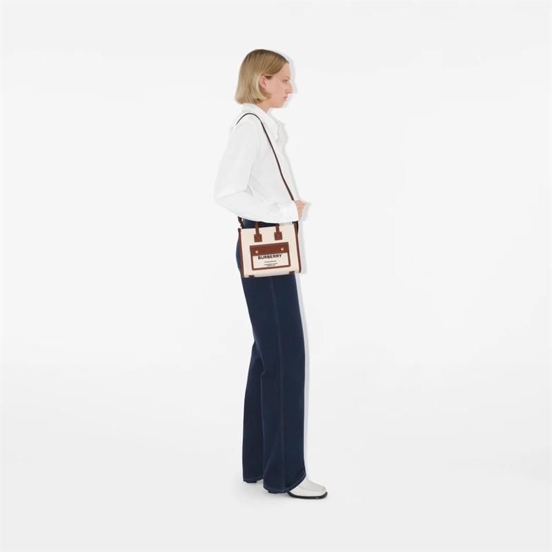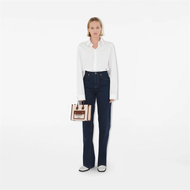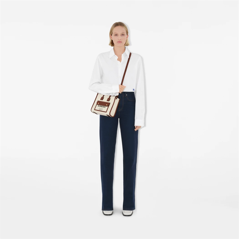 A compact tote bag crafted in canvas in Italy. It features topstitched leather trims and a cotton and linen lining. The front magnetic pocket features a Horseferry print inspired by the brand's archive.