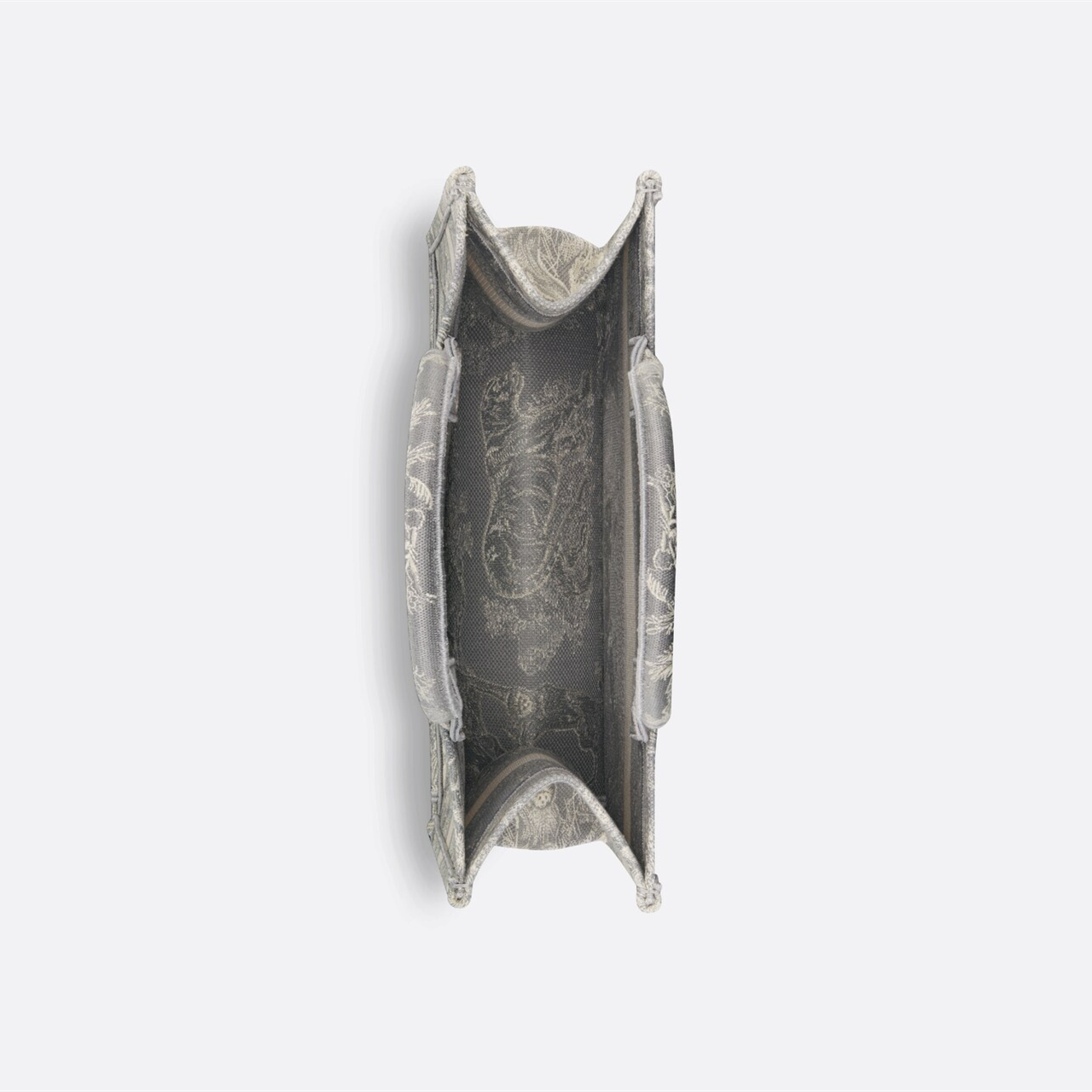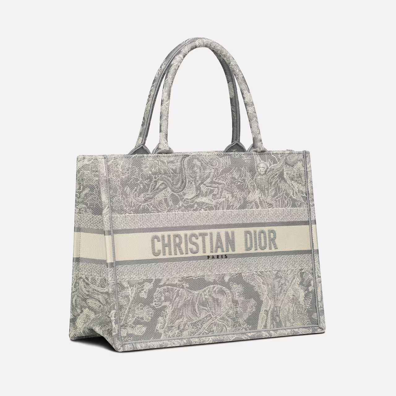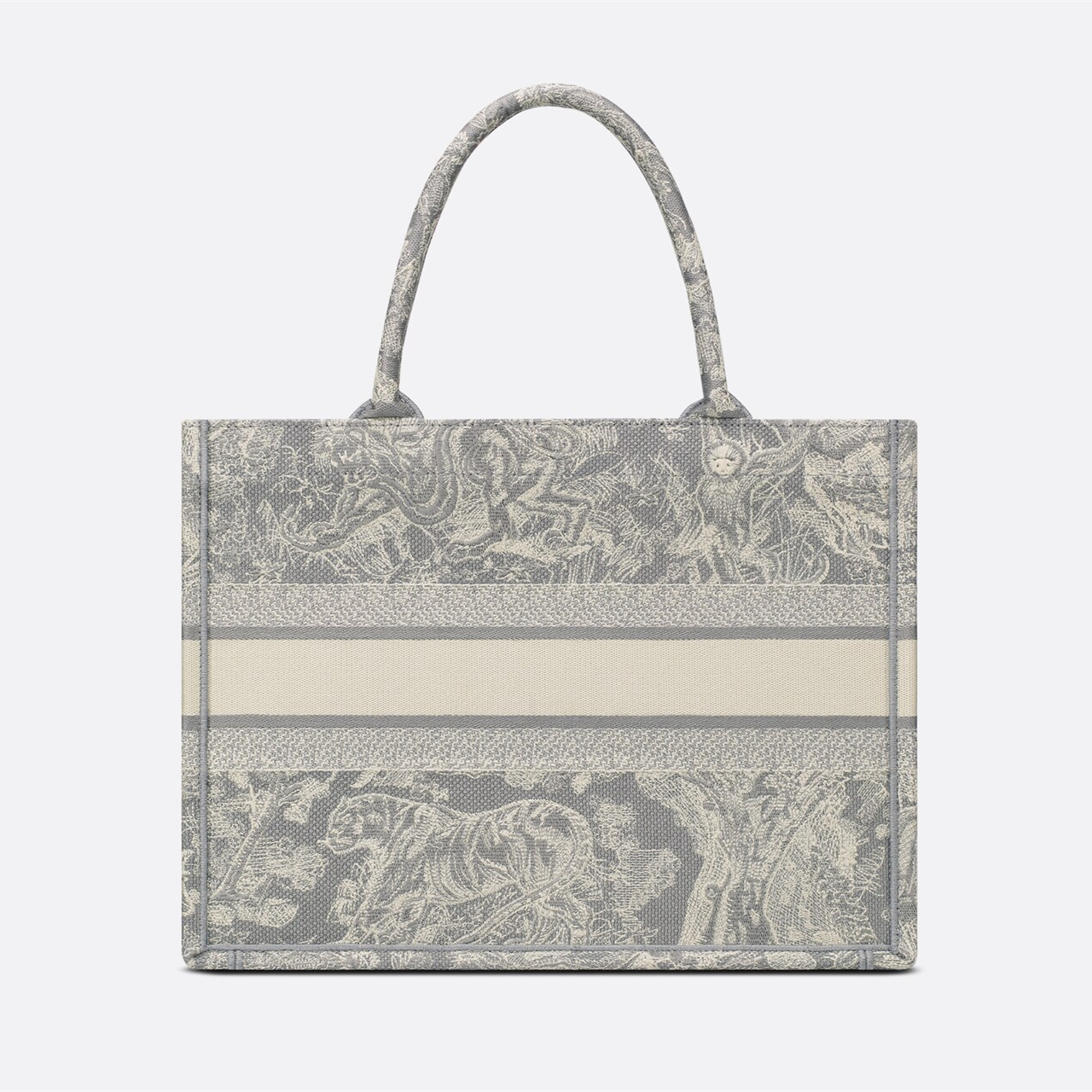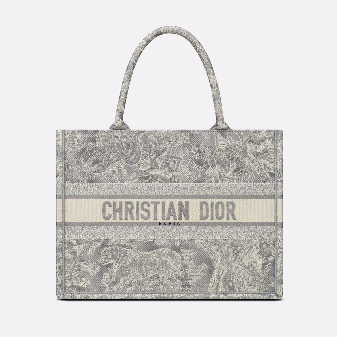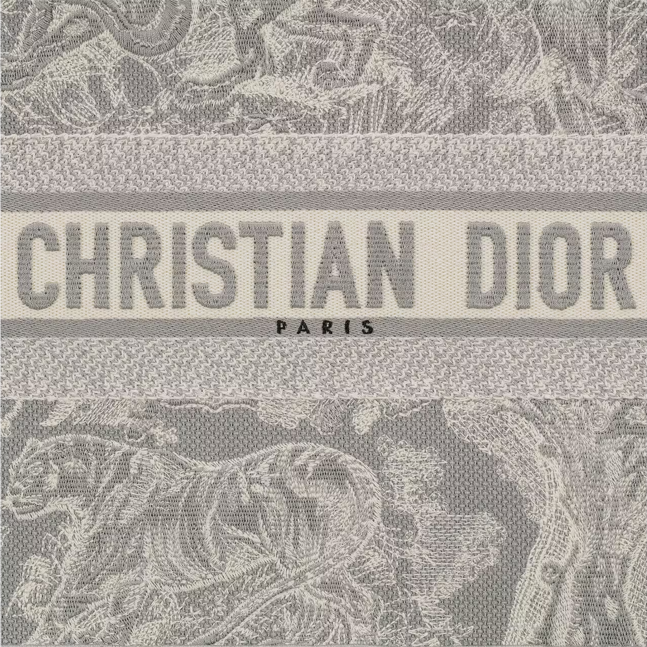 Designed by Maria Grazia Chiuri, Creative Director of Dior Women's Collections, the Book Tote is a staple of the Dior aesthetic. Embroidered with the grey and off-white Reverse Jouy print, a new take on the classic motif with a reversed effect, it can hold all your daily essentials. The medium version features the Christian Dior Paris signature on the front, a tribute to Dior's savoir-faire, and can be carried by hand or on the shoulder.