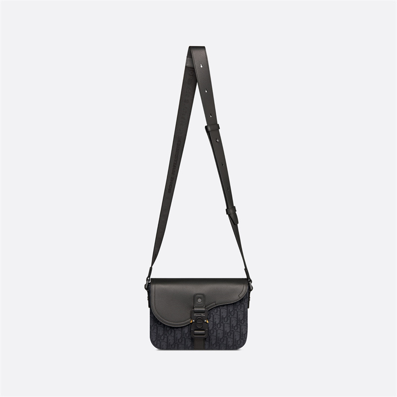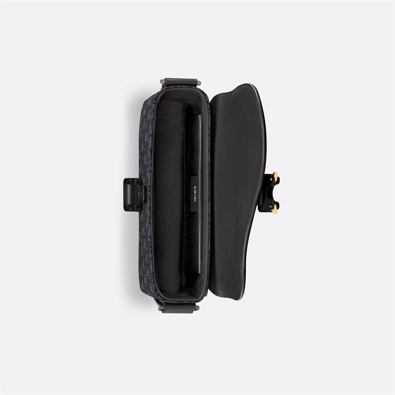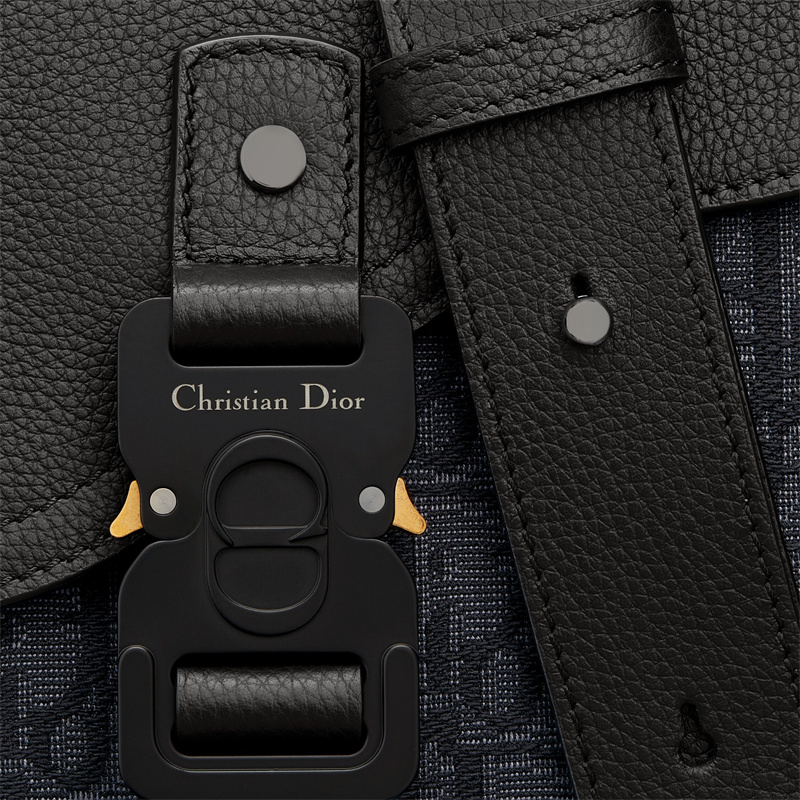 This Saddle messenger bag is a smart and stylish creation. Crafted in black Oblique print fabric, it features a tonal grained calfskin saddle flap, enhanced by an aluminum buckle. The spacious interior compartments and a back slip pocket provide space for your daily essentials. Small size with adjustable leather and Christian Dior jacquard shoulder strap for shoulder or crossbody wear.