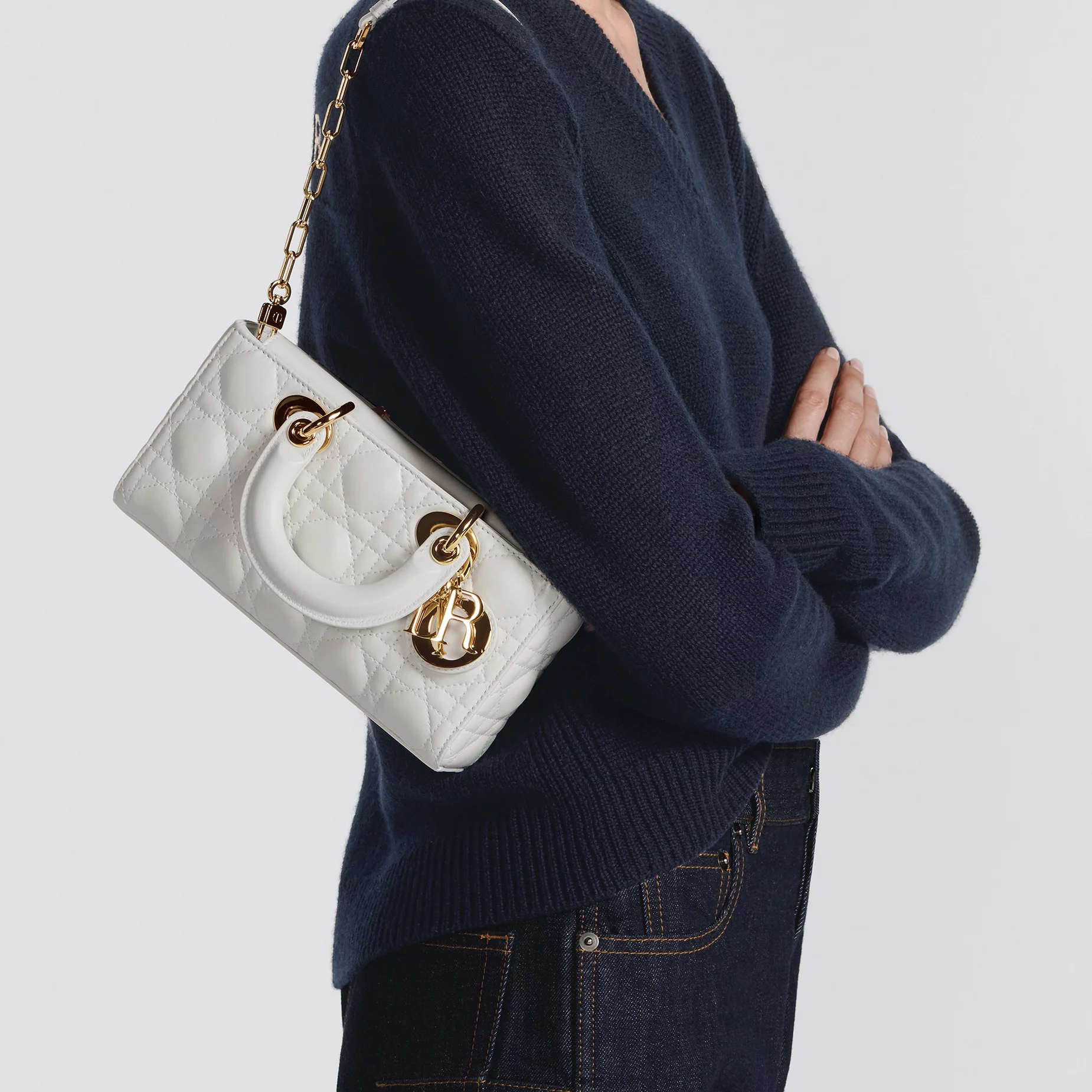The Lady D-Joy bag epitomizes the minimalist aesthetic of the Lady Dior collection, epitomizing Dior's deep vision of elegance and beauty. Crafted from matte black calfskin leather, it features striking quilting details in classic cannage stitching, highlighting the fine craftsmanship of the craftsmanship. The tonal metal D.I.O.R. charm adds an elegant touch. The small model features a detachable chain shoulder strap and an adjustable, detachable leather shoulder strap, making it an ideal everyday choice for carrying by hand, on the shoulder or across the body.