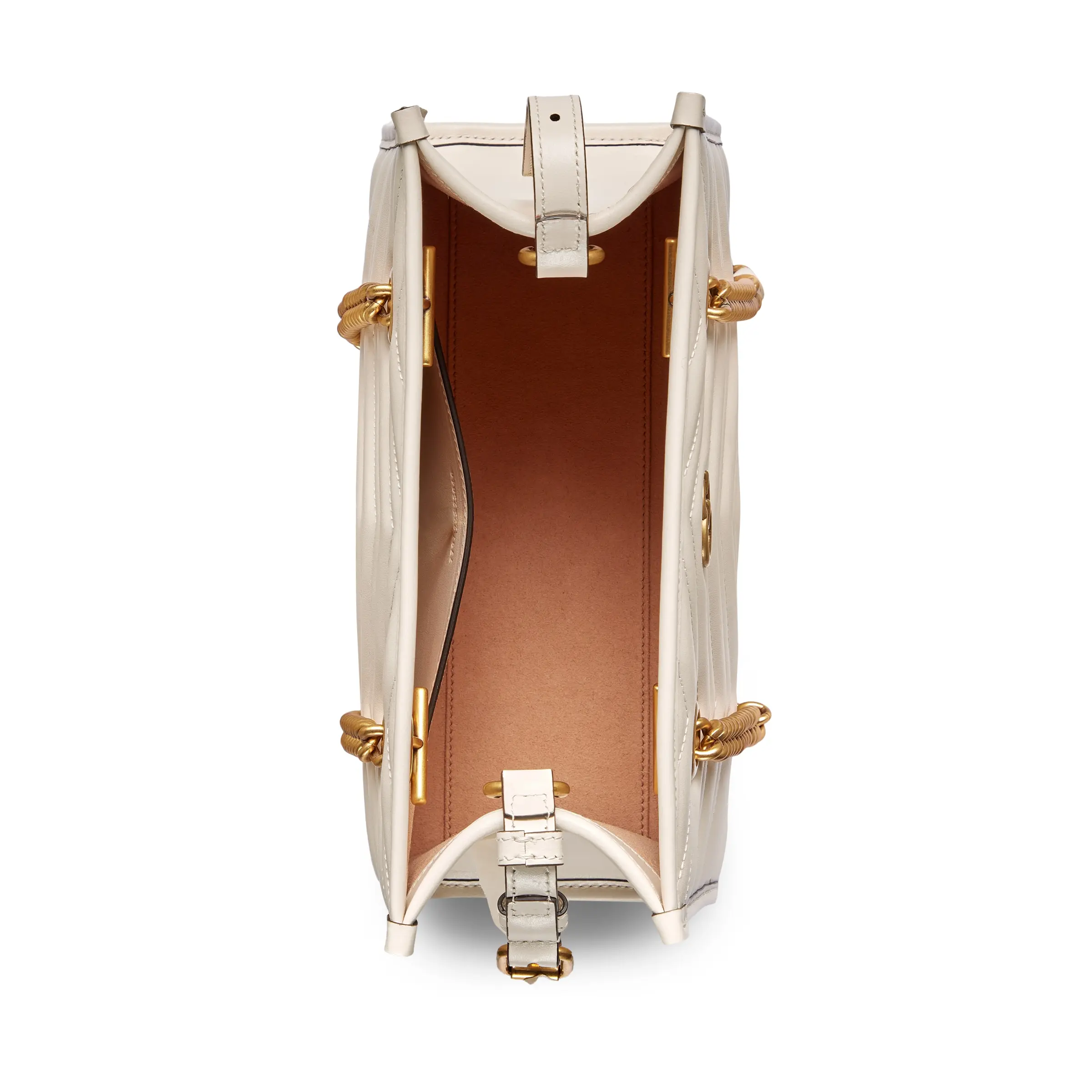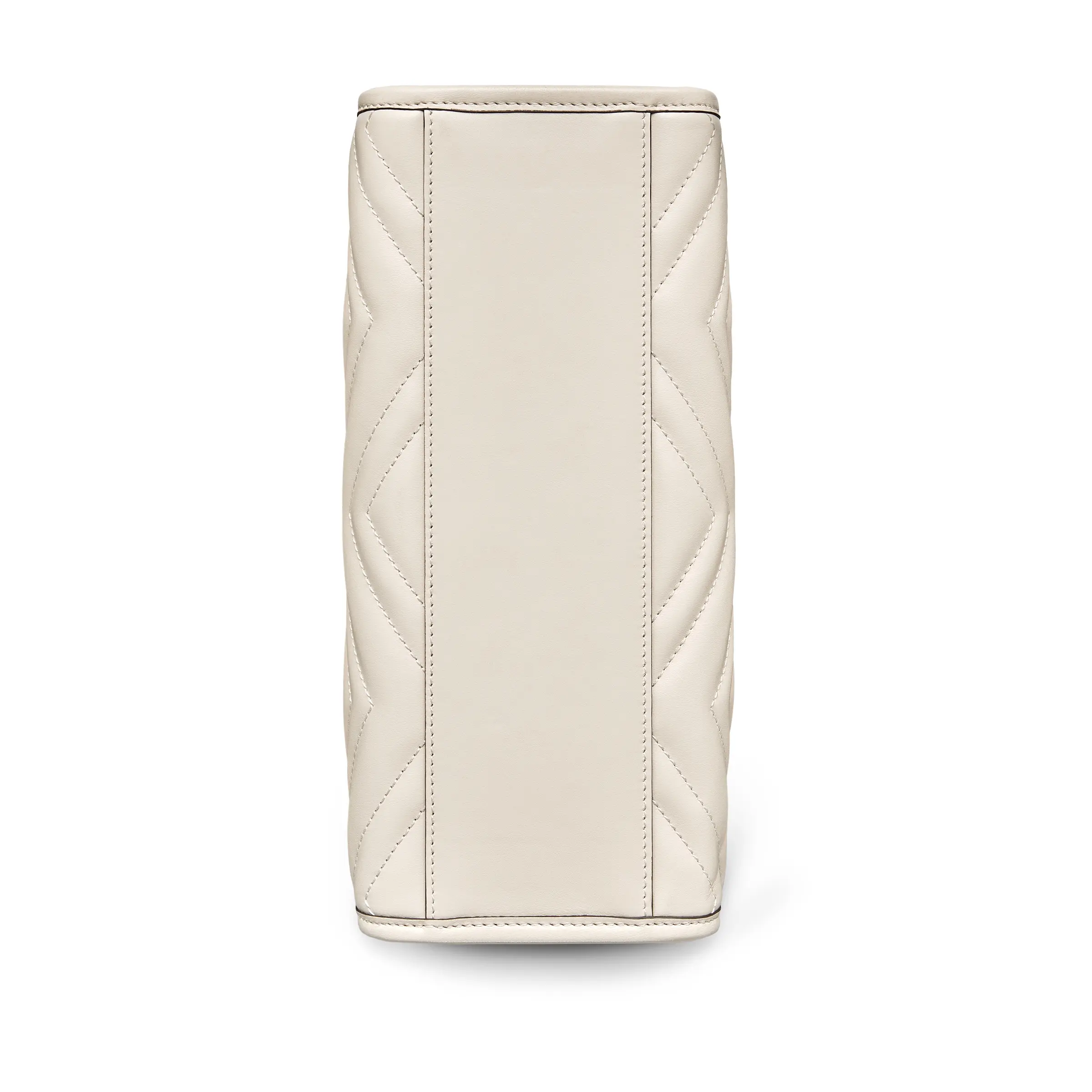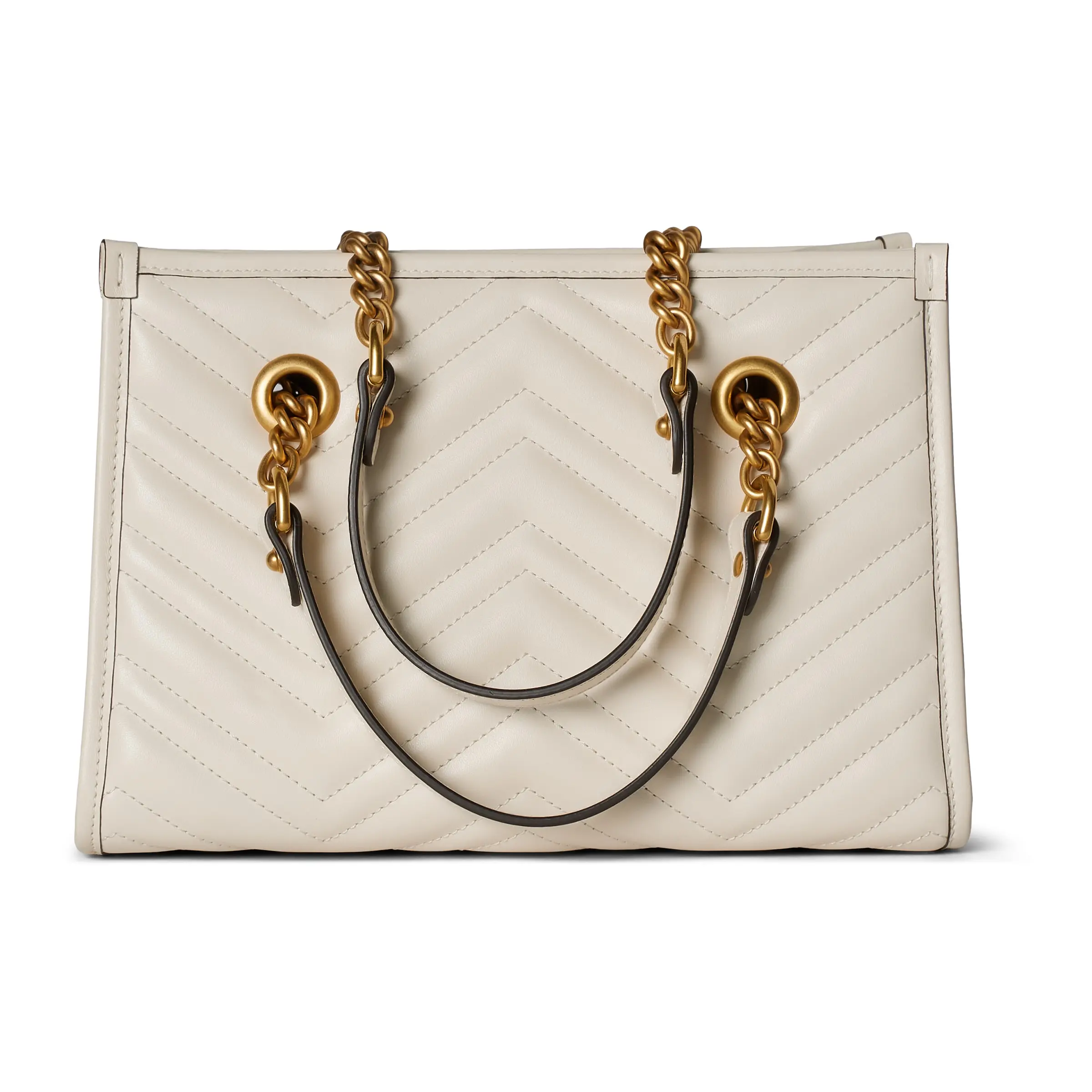 The GG Marmont collection continues to shine in the Spring/Summer 2024 collection. Crafted in white quilted leather, this small tote features the timeless Double G logo and gold-tone hardware, a charming interpretation of the brand's classics.