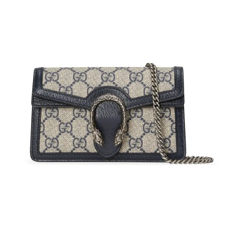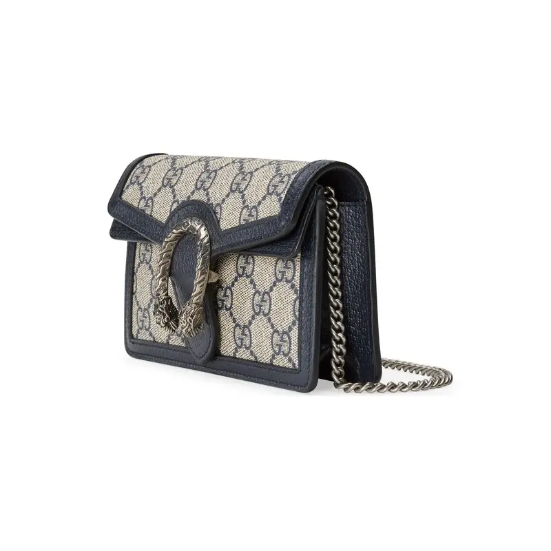 In the new fashion series "Gucci Love March", GG Supreme canvas introduces a classic and timeless blue and beige combination. The canvas material that inherits the historical origin of the material has been used in multiple series for a long time and has become the brand's iconic material. This Dionysus series super mini handbag adopts classic colors.