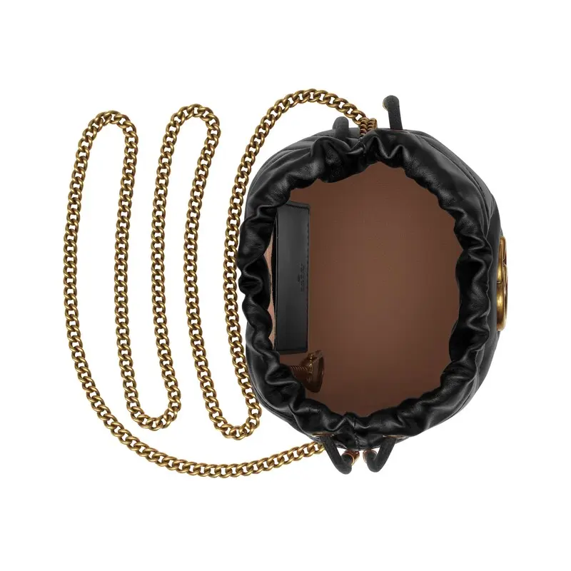 Made of black quilted chevron leather with heart pattern on the back