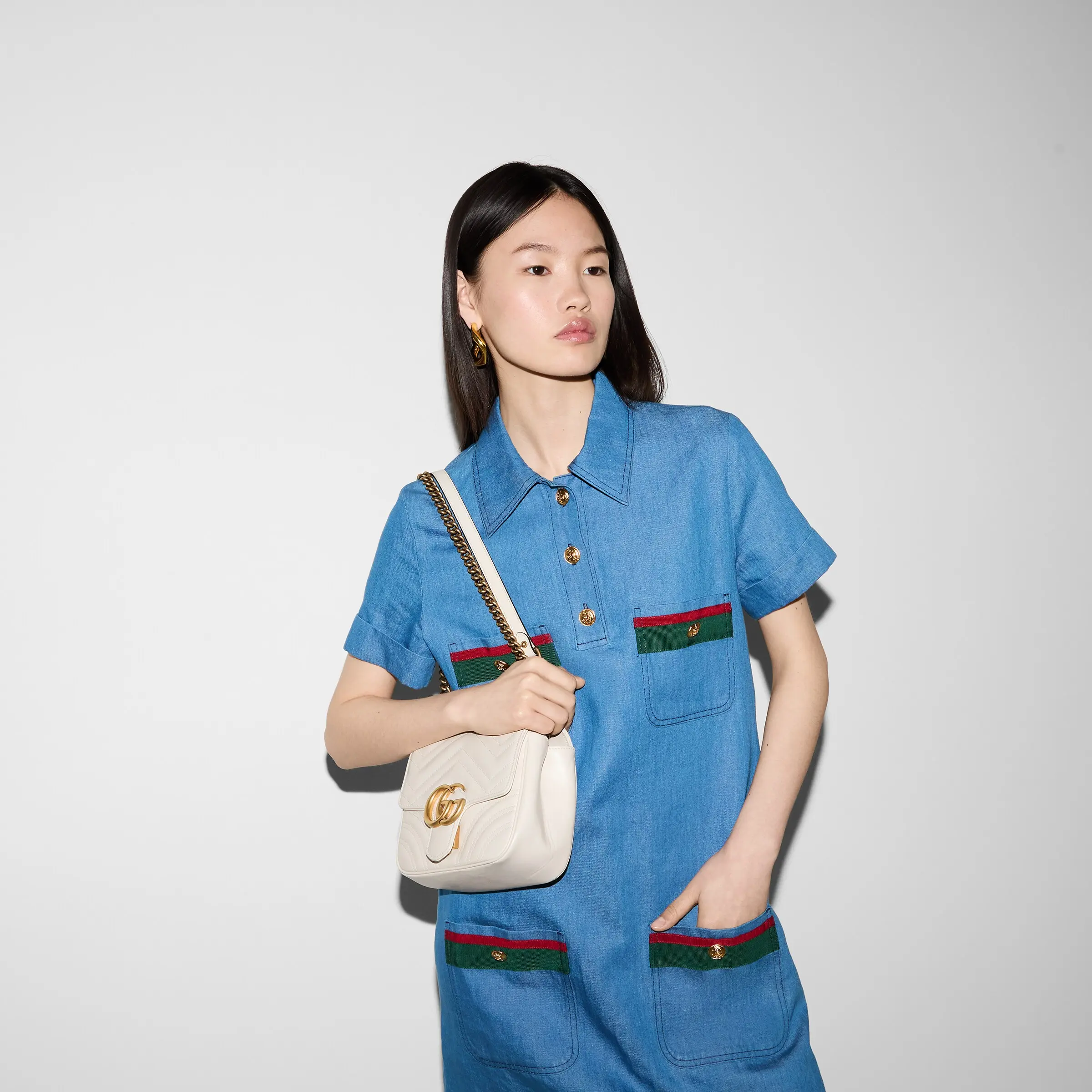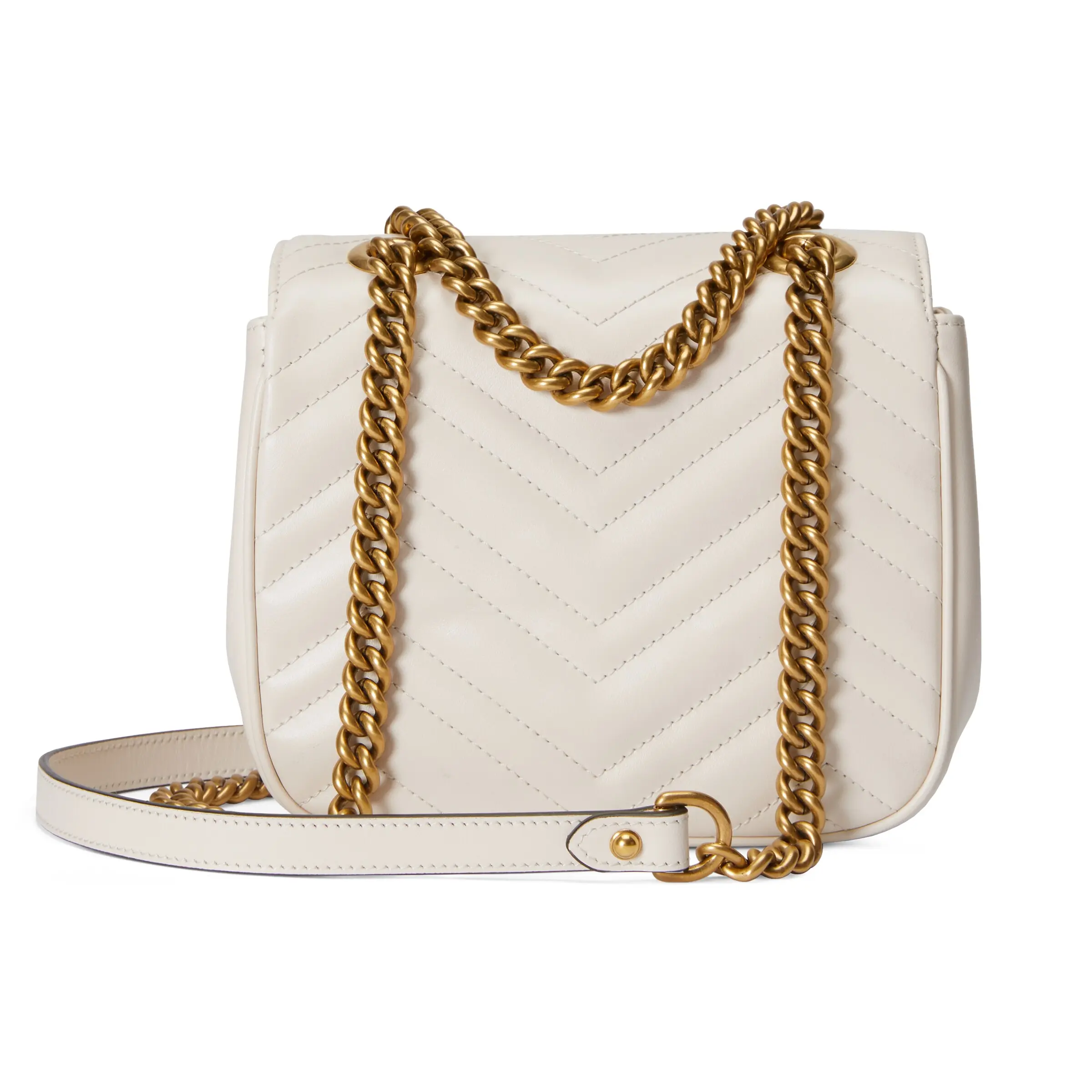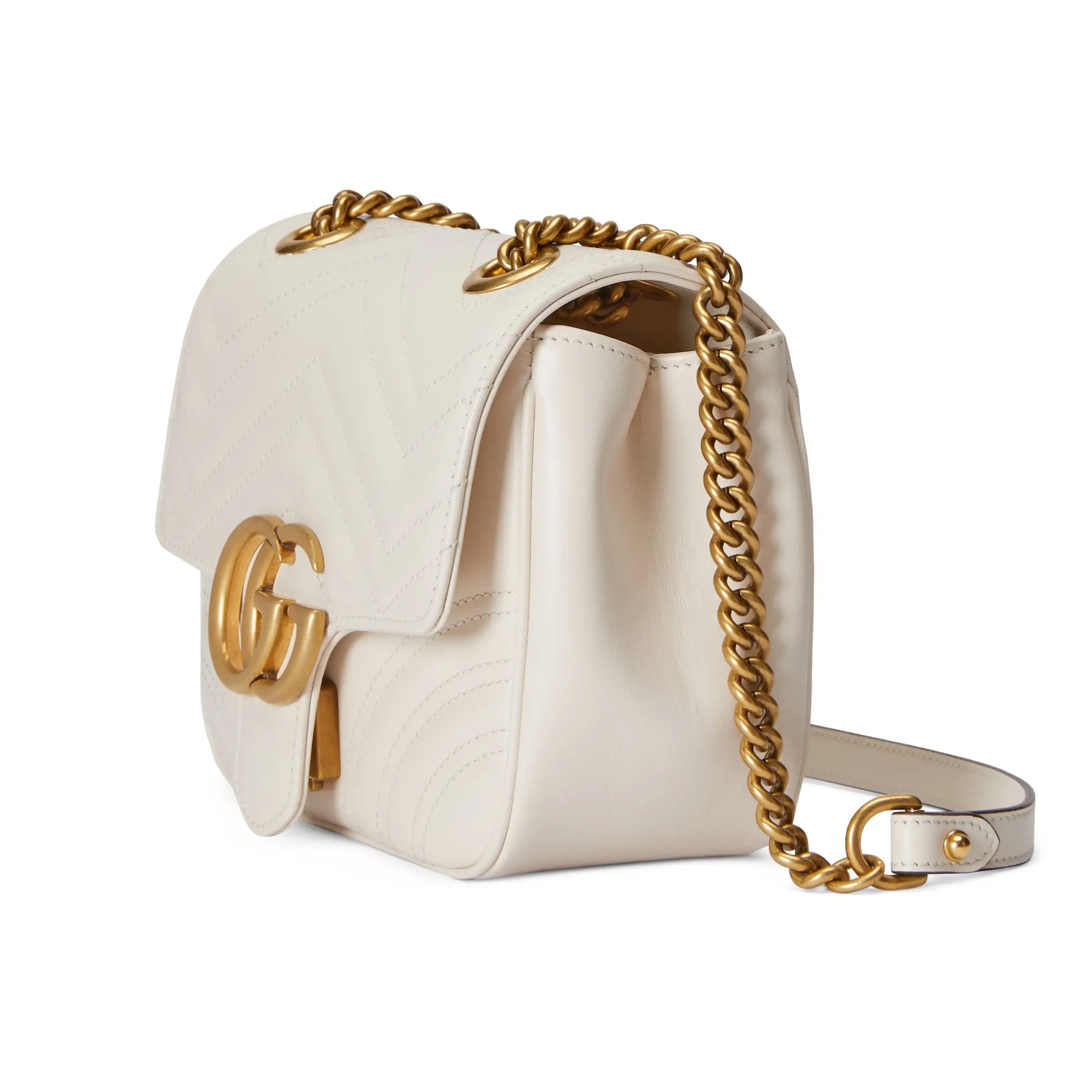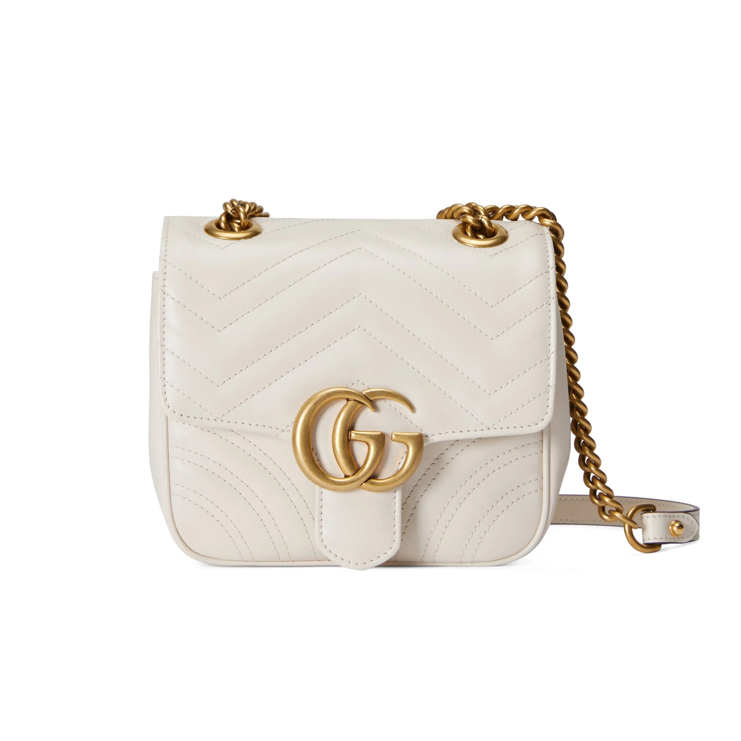 With its instantly recognisable quilted fabric and Double G hardware, the GG Marmont bag has become a symbol of the house. This classic line is re-introduced in new silhouettes each season, in line with Gucci's current aesthetic. This tote is crafted in white leather with antique gold-toned details.