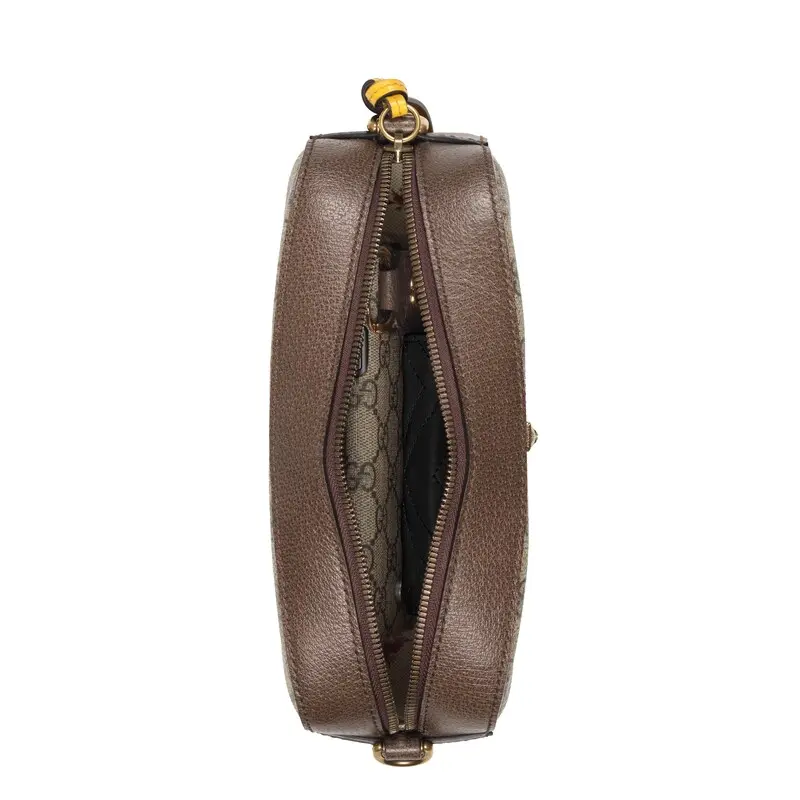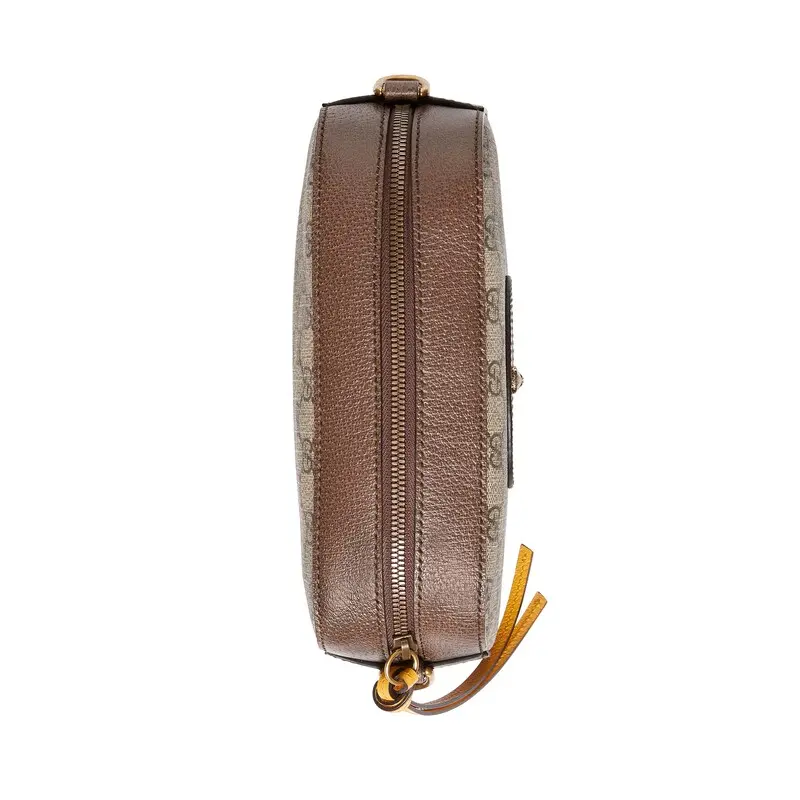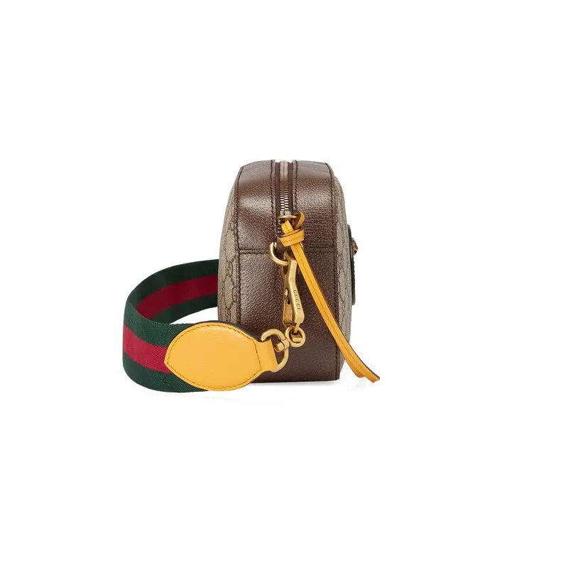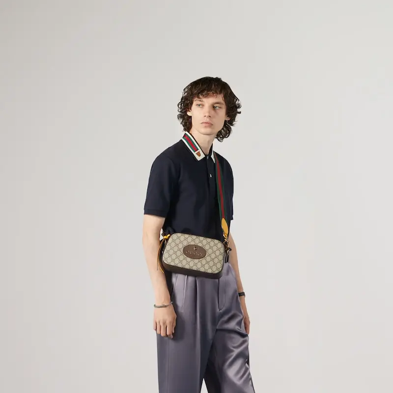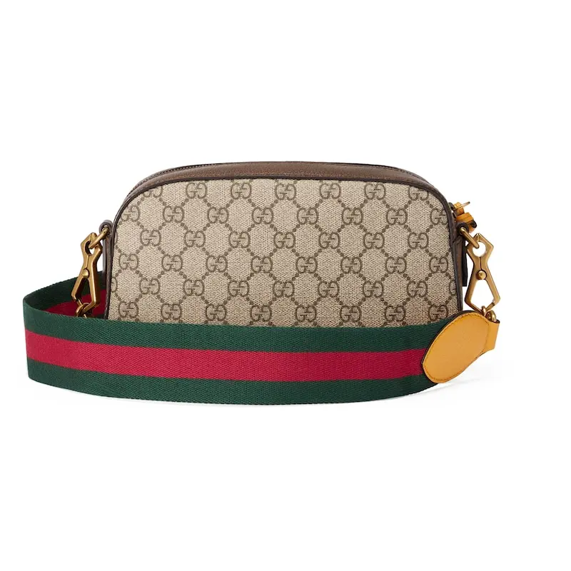 A collection of vintage-inspired bags with branded striped web piping for a refined take on the modern traveler. Crafted from GG Supreme canvas with yellow leather details.