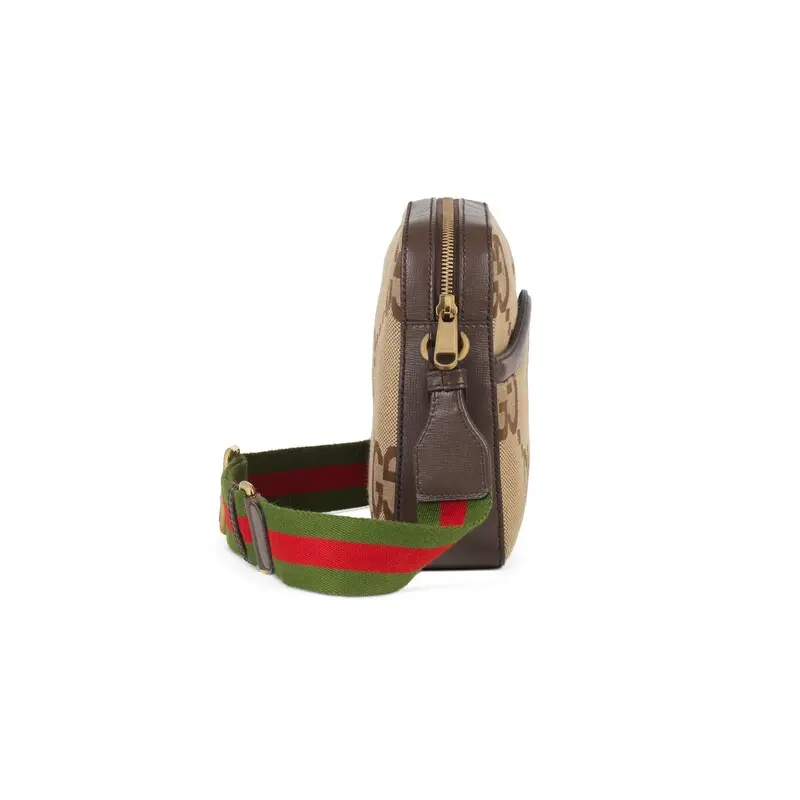Since its creation, the Interlocking G has been one of the brand's signature elements. The familiar brand symbol is combined with leather details to make this messenger bag a striking focal point. Made of canvas with the classic interlocking G, this piece exudes a strong brand connotation with the enlarged GG element.