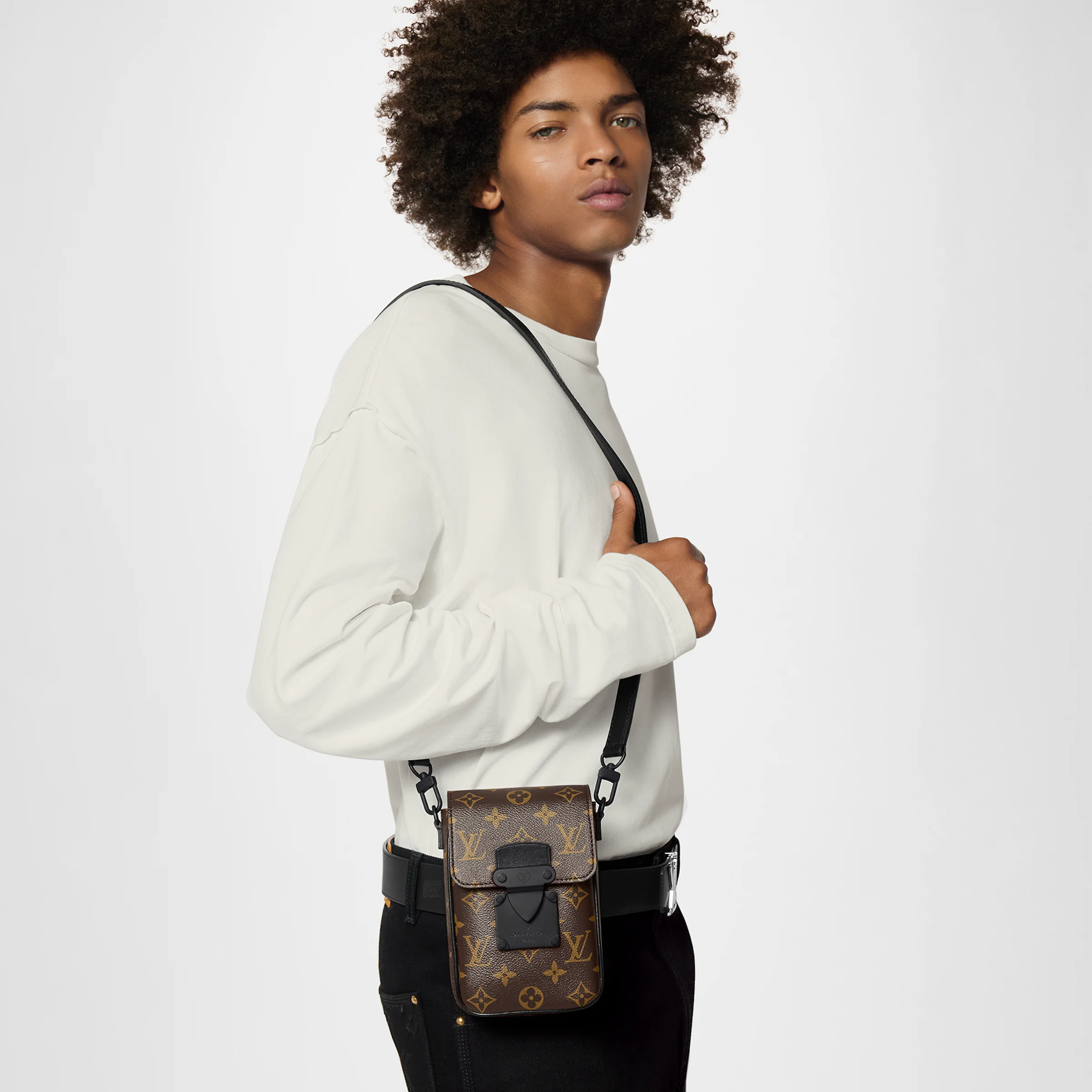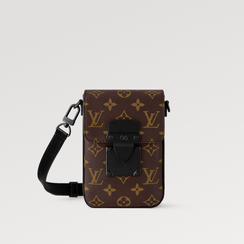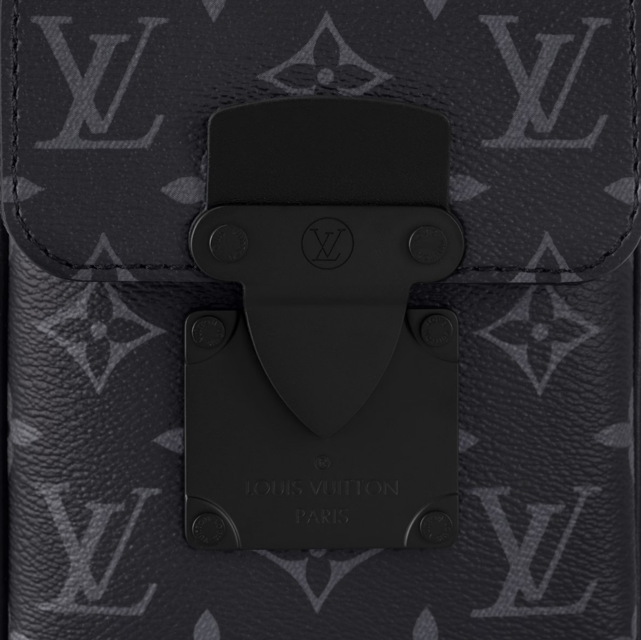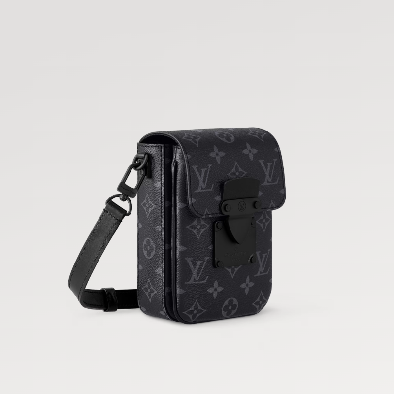 This S-Lock Vertical Mini Bag is crafted from Monogram Eclipse canvas, making it perfect for carrying your daily essentials. The magnetic clasp design is inspired by the brand's traditional hard case lock, securely storing your personal items. The added phone compartment enhances functionality, and the adjustable, detachable shoulder strap offers comfortable shoulder and crossbody wear.