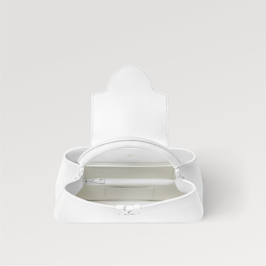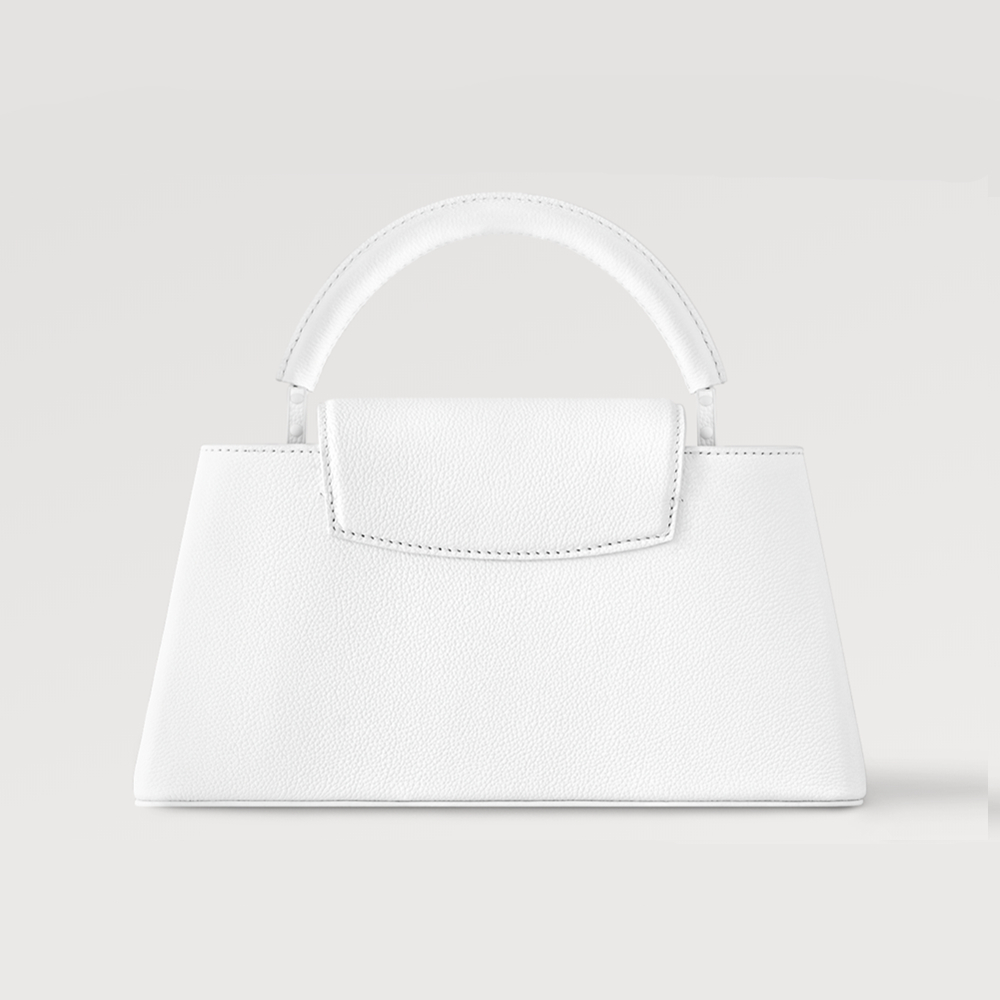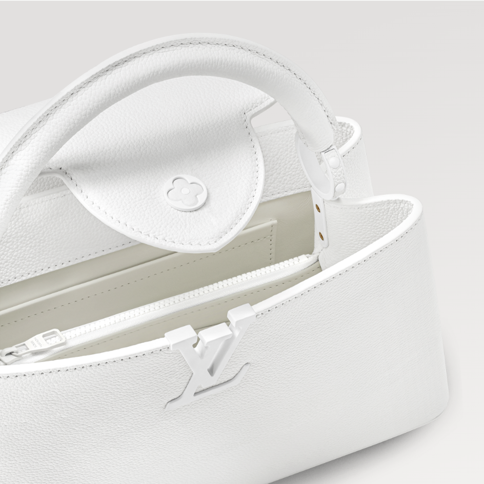 The Capucines Medium Bag is a horizontal version of the brand's classic design. The luxurious leather and metal parts have a matte texture, and there is ample space to easily store a mobile phone, a long wallet and other daily necessities. The removable and adjustable leather shoulder strap allows for more styling possibilities.