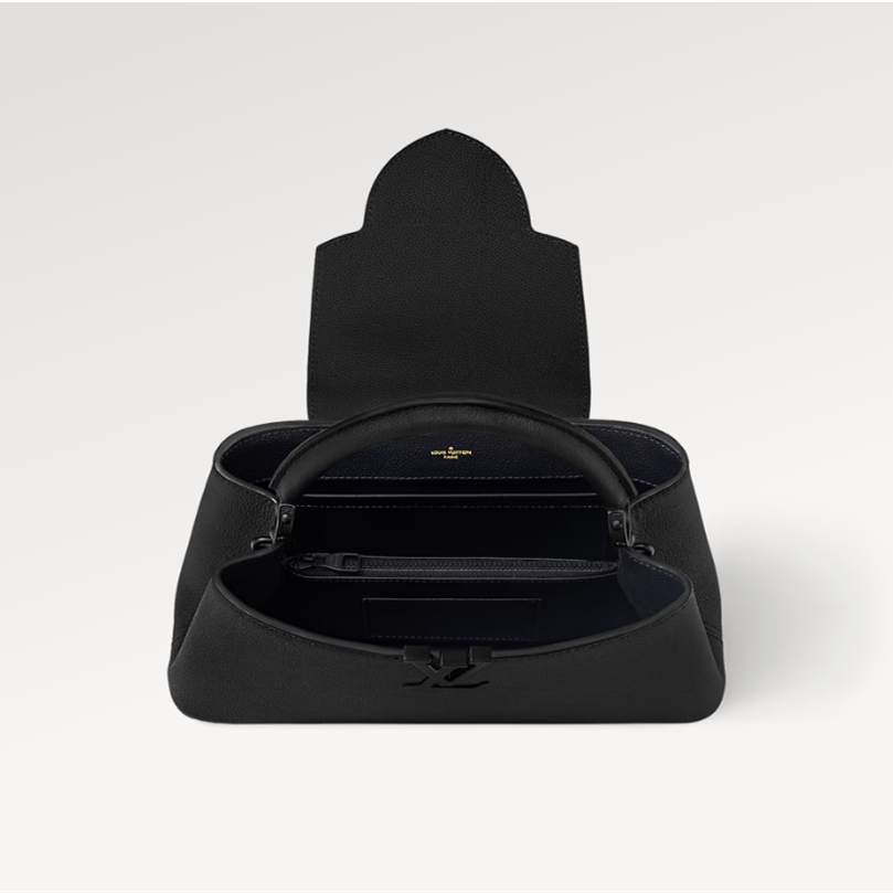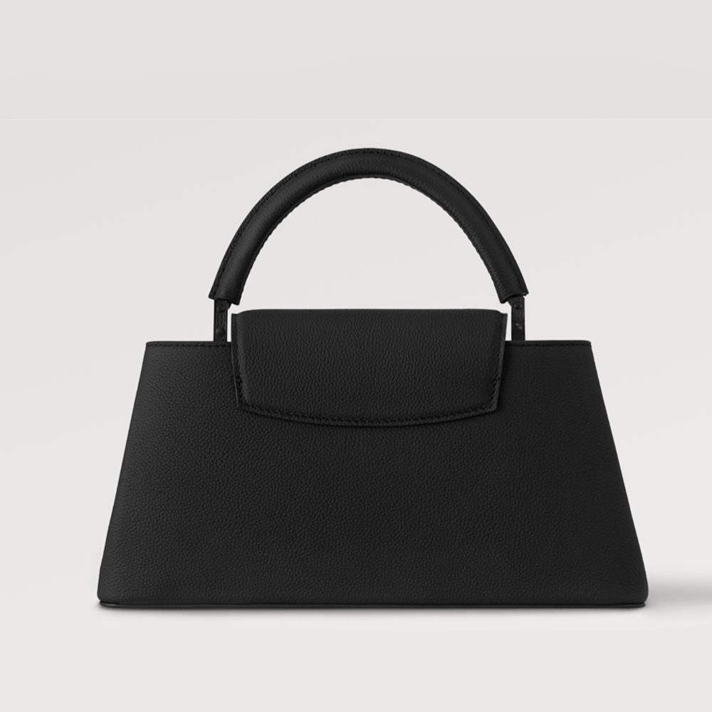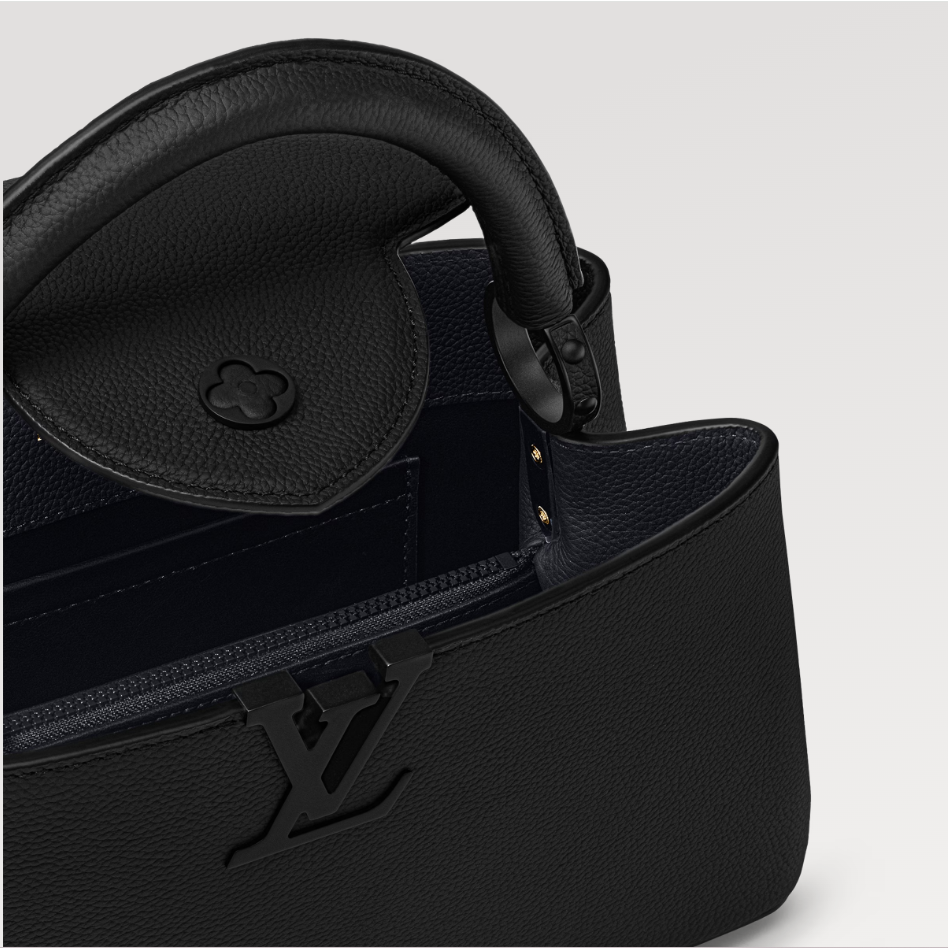 The Capucines Medium Bag is a horizontal version of the brand's classic design. The luxurious leather and metal parts have a matte texture, and there is ample space to easily store a mobile phone, a long wallet and other daily necessities. The removable and adjustable leather shoulder strap allows for more styling possibilities.