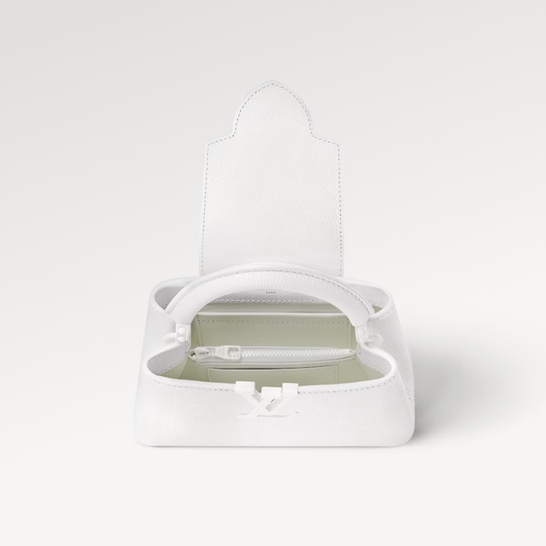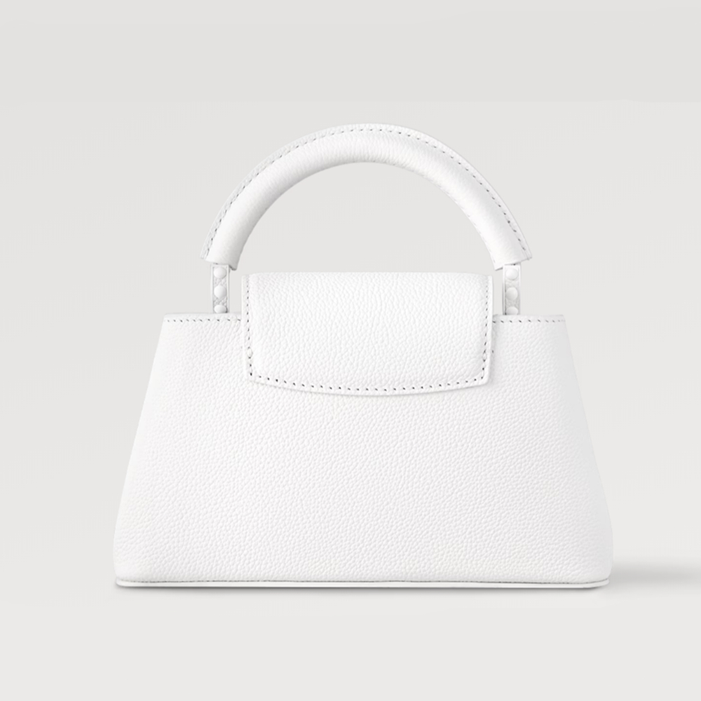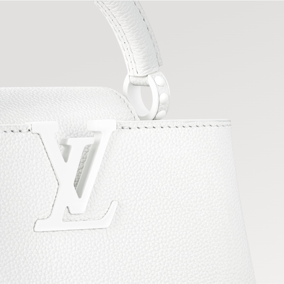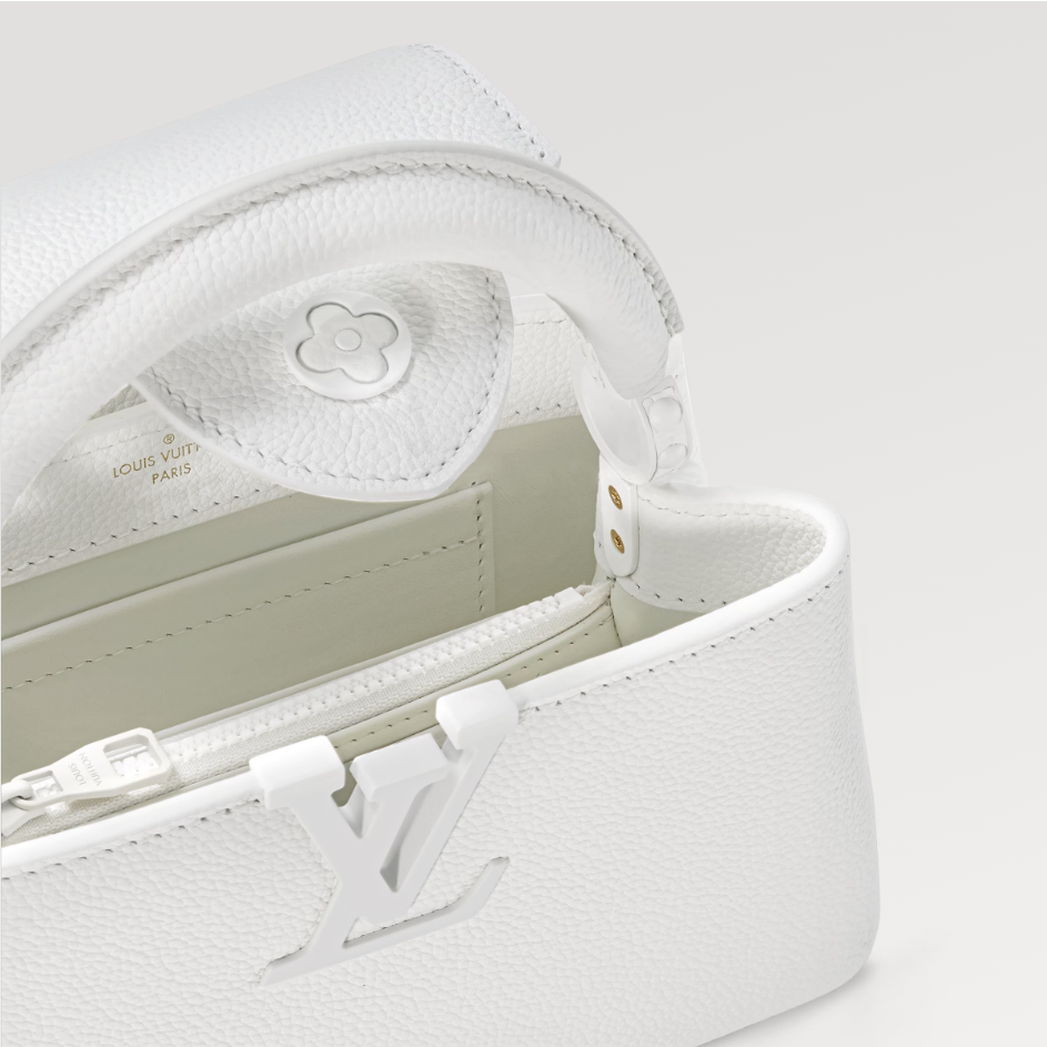 This Capucines mini bag is made of luxurious cowhide leather and matte metal parts, conveying a modern attitude. It brings together classic elements of the same series in a new horizontal configuration. The adjustable braided chain is convenient for shoulder or crossbody, making it a trendy choice for storing small items such as mobile phones and short wallets.