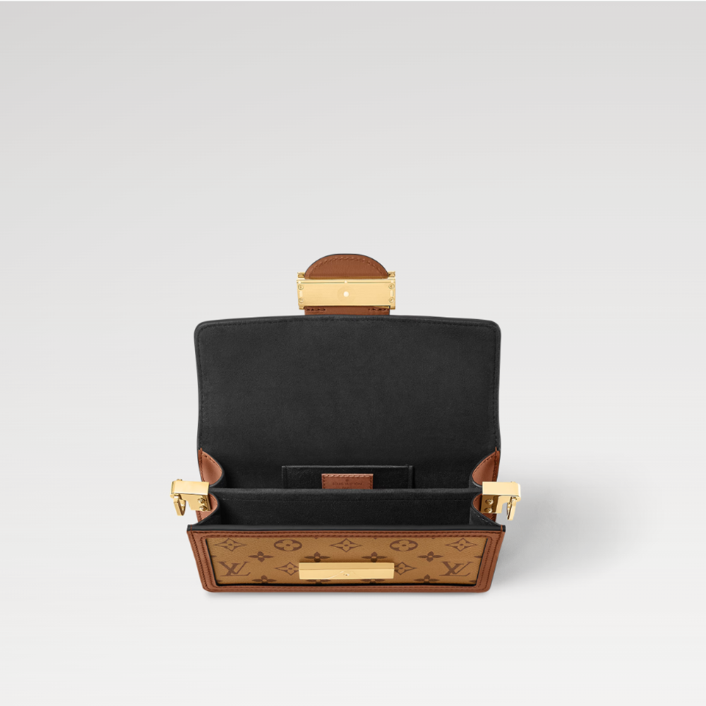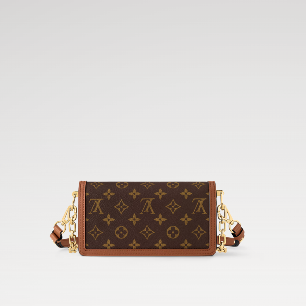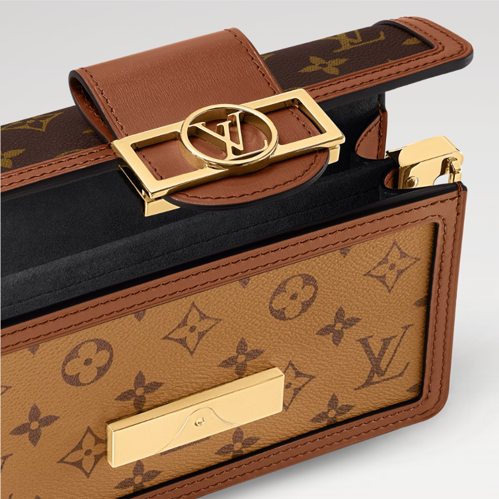 Combining classic Monogram and Monogram Reverse canvases, this Dauphine East West bag is slender in the House's signature style, subtly echoing the rectangular silhouette of the Dauphine LV clasp. With its removable leather shoulder strap and chain, it can be carried in a variety of ways.