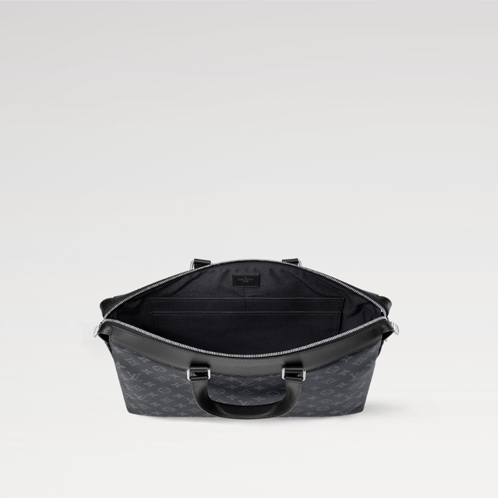 Introducing sophistication to the workplace, this modern briefcase exudes a pleasing business style with tough Monogram Eclipse canvas and unique design details. Roomy interior compartments with a darker, more modern take on the iconic Monogram pattern.