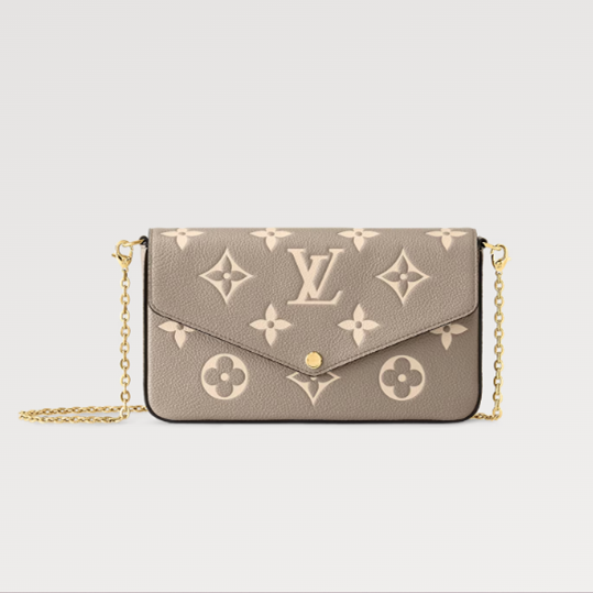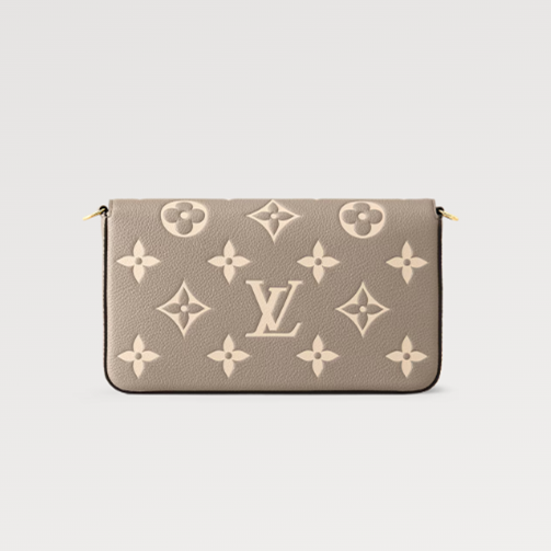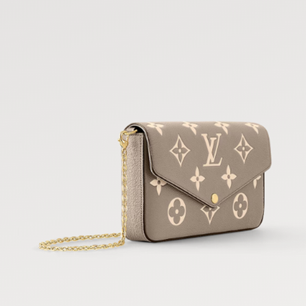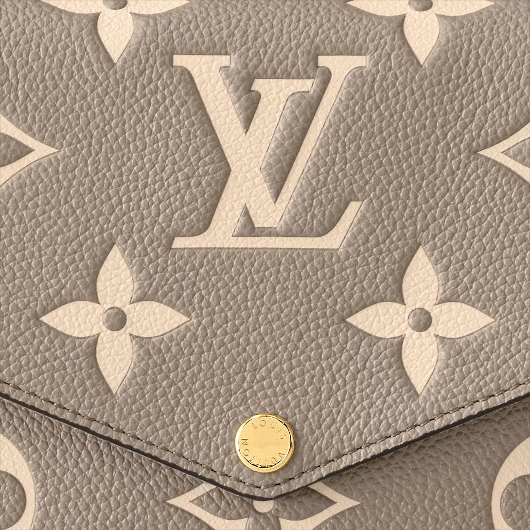 The Félicie Pochette is crafted from supple Monogram Empreinte leather, embossed with Louis Vuitton's iconic Monogram pattern. The bicolor palette brings added refinement to this elegant and versatile design, which features a removable chain, enabling it to be carried on the shoulder or as a clutch, as well as two removable pockets.