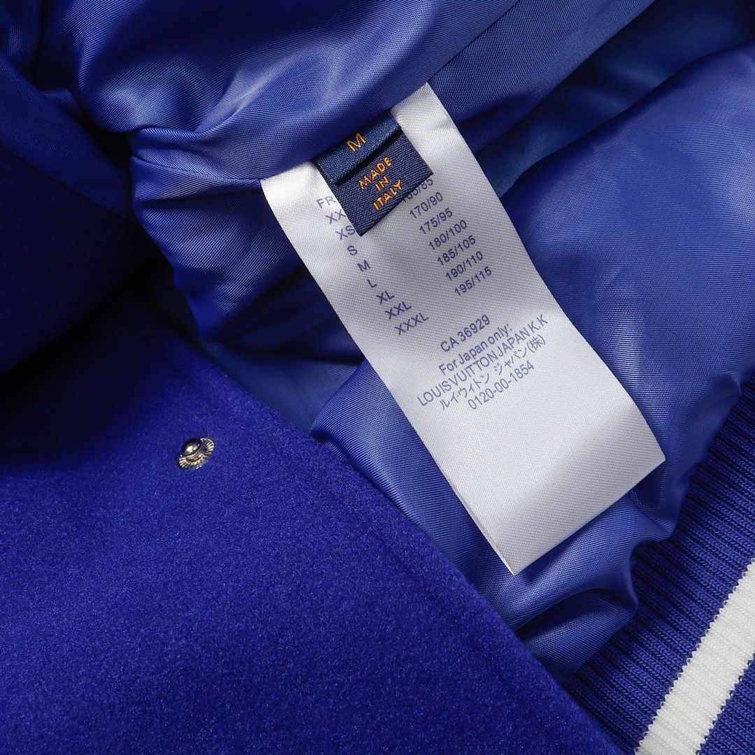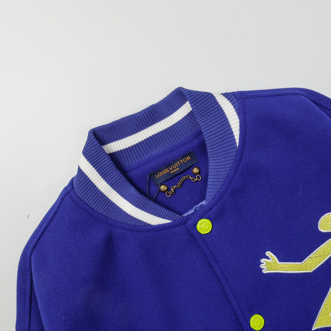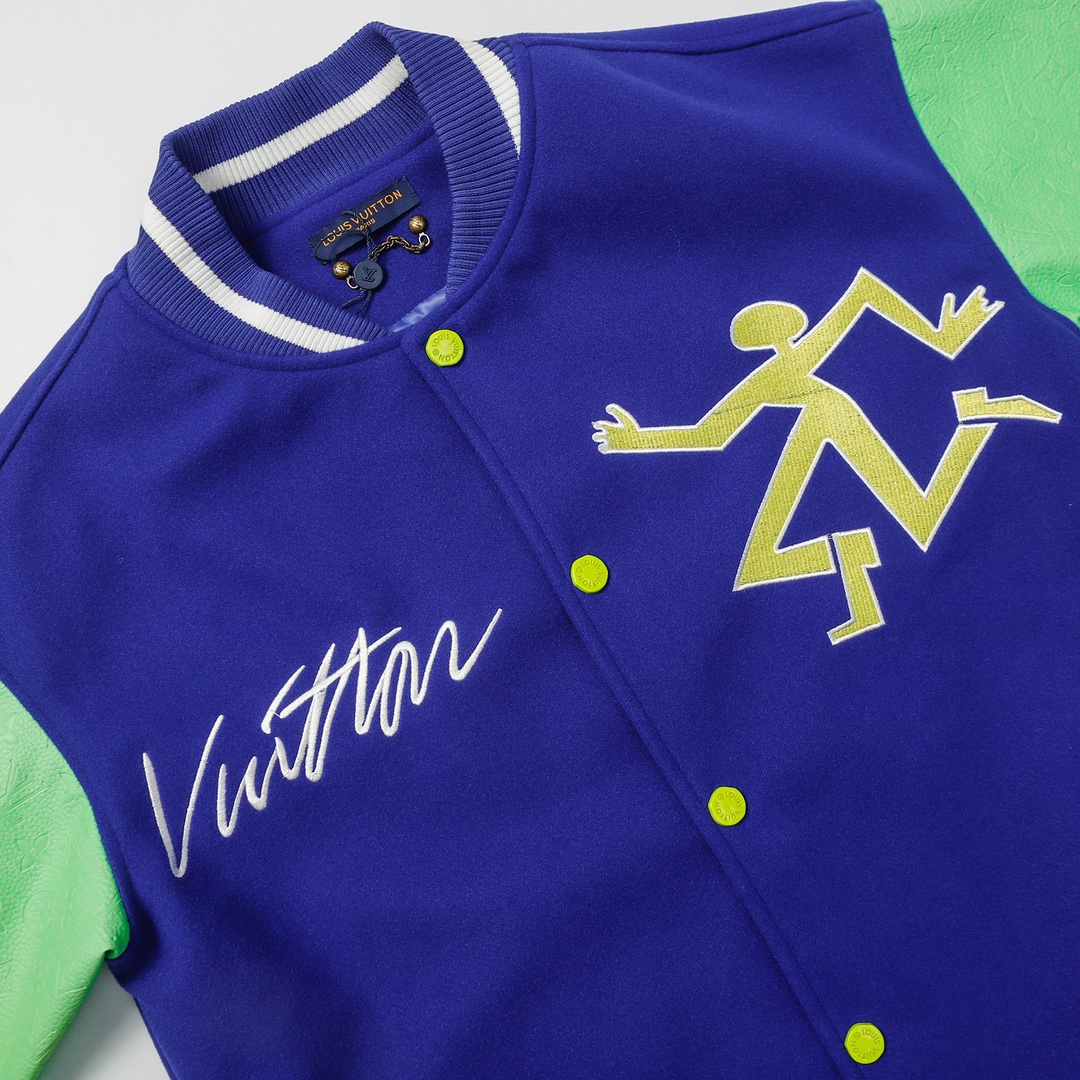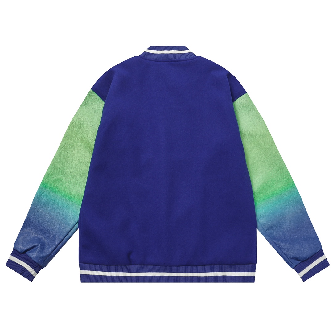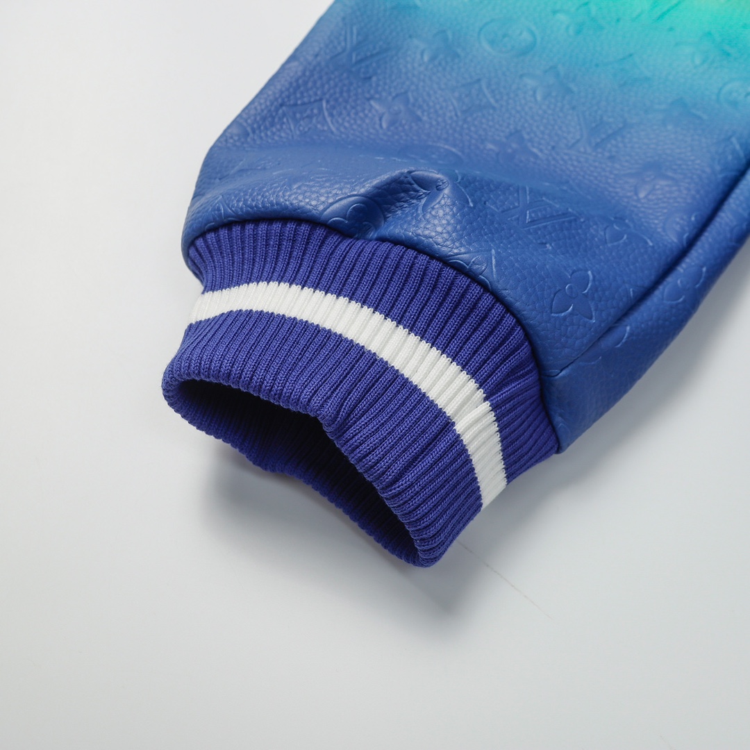 LV gradient embroidered baseball jacket + lychee leather sleeves-Color: Blue