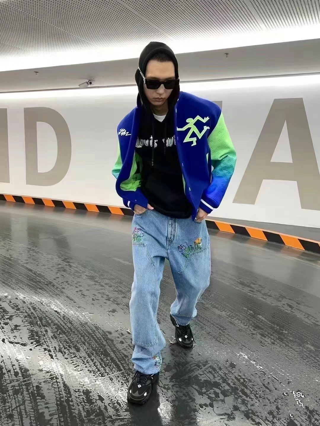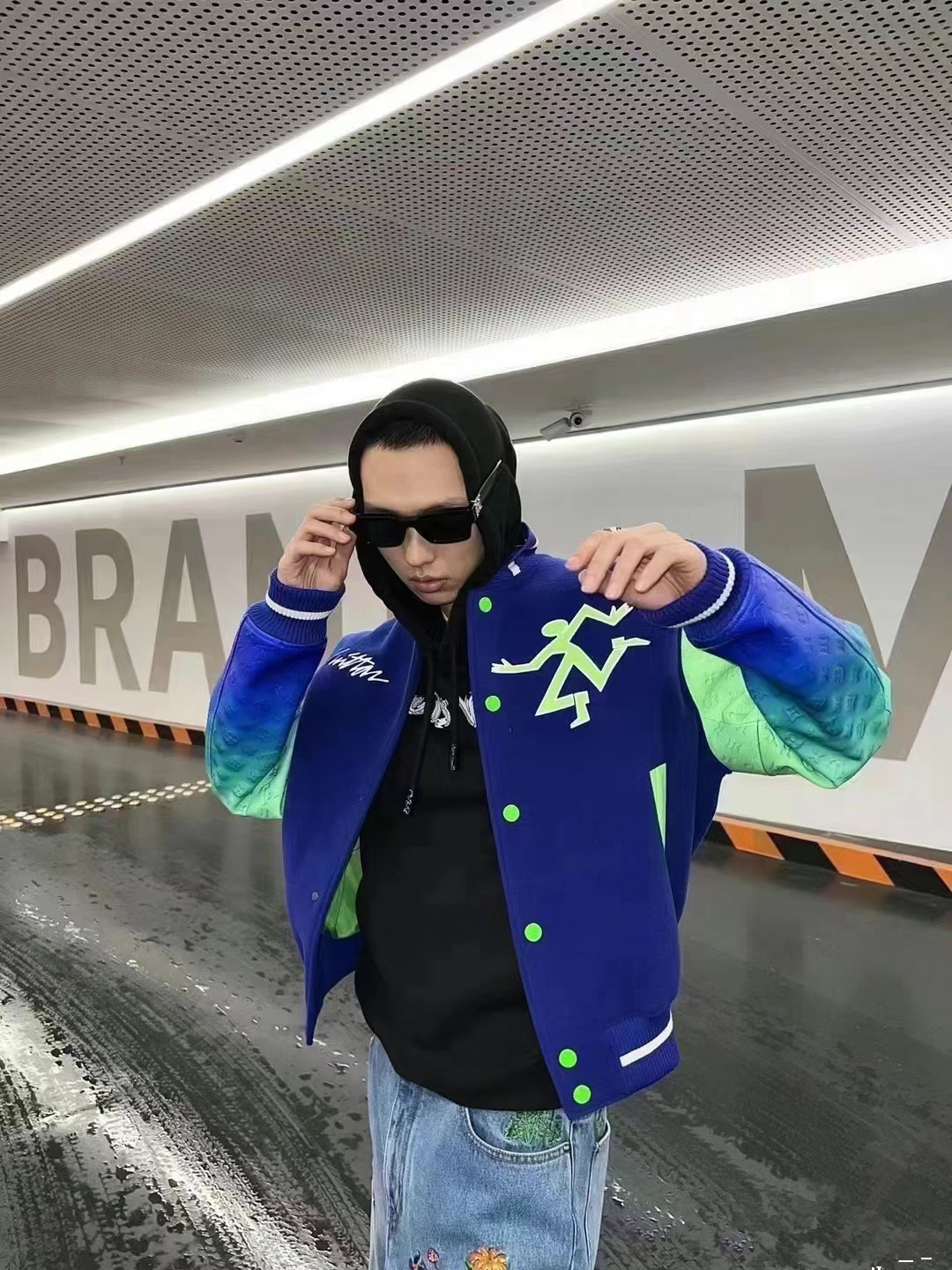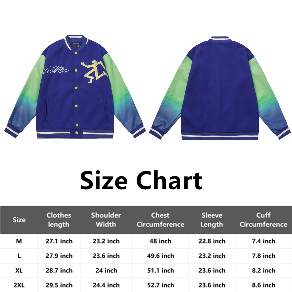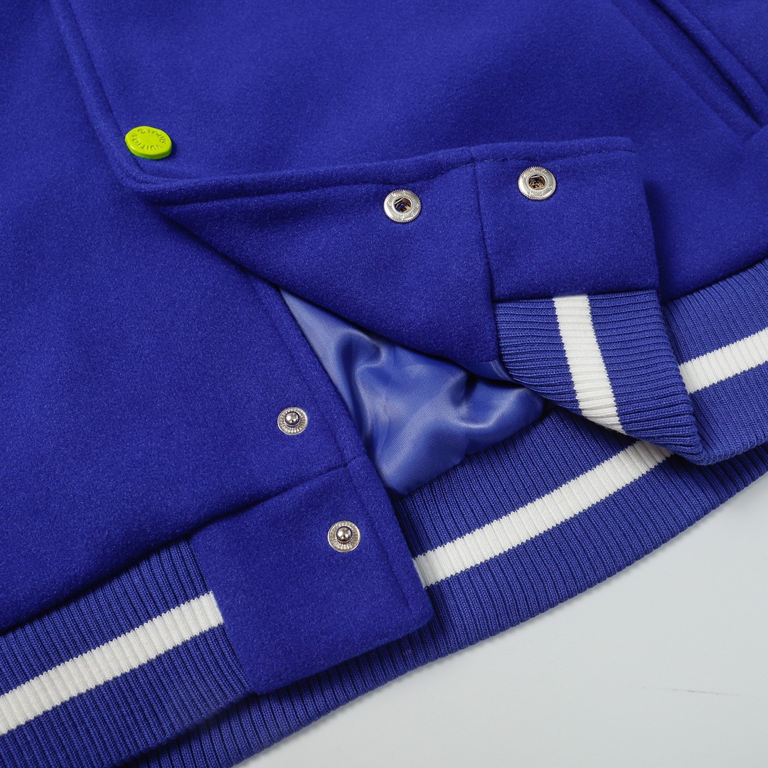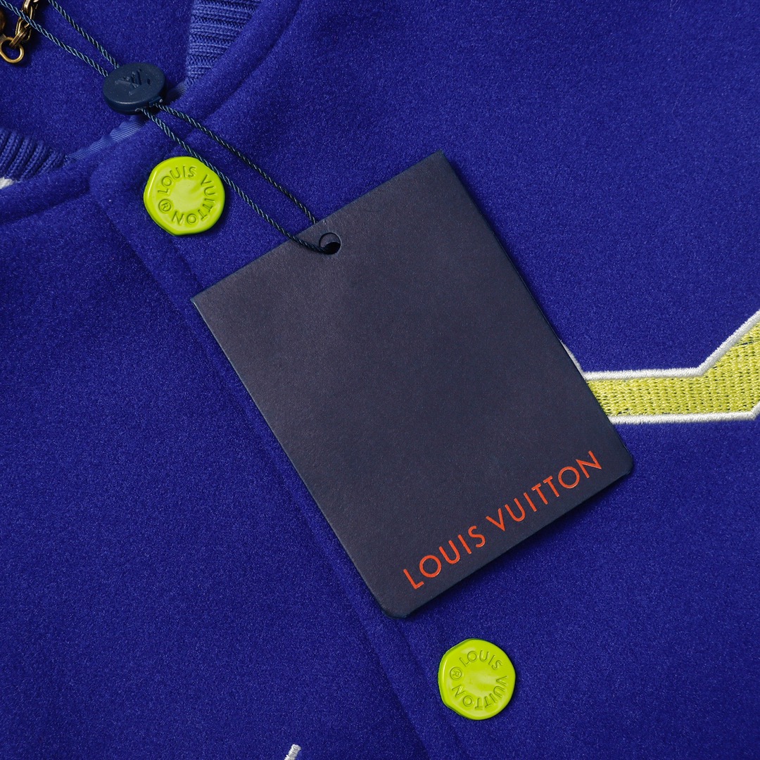 LV gradient embroidered baseball jacket + lychee leather sleeves-Color: Blue
