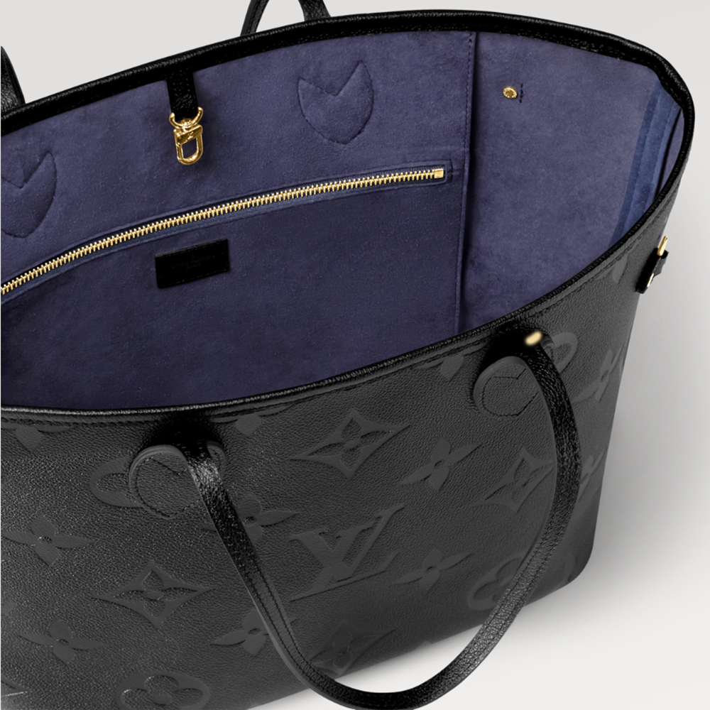This Neverfull Medium Handbag is made of Monogram Empreinte soft embossed leather. Tighten the side straps, the ample capacity can also be transformed into a small urban handbag; the long handle can be switched between shoulder and elbow.