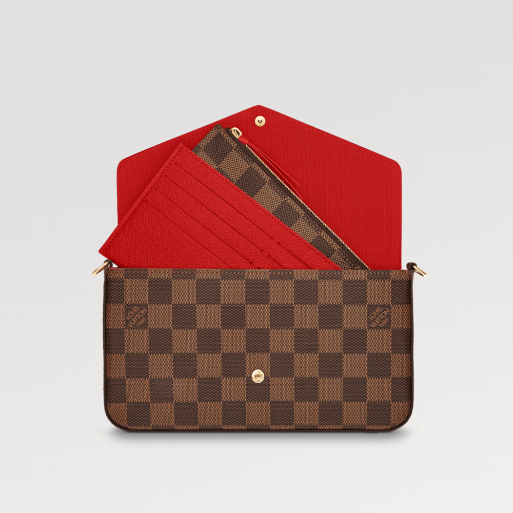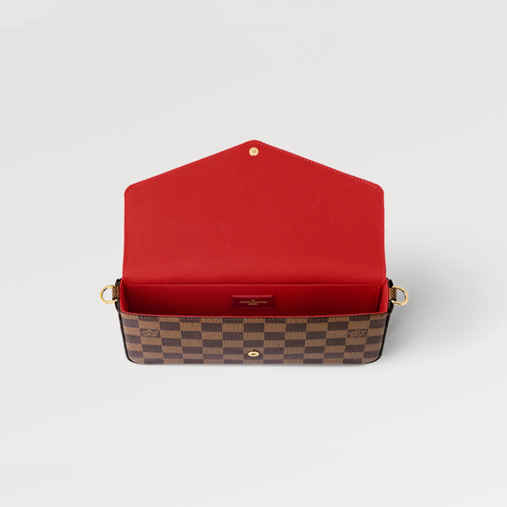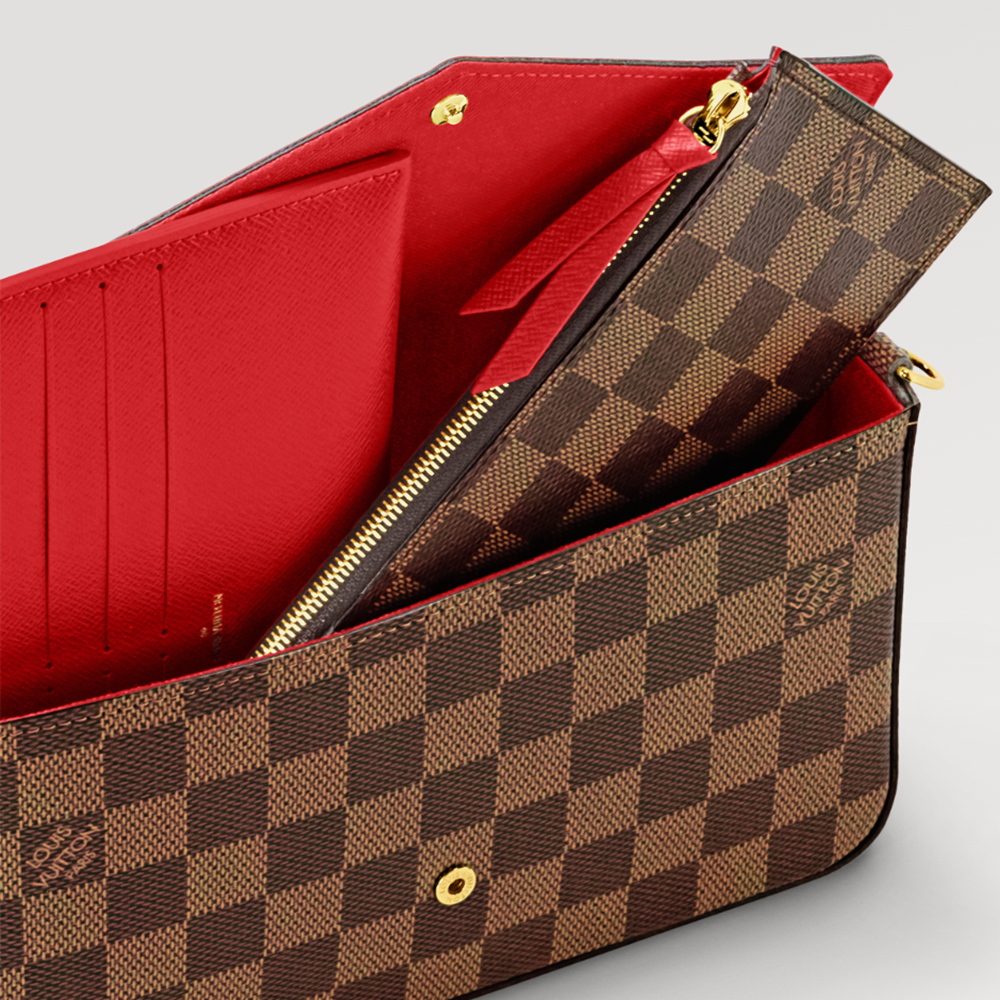This Pochette Félicie handbag is made of Damier Azur canvas, with an envelope-like configuration that contains ample space. The attached zipper pocket and pocket with card slots are both detachable. Tie or remove the chain, and you can switch between shoulder, crossbody, and handheld at will.