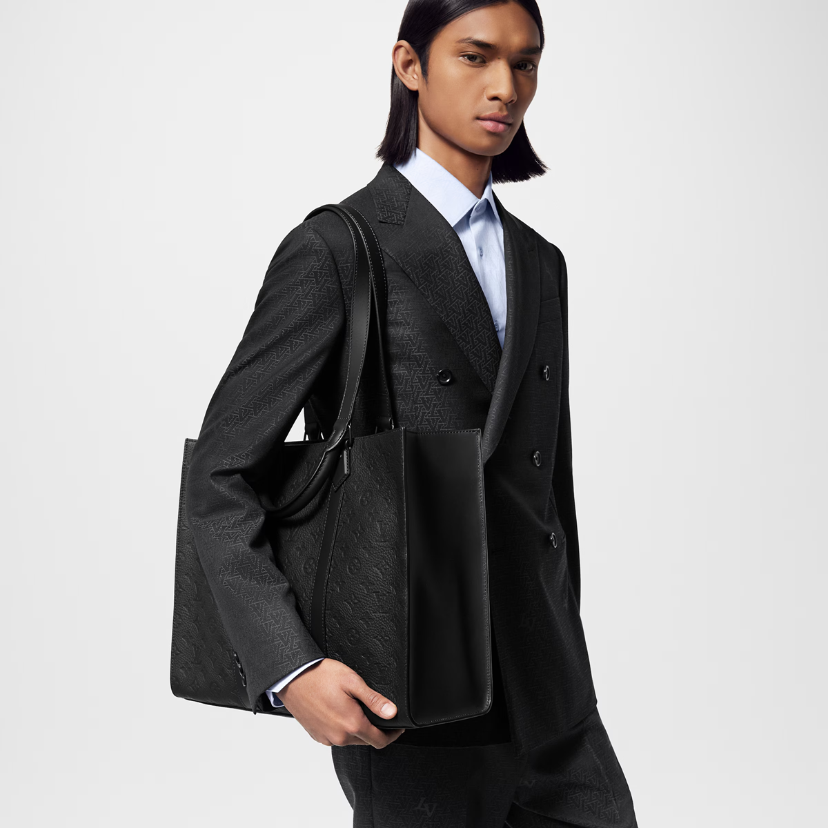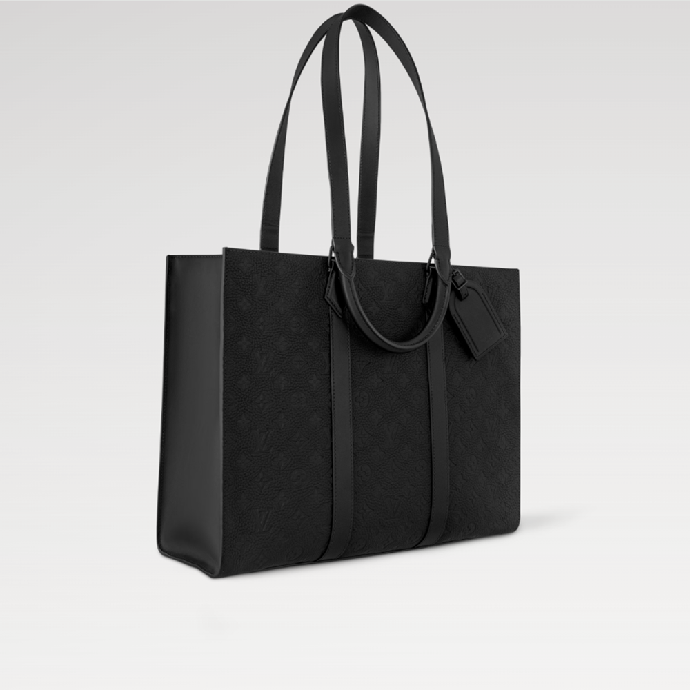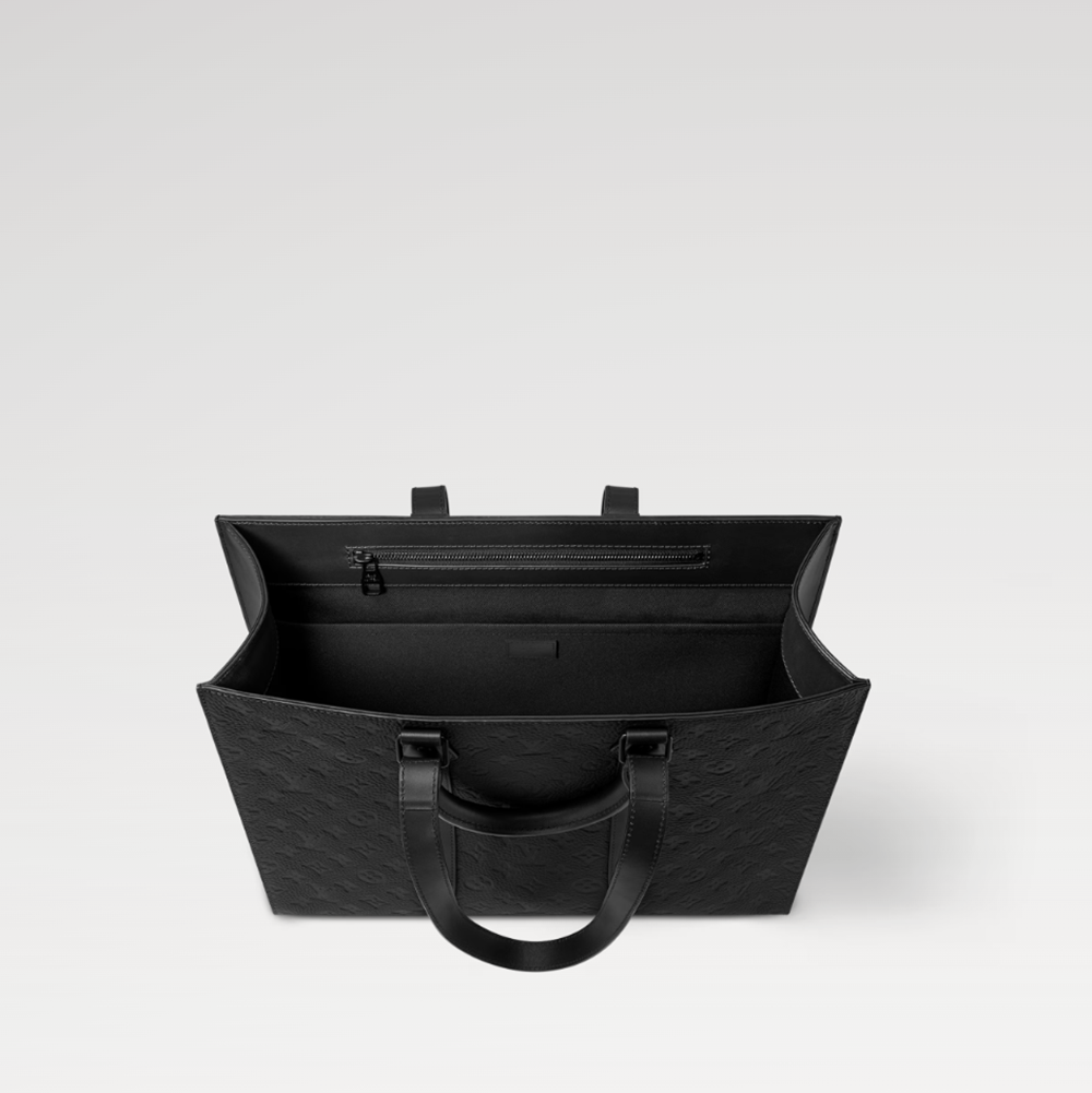 The Sac Plat 24H tote in Monogram-embossed Taurillon leather has a spacious interior with pockets and zipped pockets to keep your valuables safe. The short handles are for easy hand-carrying and the long handles are for shoulder-carrying.