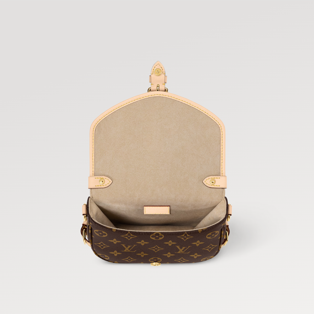 The Saumur BB bag is a contemporary take on a much-loved classic design made from Monogram canvas. The saddle bag silhouette and cowhide buckle clasp highlight the knight's style, the hidden magnetic buckle on the front allows for easy opening and closing, the compact configuration can accommodate daily necessities, and the detachable shoulder strap and handle provide a variety of carrying options.
