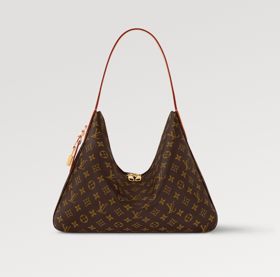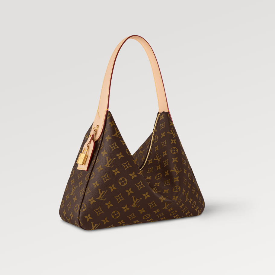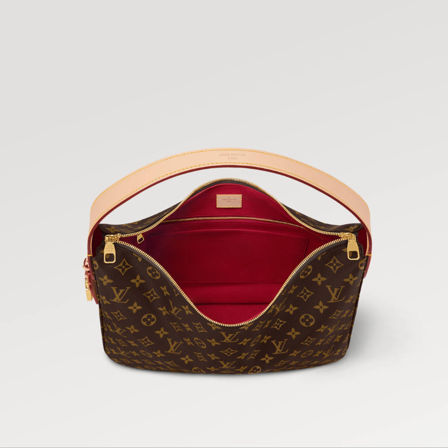This Slouchy Medium Bag is crafted from Monogram canvas, creating a distinctive silhouette enhanced by new metal hardware, including a padlock and nameplate, which highlight the refined details. The spacious interior easily accommodates a small wallet, smartphone, and a 13-inch laptop, making it an ideal choice for both commuting and weekend outings.