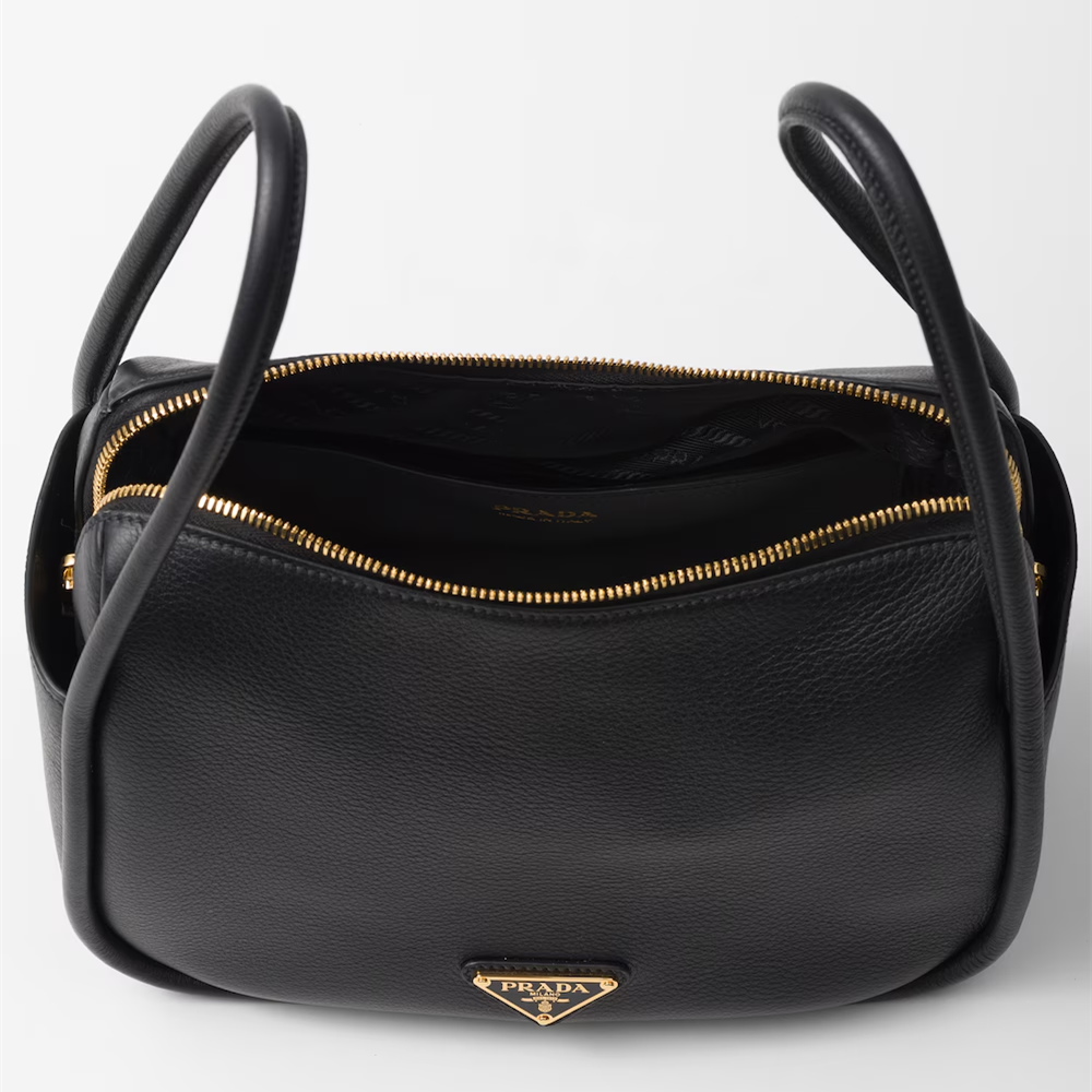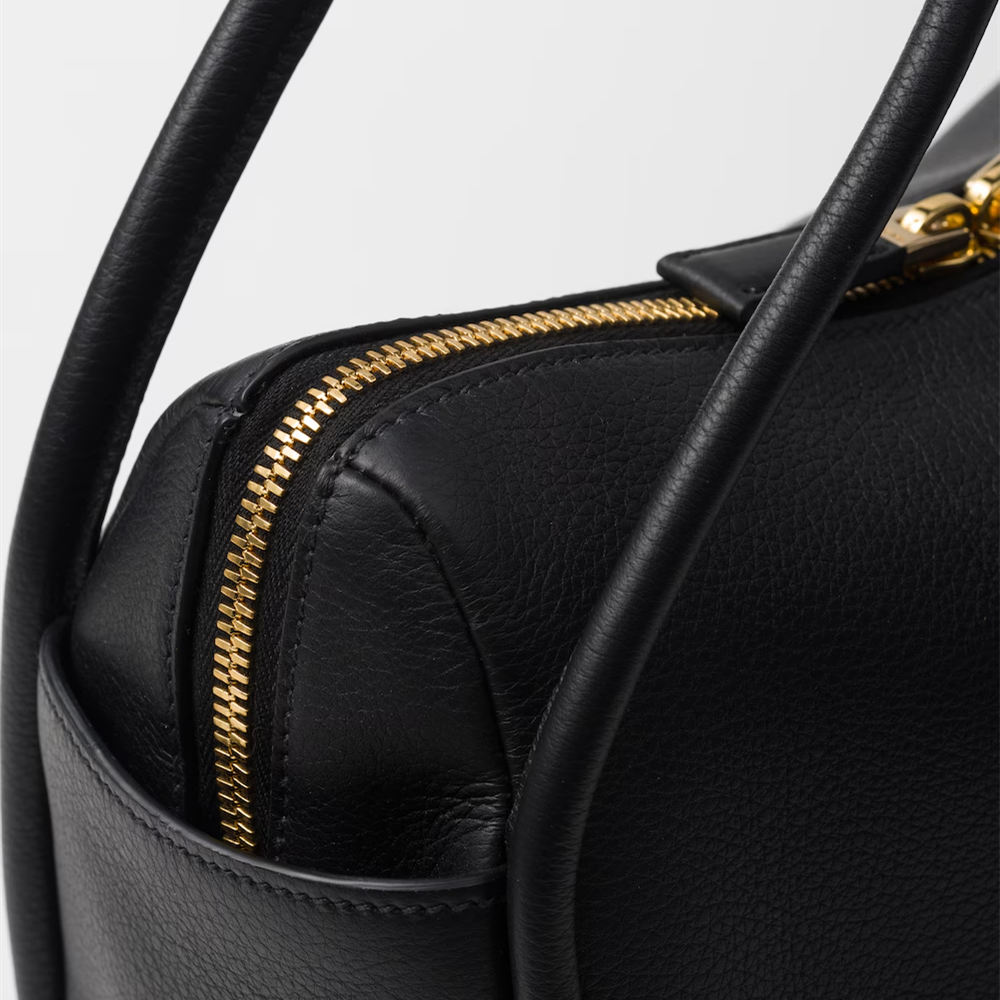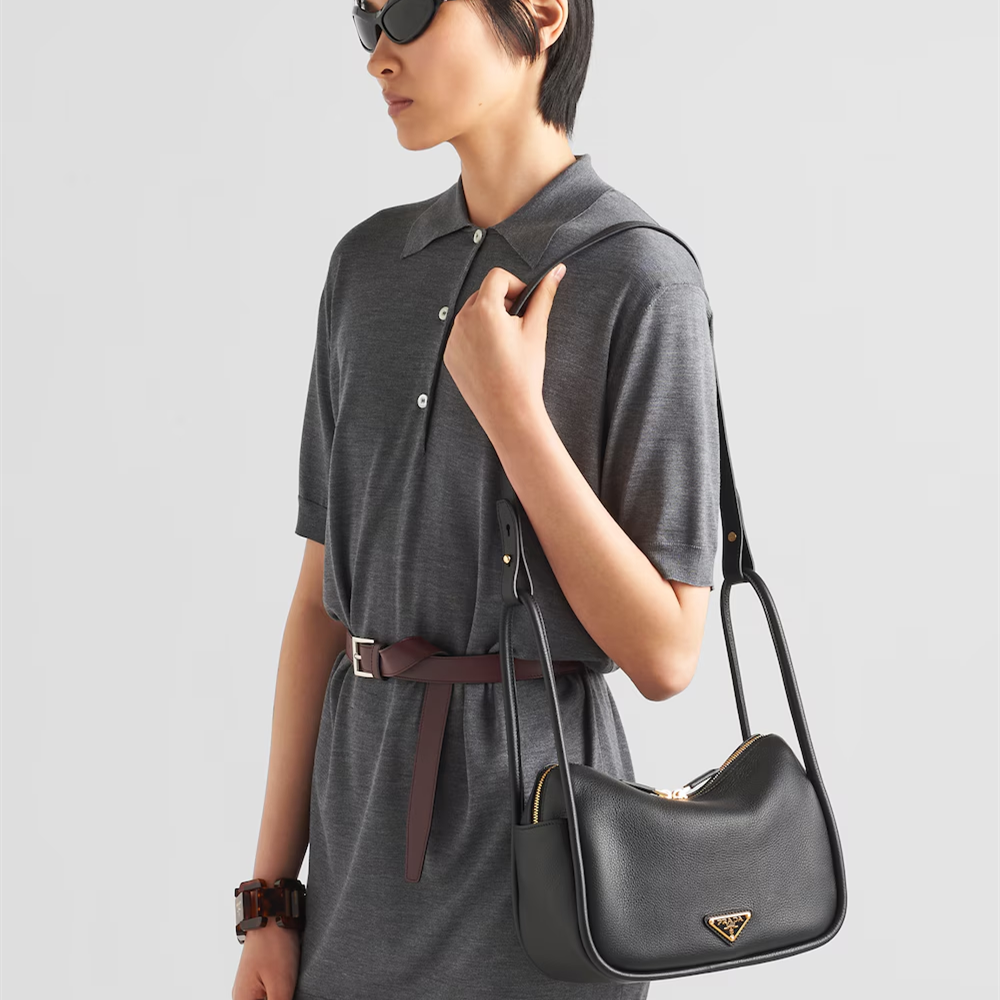 The modern design highlights a casual attitude, and the exquisite details and metal hardware accessories add agility. The style is exquisite and versatile, and the soft grained leather highlights the smooth and minimalist lines. This accessory shows extraordinary craftsmanship and is embellished with an enameled triangular metal logo.
