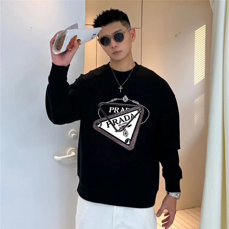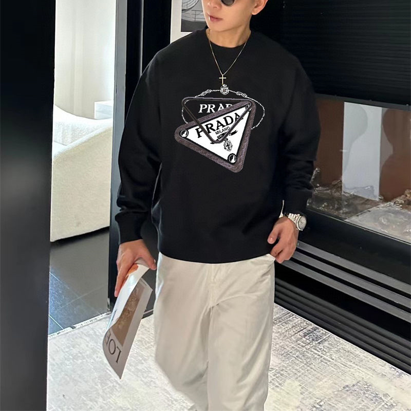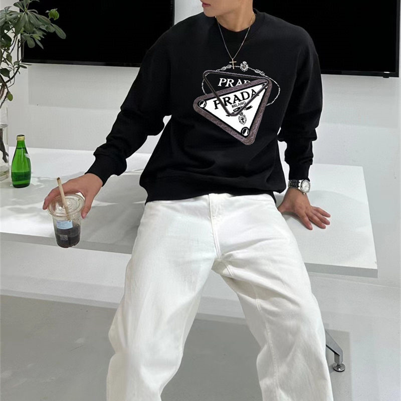 Prada Simple Graffiti Print Log Subtitle Print Round Neck Sweatshirt
