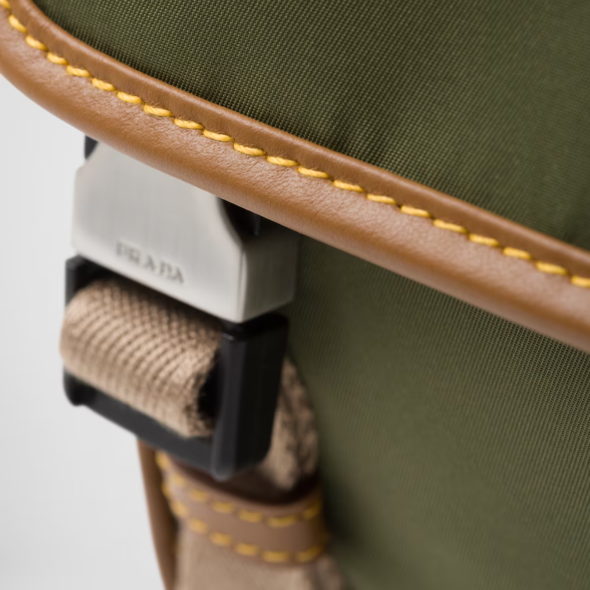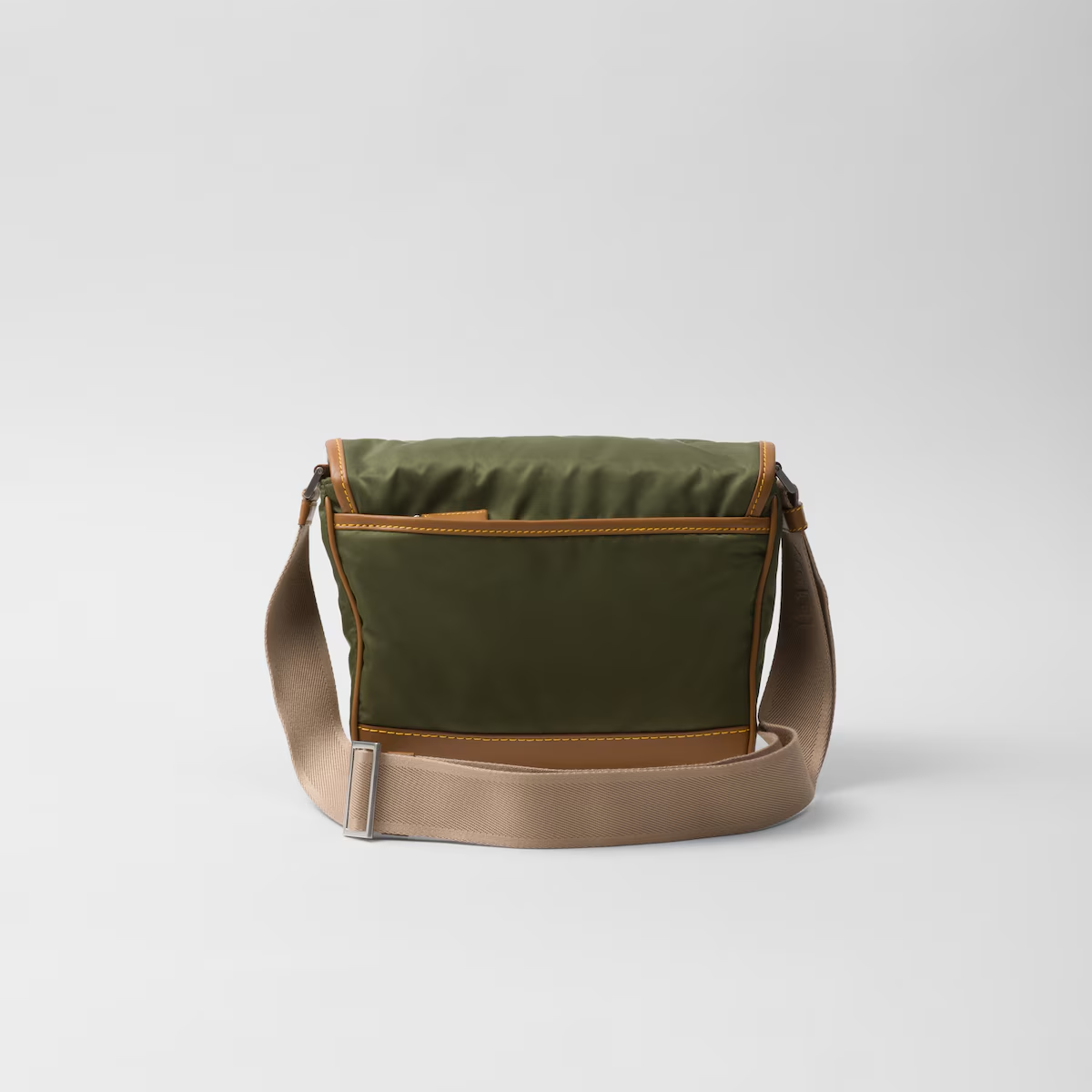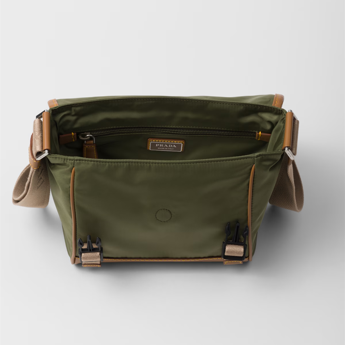 This leather shoulder bag features a utilitarian design and is made from the brand's signature innovative recycled nylon yarn for added versatility. The practical silhouette features multiple zip pockets, leather details and the classic enameled metal triangle logo.