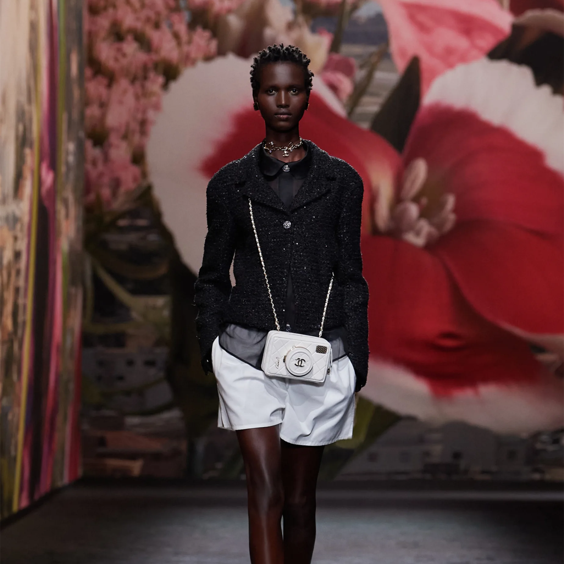The small perfume bag is transformed into a small camera. Virginie Viard pays tribute to Karl Lagerfeld's love of photography. It is because of his lens that the relationship between Villa Noailles, the source of inspiration for this season, and CHANEL has become so close. The classic film camera is transformed into a small bag of CHANEL, which will become the new favorite of countless women.