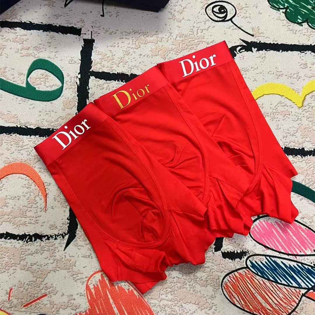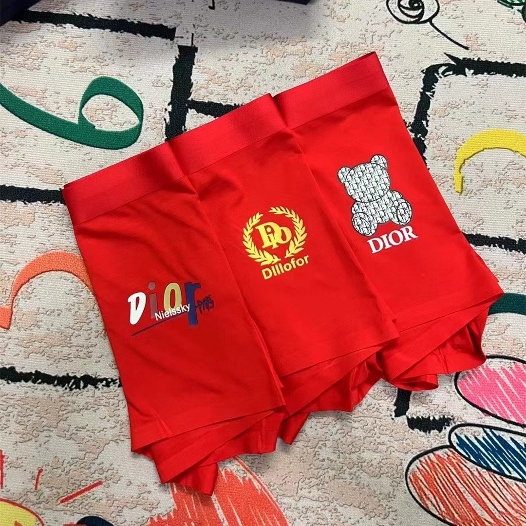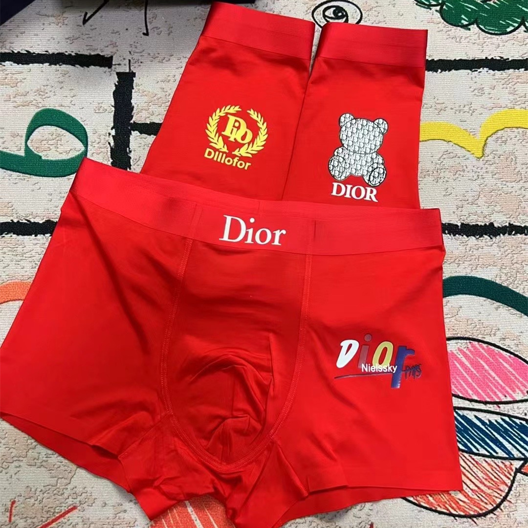 DIOR red boutique boxed men's underwear with fashionable printing style.
