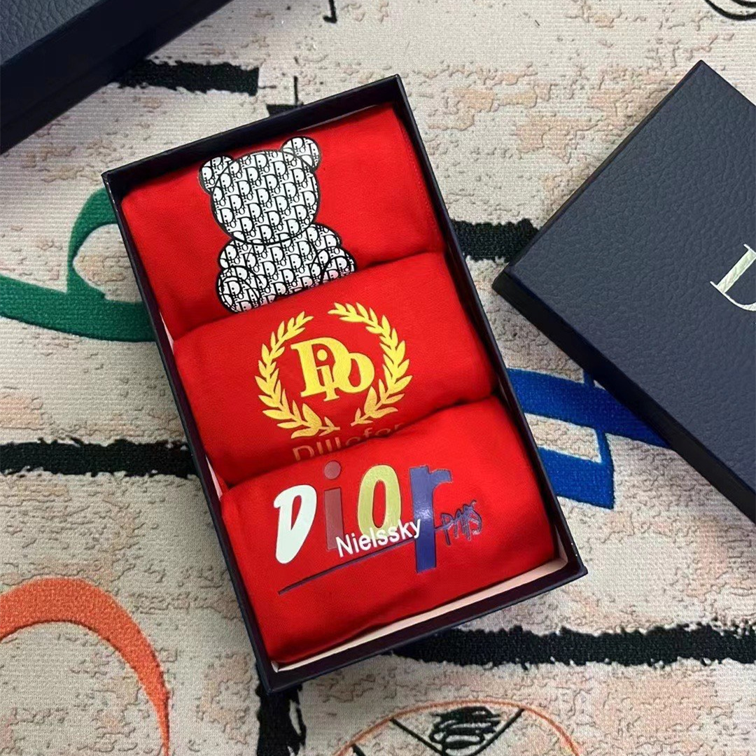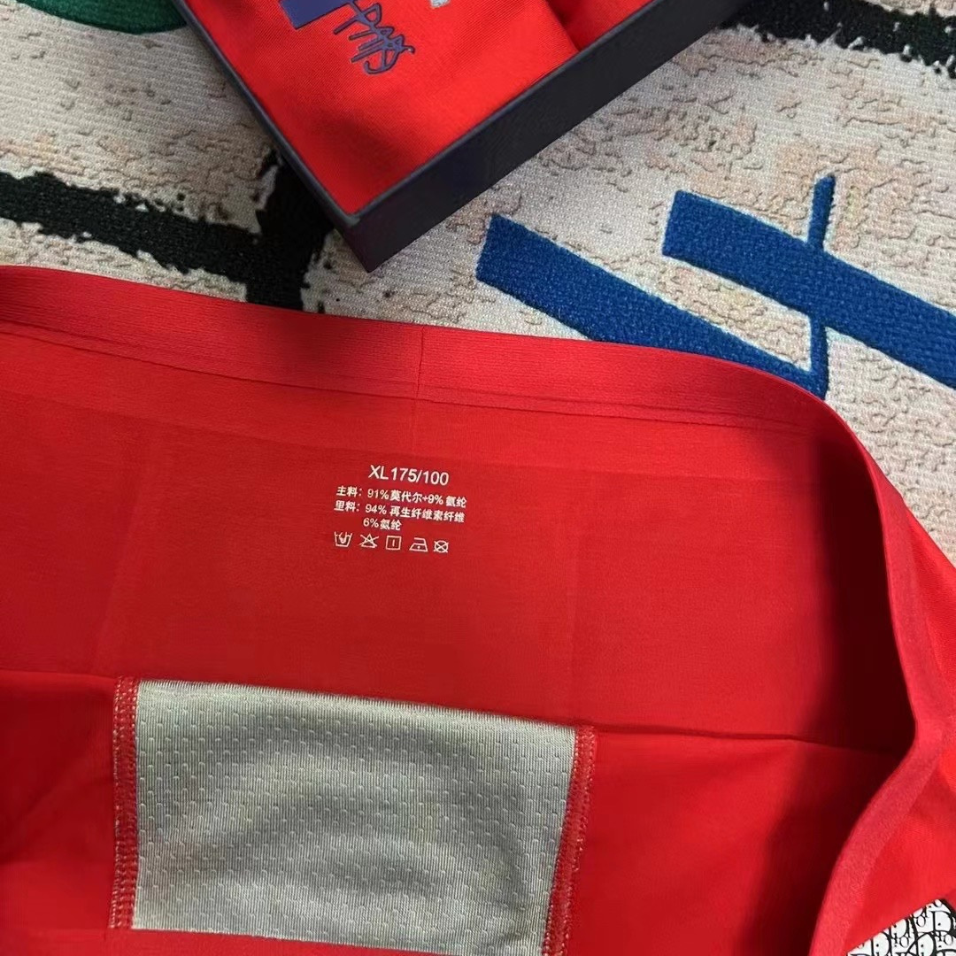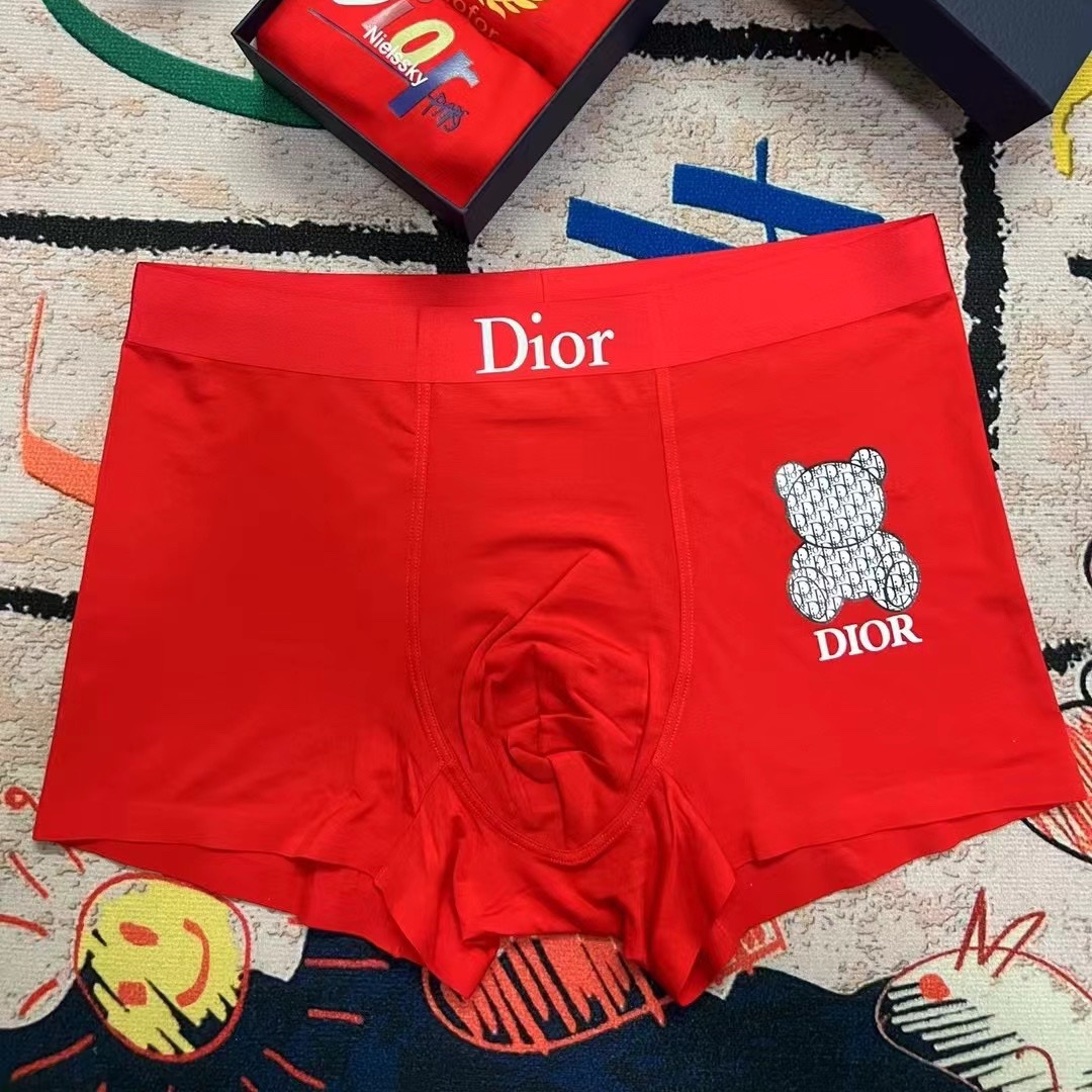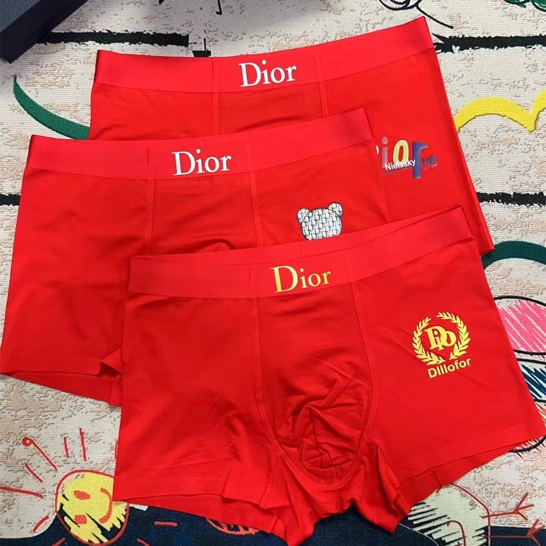 DIOR red boutique boxed men's underwear with fashionable printing style.