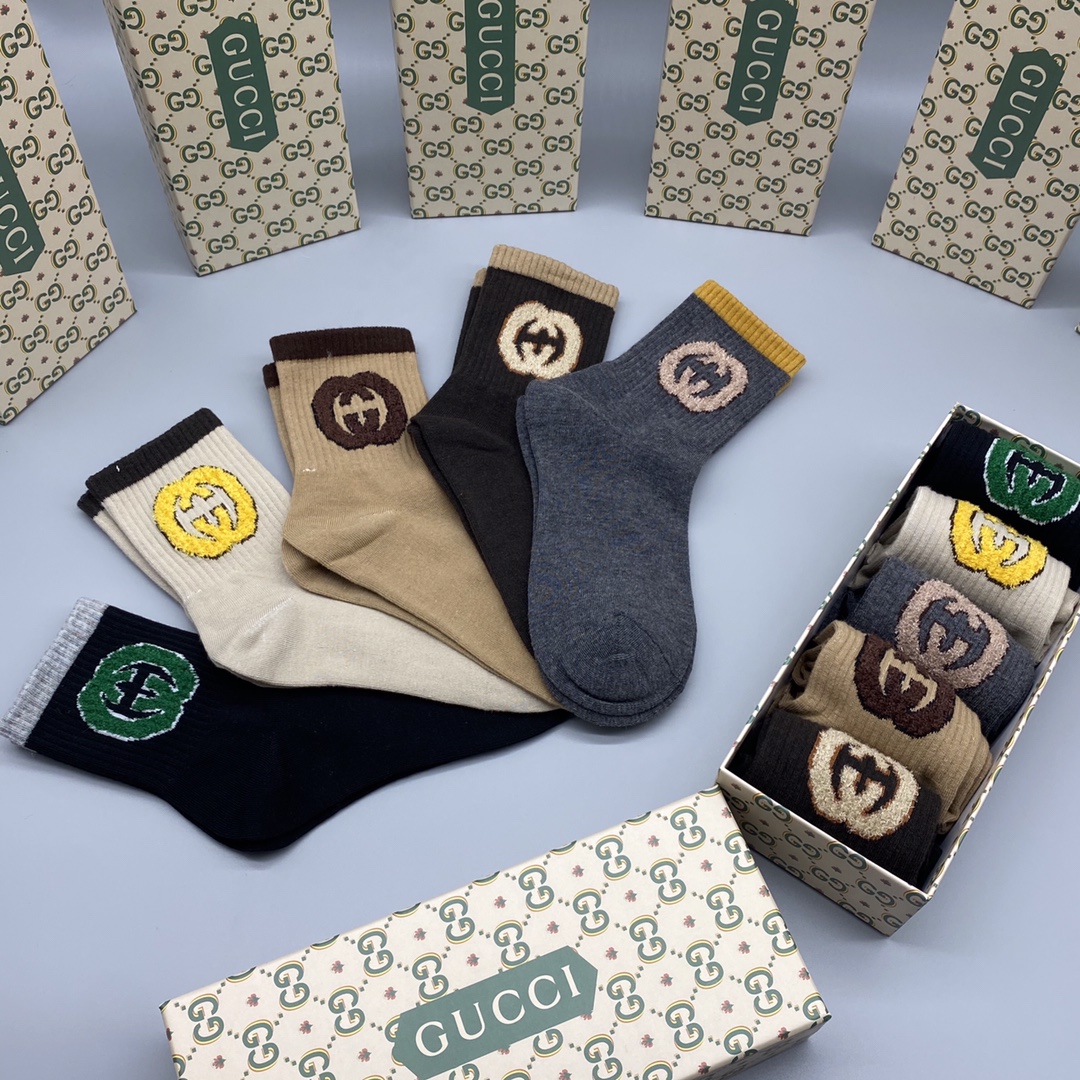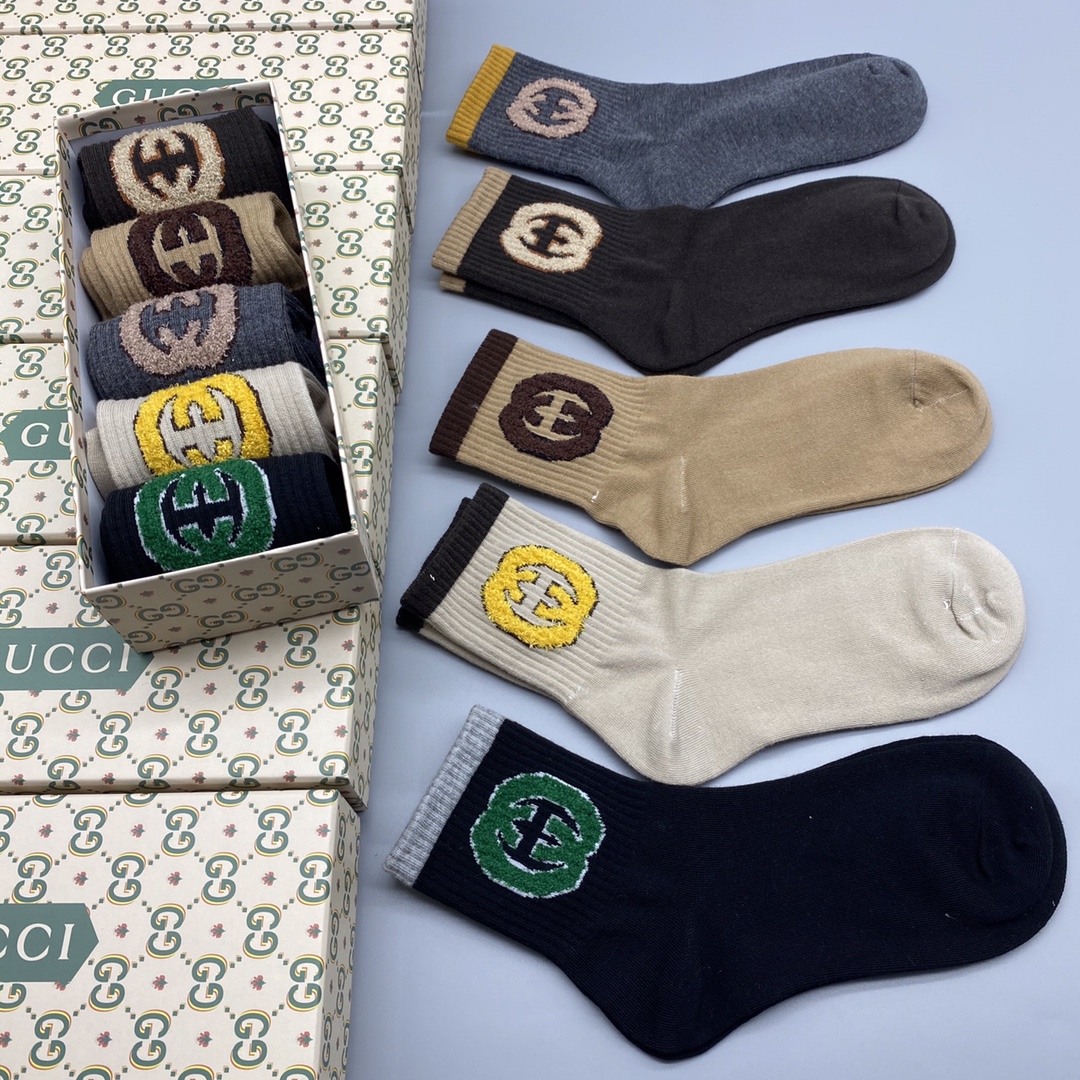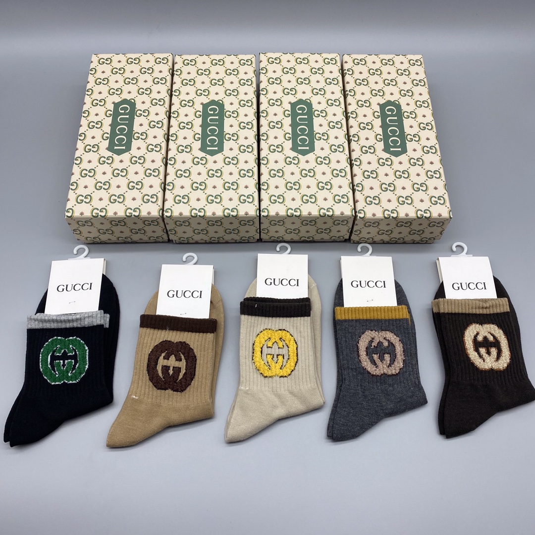 • Gucci Socks High-End Customized Pure Cotton Quality(5PC)
