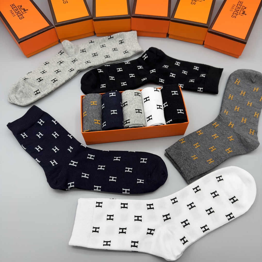 Heavyweight recommended ❗️HERMES - Hermes ❗️ counter limited to spring and autumn models socks, hot fashion circle ❗️ absolute hand slow no trend single product ❗ Self-retained self-retained self-retained models ❗️️ Japan's imported yarn weaving close to the soft feel, with the classic big H embroidery logo, super beautiful, especially to attract attention to the eyeballs ❗️ [one card, one pair of the original five pairs of gift box set] ❗️