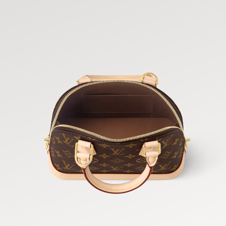 The Alma BB handbag traces its pedigree to an Art Deco original, introduced in 1934. Signature details impart a timeless elegance to this model crafted from iconic Monogram canvas: note the golden padlock and keys, two Toron handles and smart leather key bell. Fitted with a detachable and adjustable strap, this charming small bag is perfect for cross-body wear.