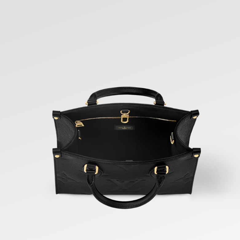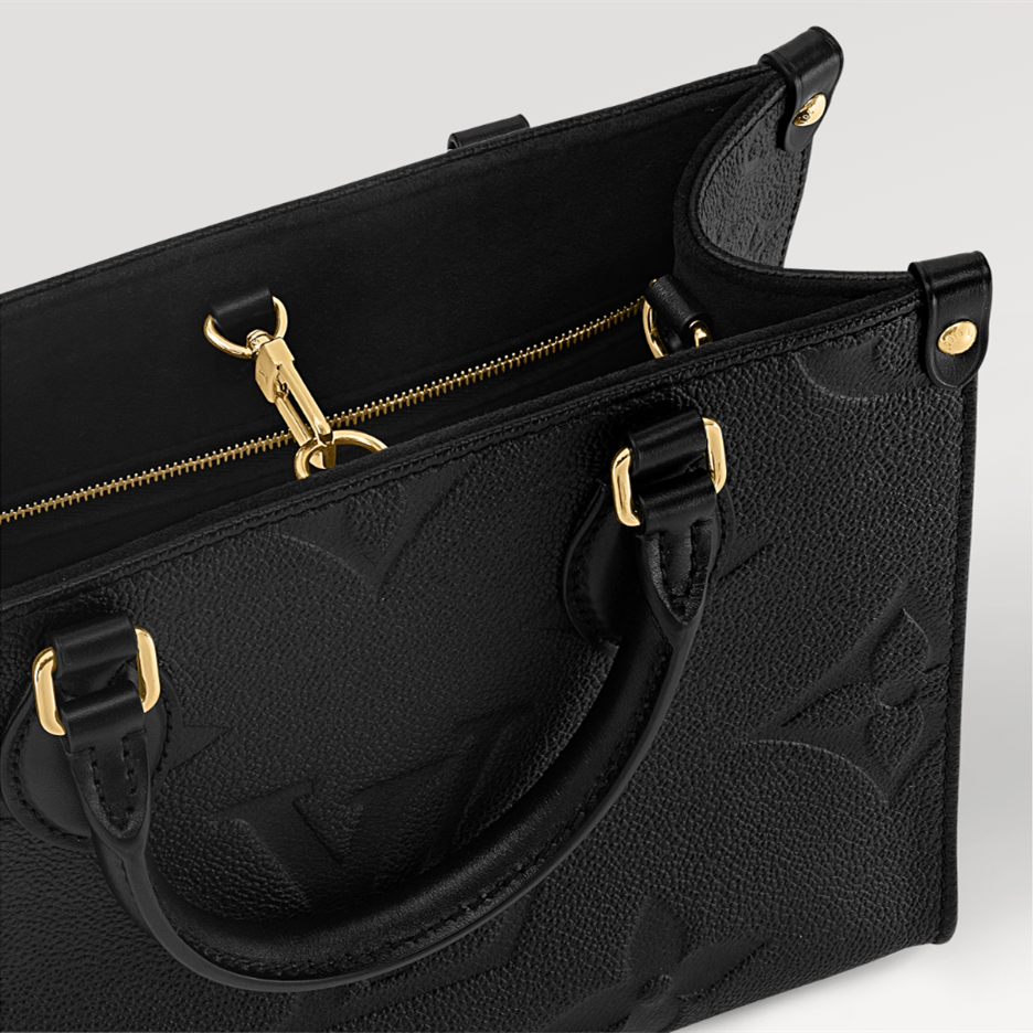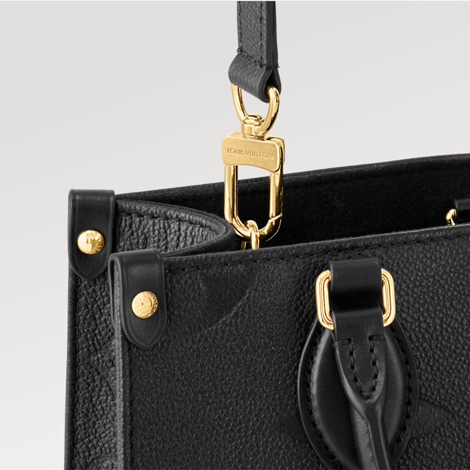 Inspired by Louis Vuitton’s famous Sac Plat from 1968, the Onthego PM tote is fashioned in Monogram Empreinte leather, embossed with a subtle embossed Giant Monogram pattern. This smaller version of the original Onthego fits essentials such as an iPad Mini. Articulated top handles and an adjustable removable strap offer a variety of carry options.