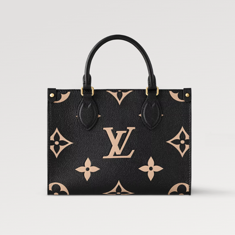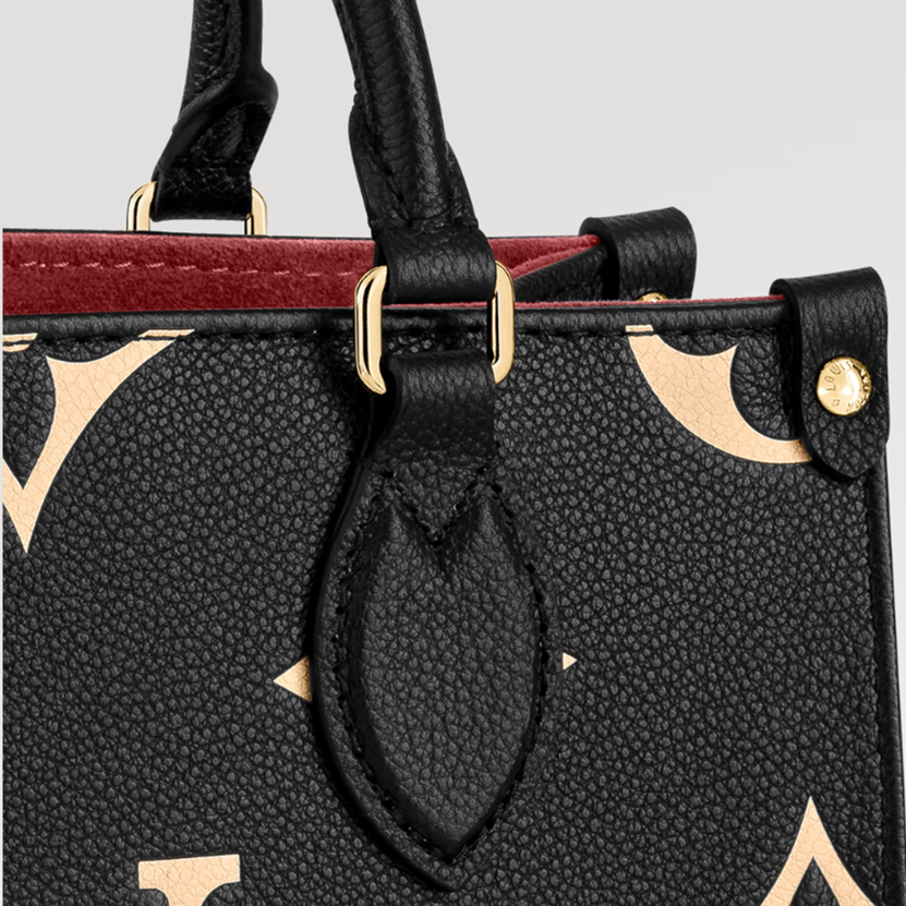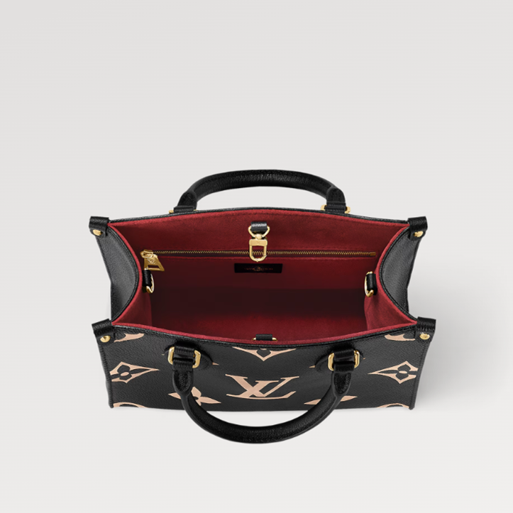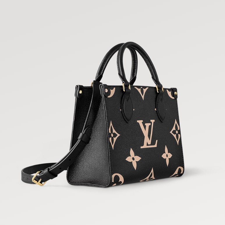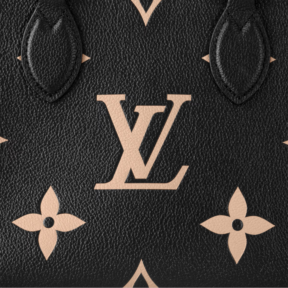 Inspired by Louis Vuitton’s famous Sac Plat from 1968, the OnTheGo PM tote is fashioned in Monogram Empreinte leather, embossed with a Medium Bicolor Monogram pattern. This smaller version of the original OnTheGo fits essentials such as an iPad Mini. Articulated top handles and an adjustable removable strap offer a variety of carry options.