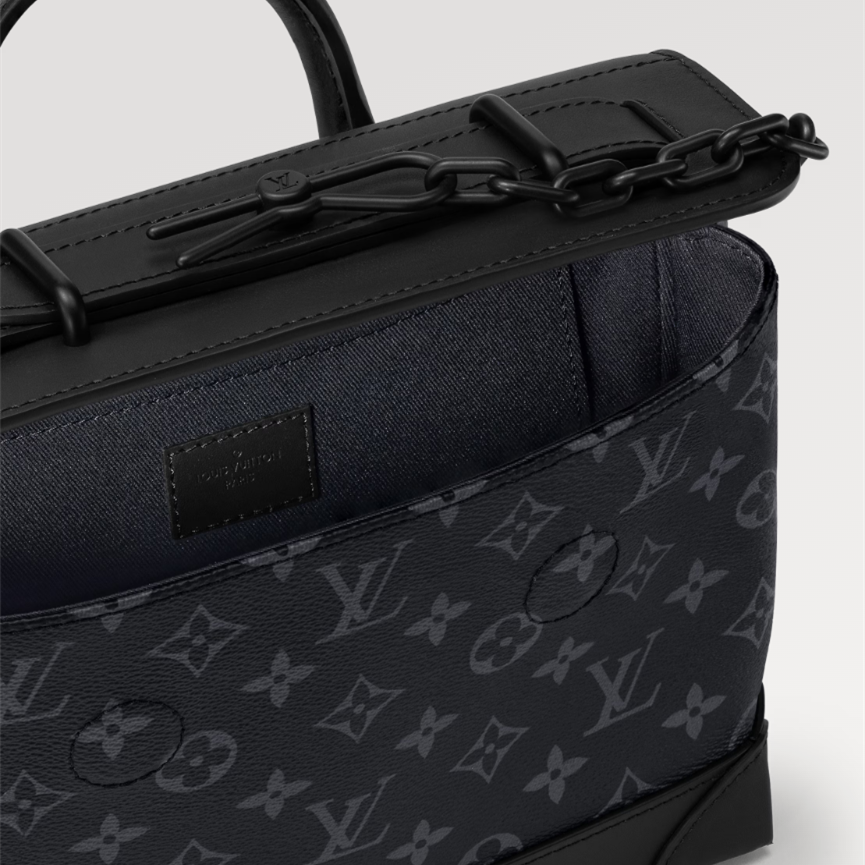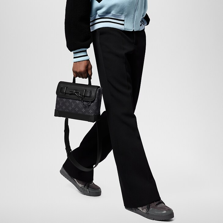 The new Steamer NM offers a distinctive combination of contemporary styling and heritage touches. Crafted in the House’s iconic Monogram Eclipse canvas, it features a host of details inspired by Louis Vuitton’s historic Steamer luggage, from the trunk-style corners to the signature chain and pin buckle. This practical, body-friendly bag makes an ideal addition to an on-trend look.