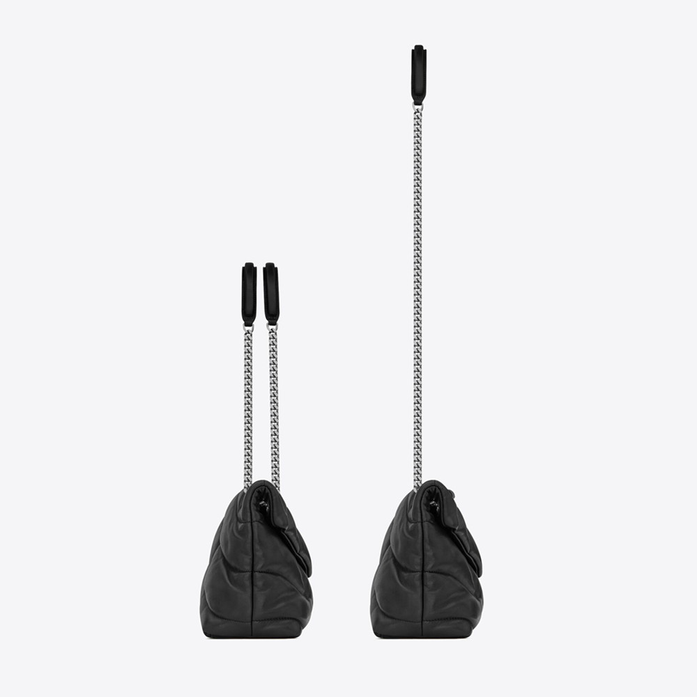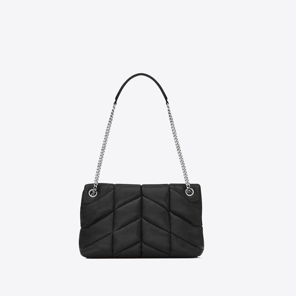 Carry it on the shoulder or crossbody with a sliding chain strap.