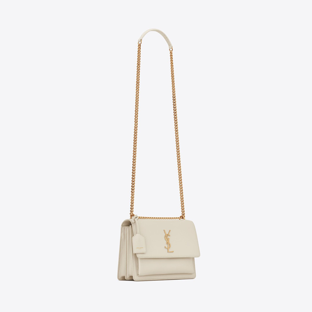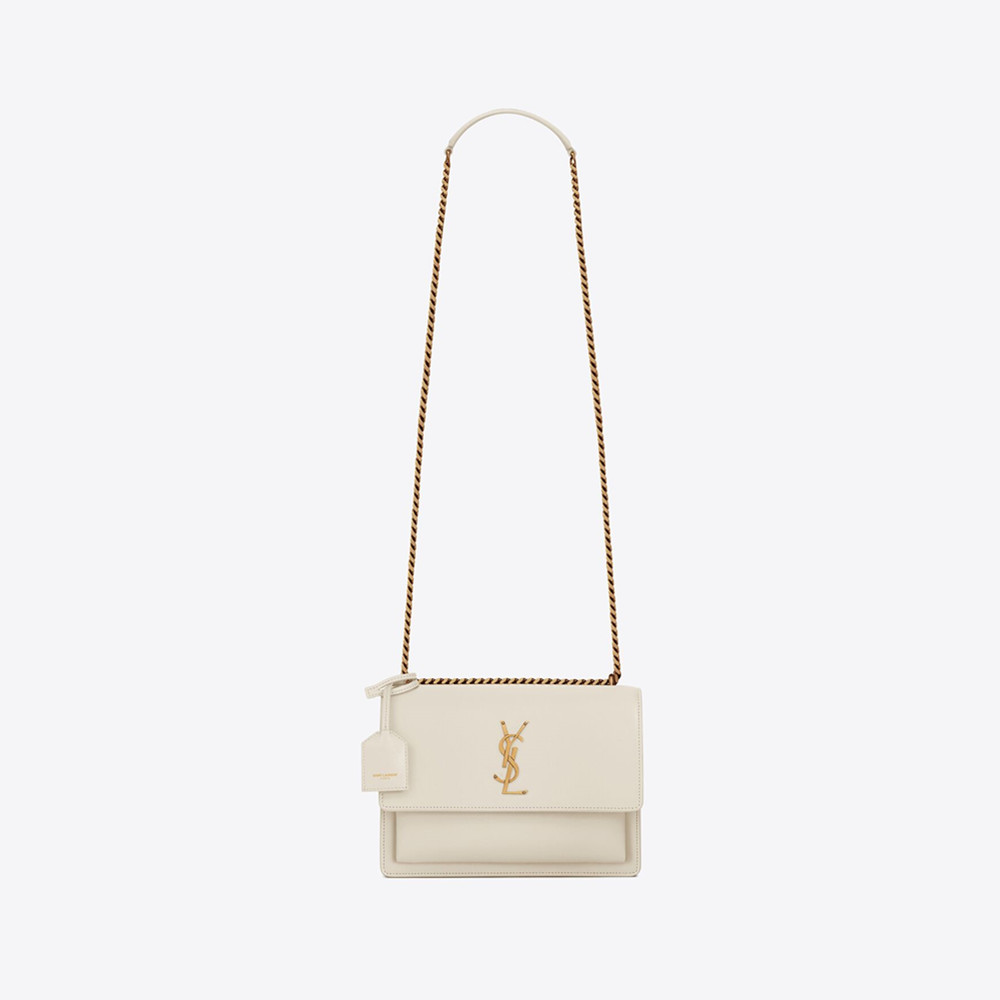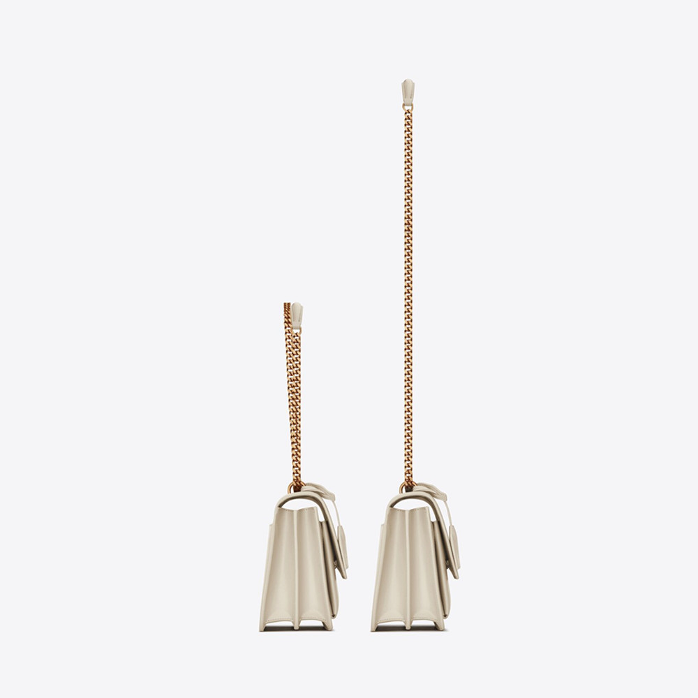 Carried on the shoulder or across the body with a sliding chain strap.