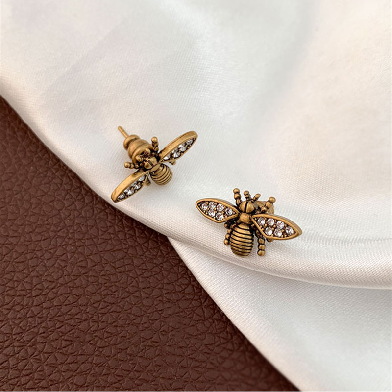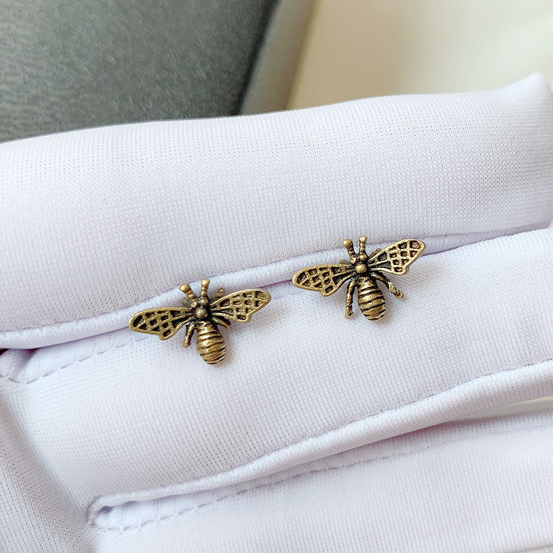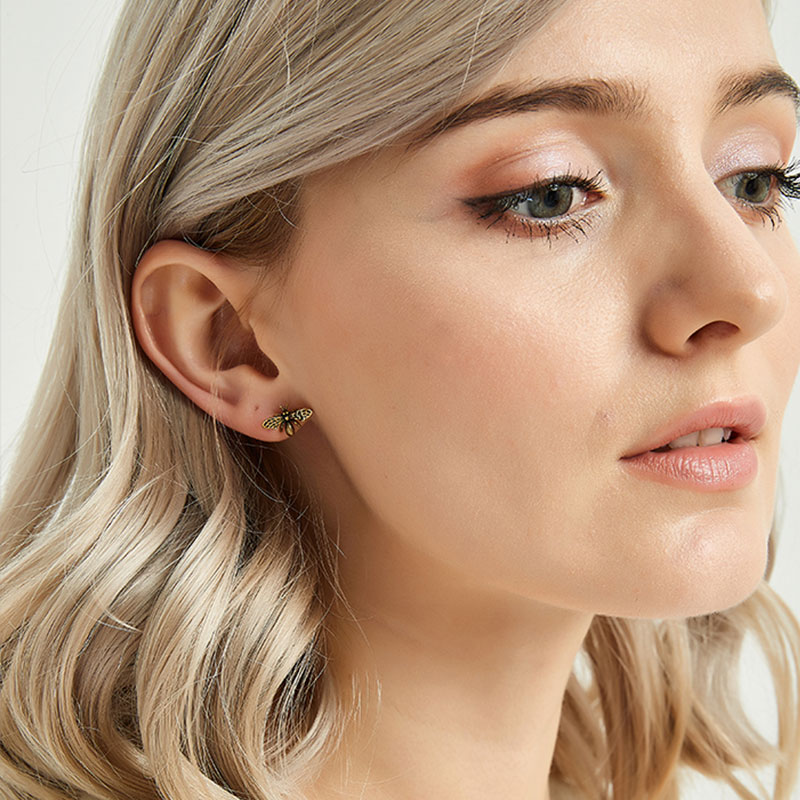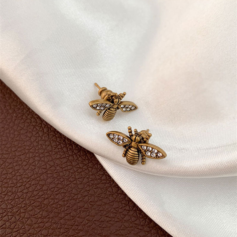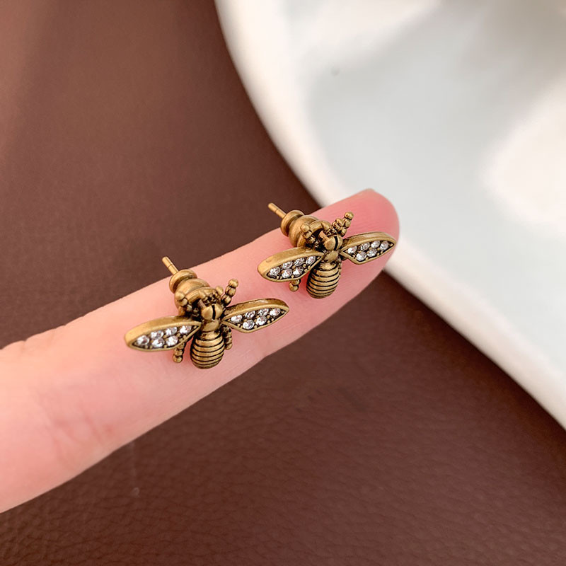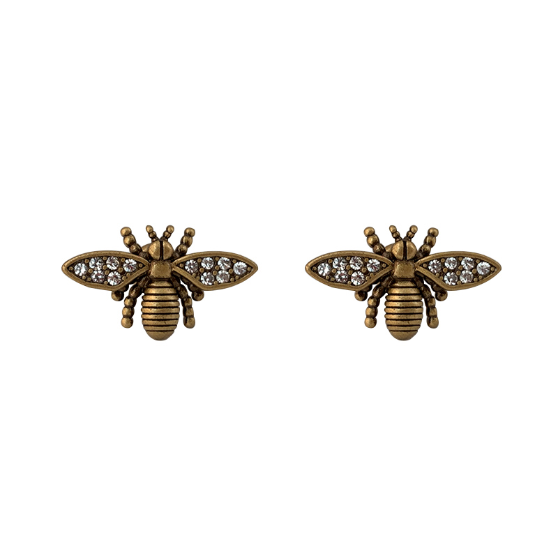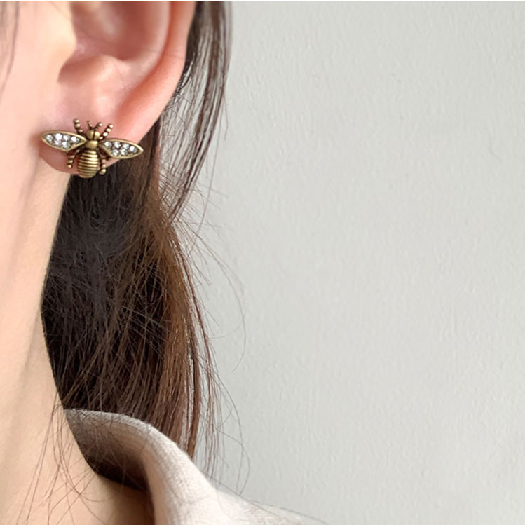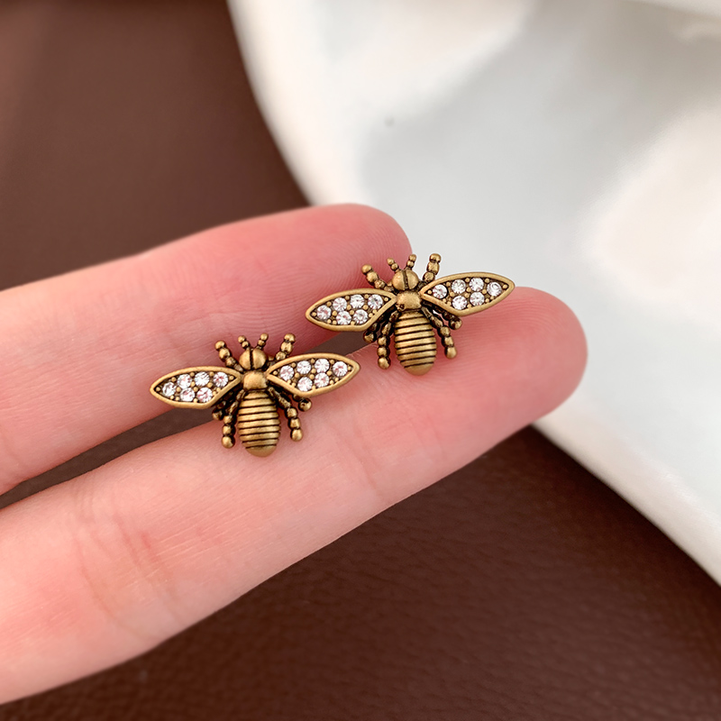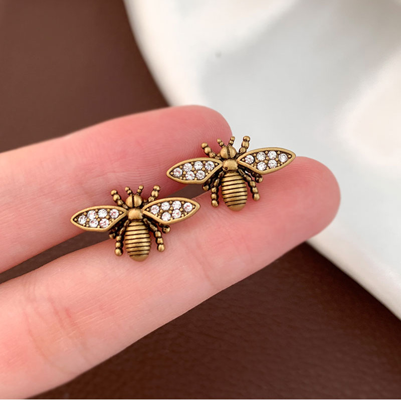 Color classification: diamond-encrusted little bee earrings, non-diamond bee earrings